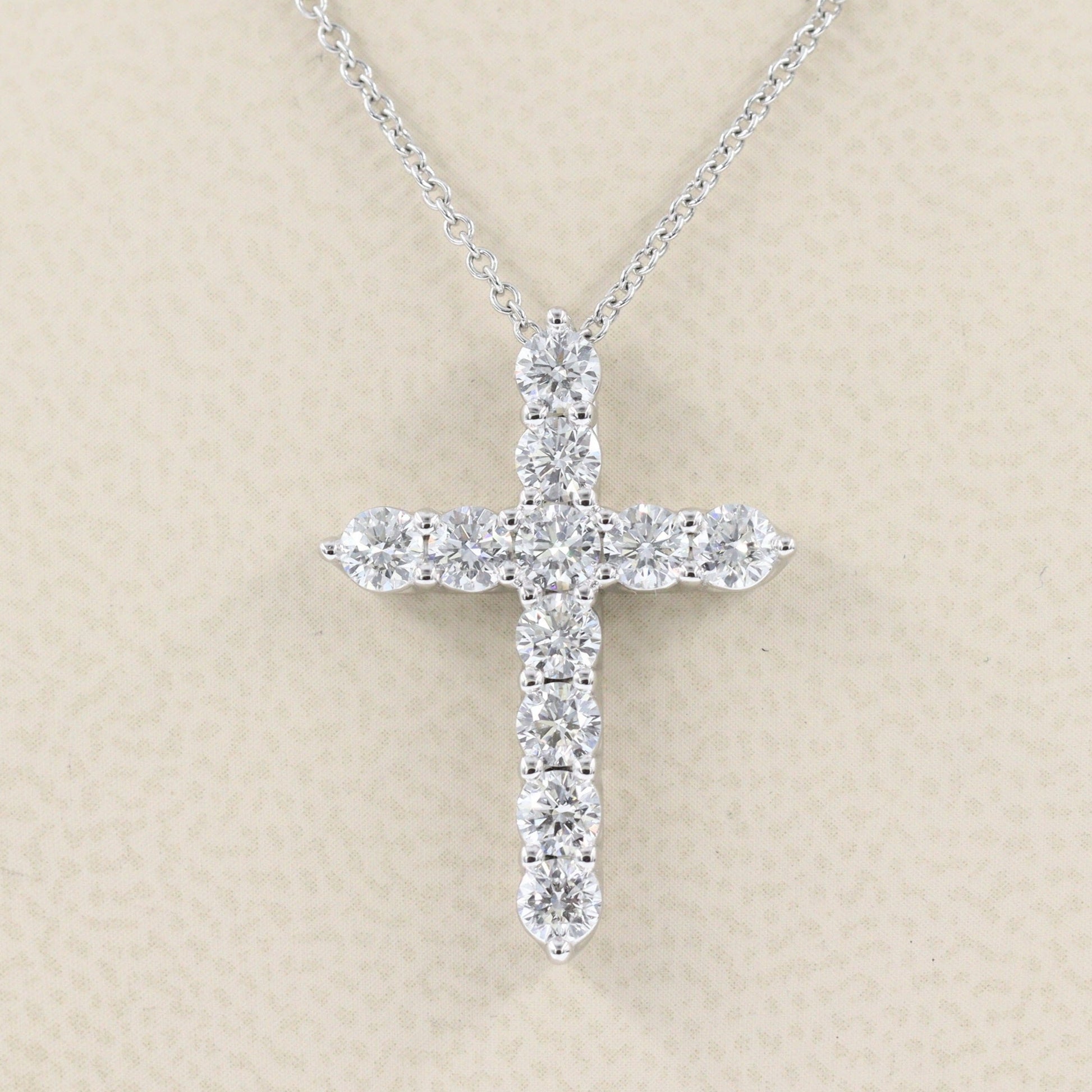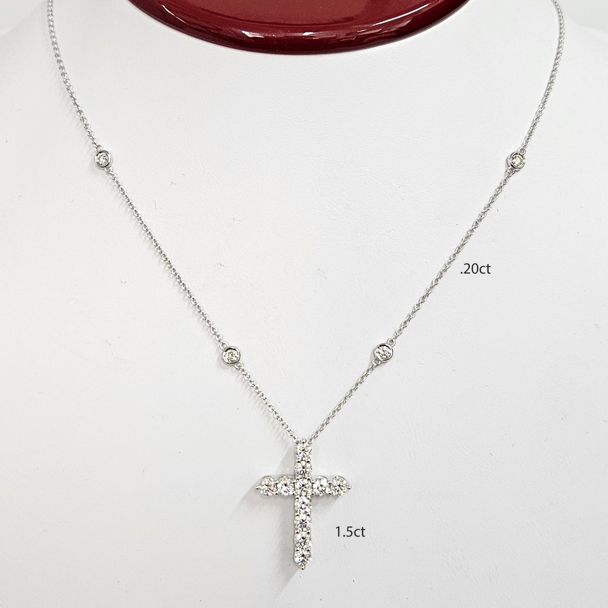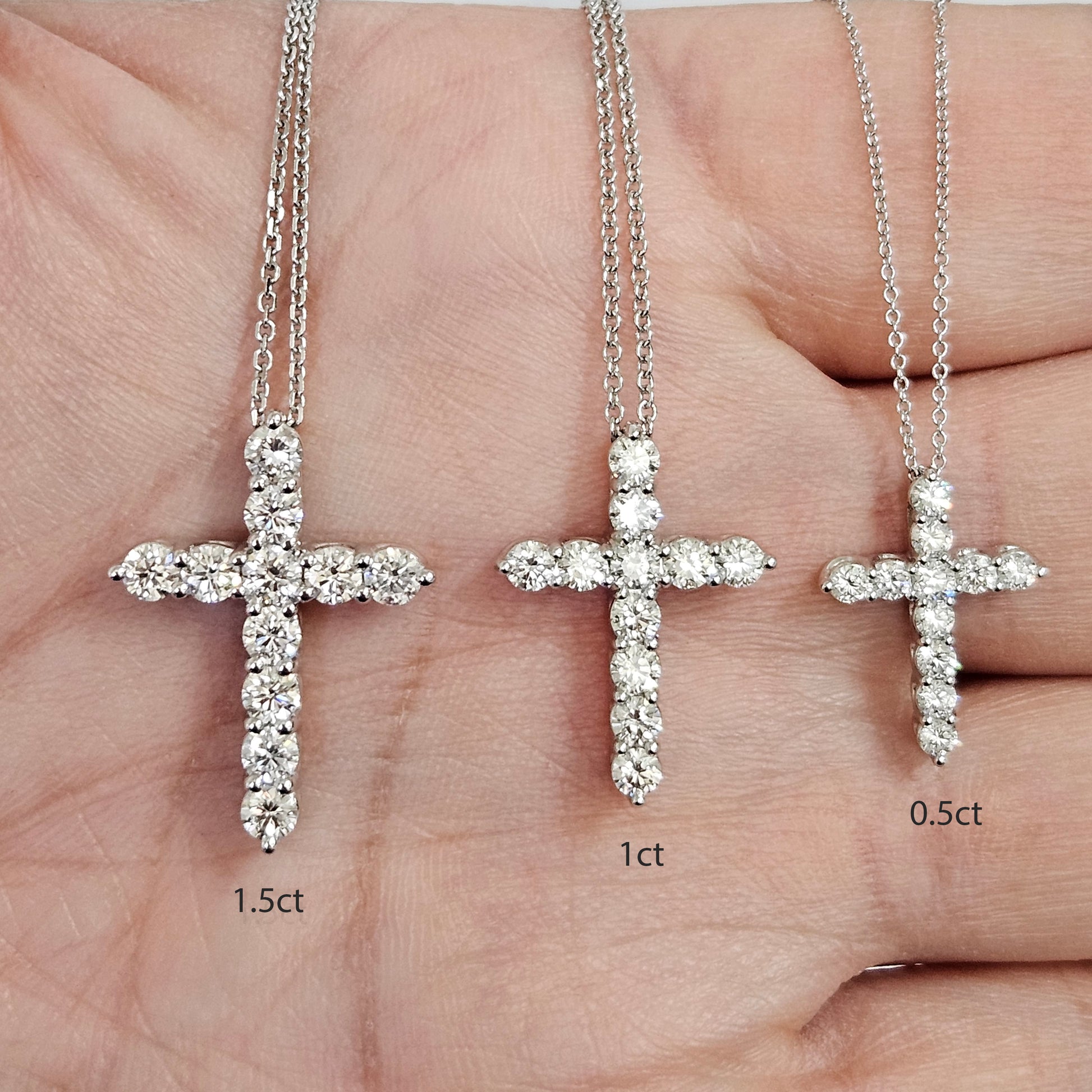 1.5ct Round Natural Diamond Cross Necklace: 14K,18K Gold Diamond Cross Pendant - Anniversary Gift