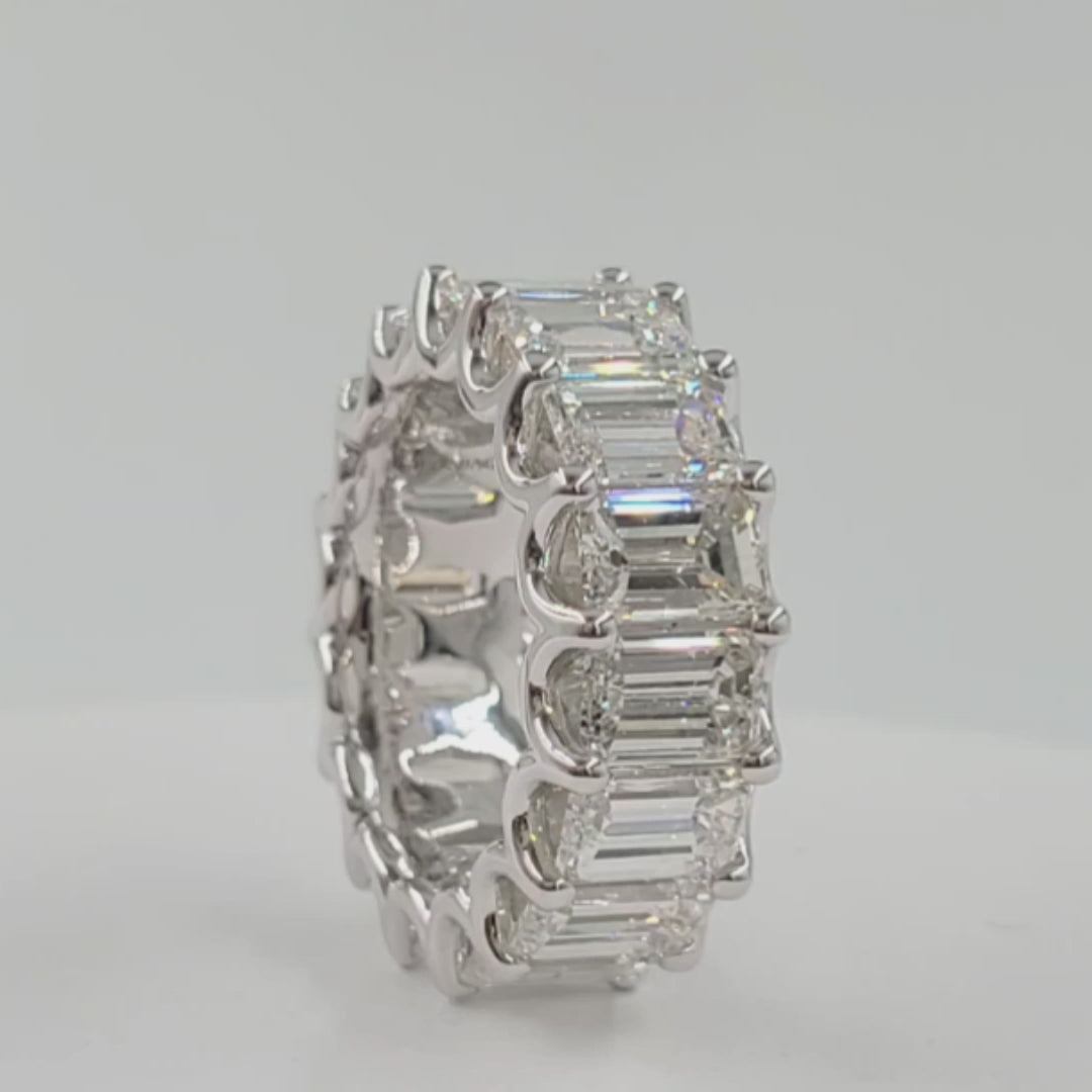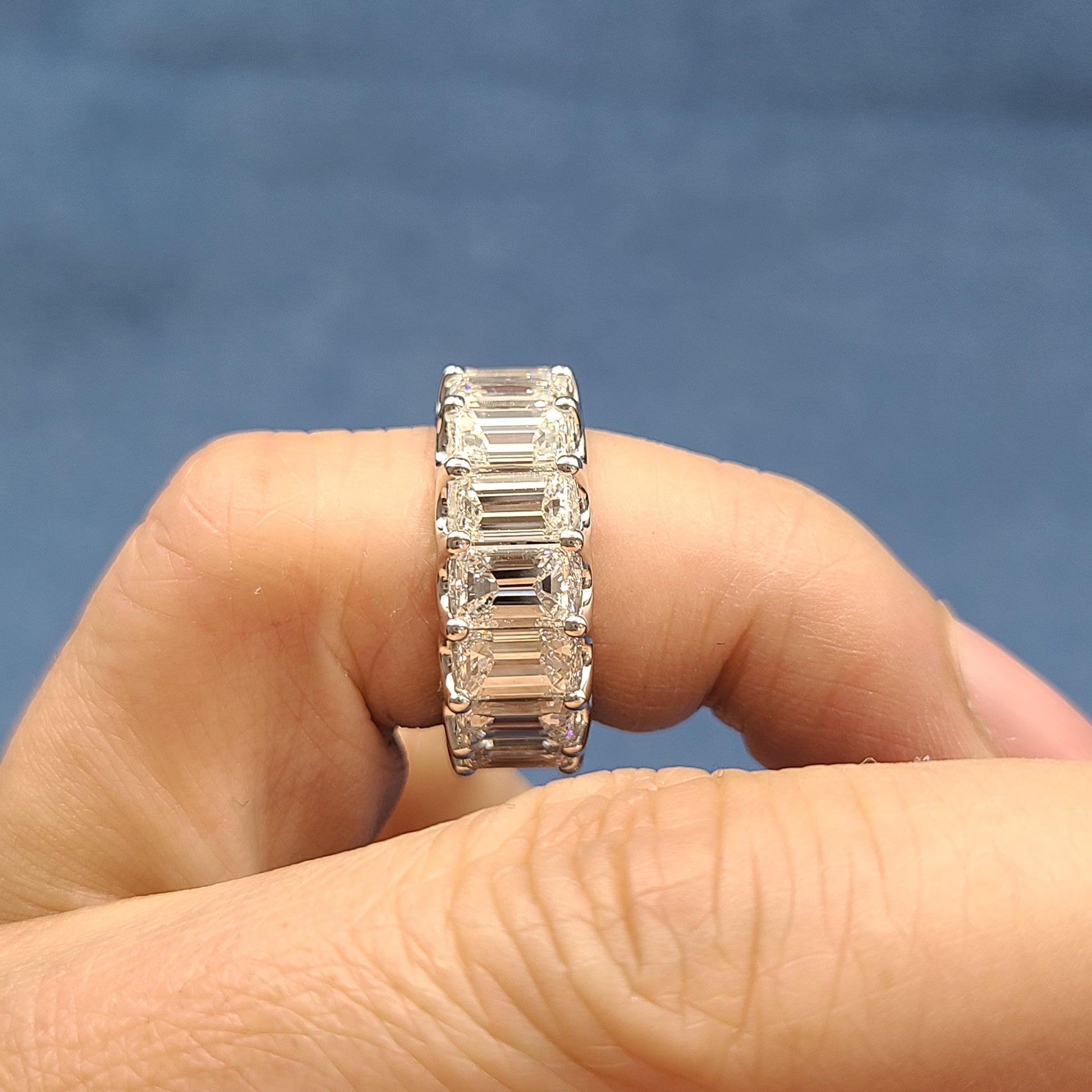 11.8ct Emerald Cut Diamond Wedding Ring / 18K gold Emerald Cut Natural Diamond Full Eternity Width 9mm Ring / Anniversary gift