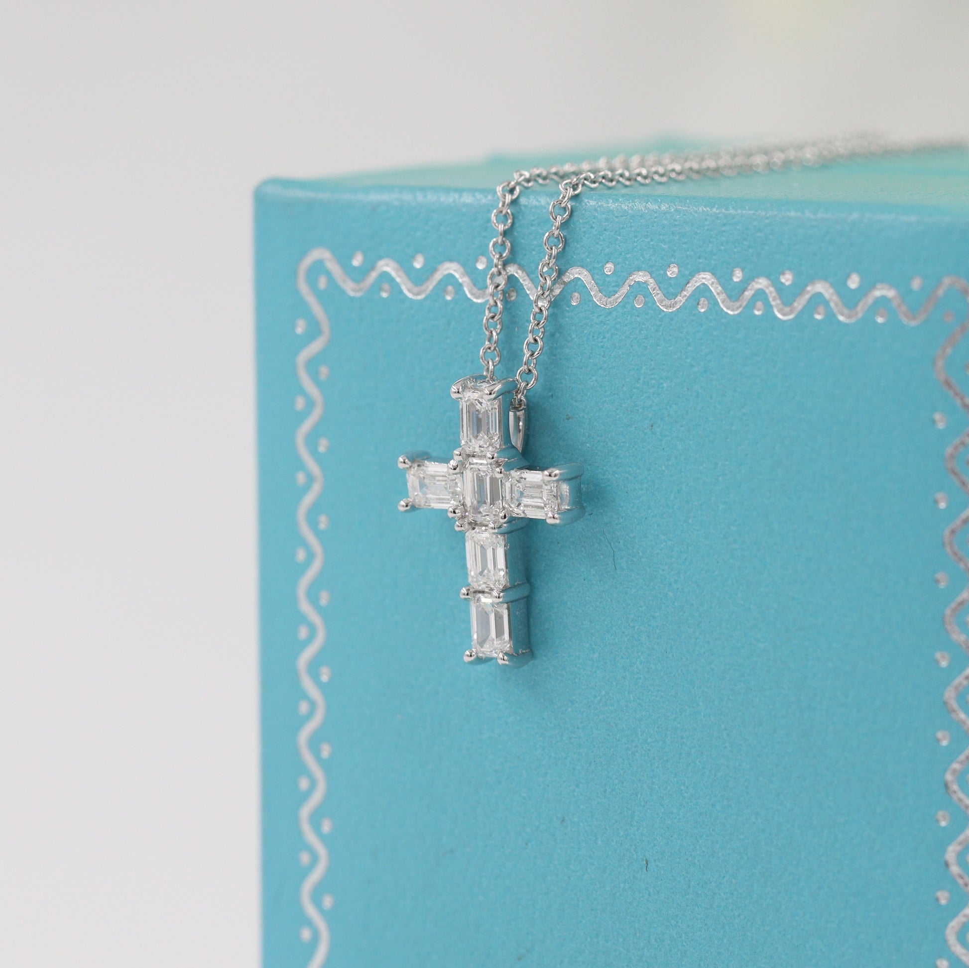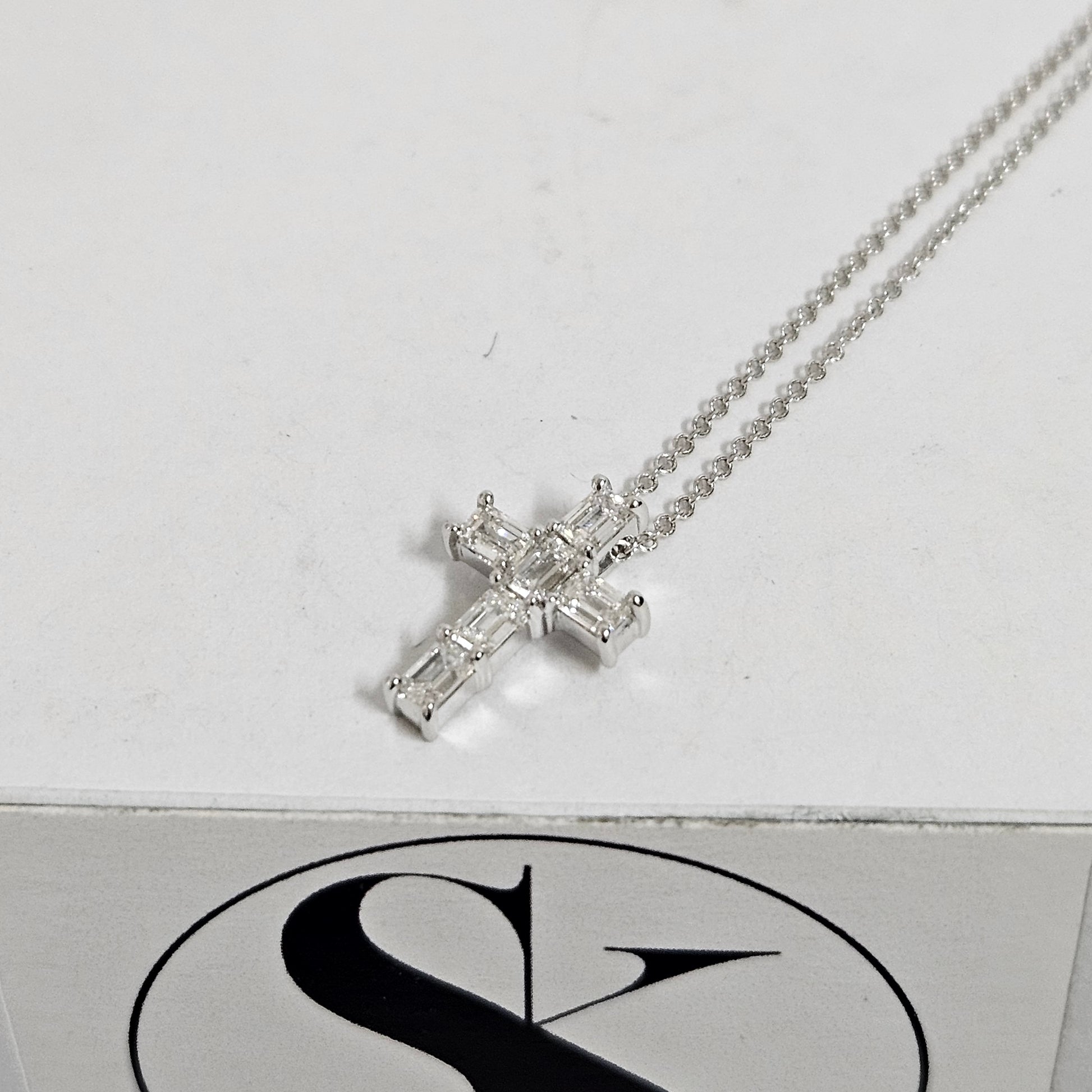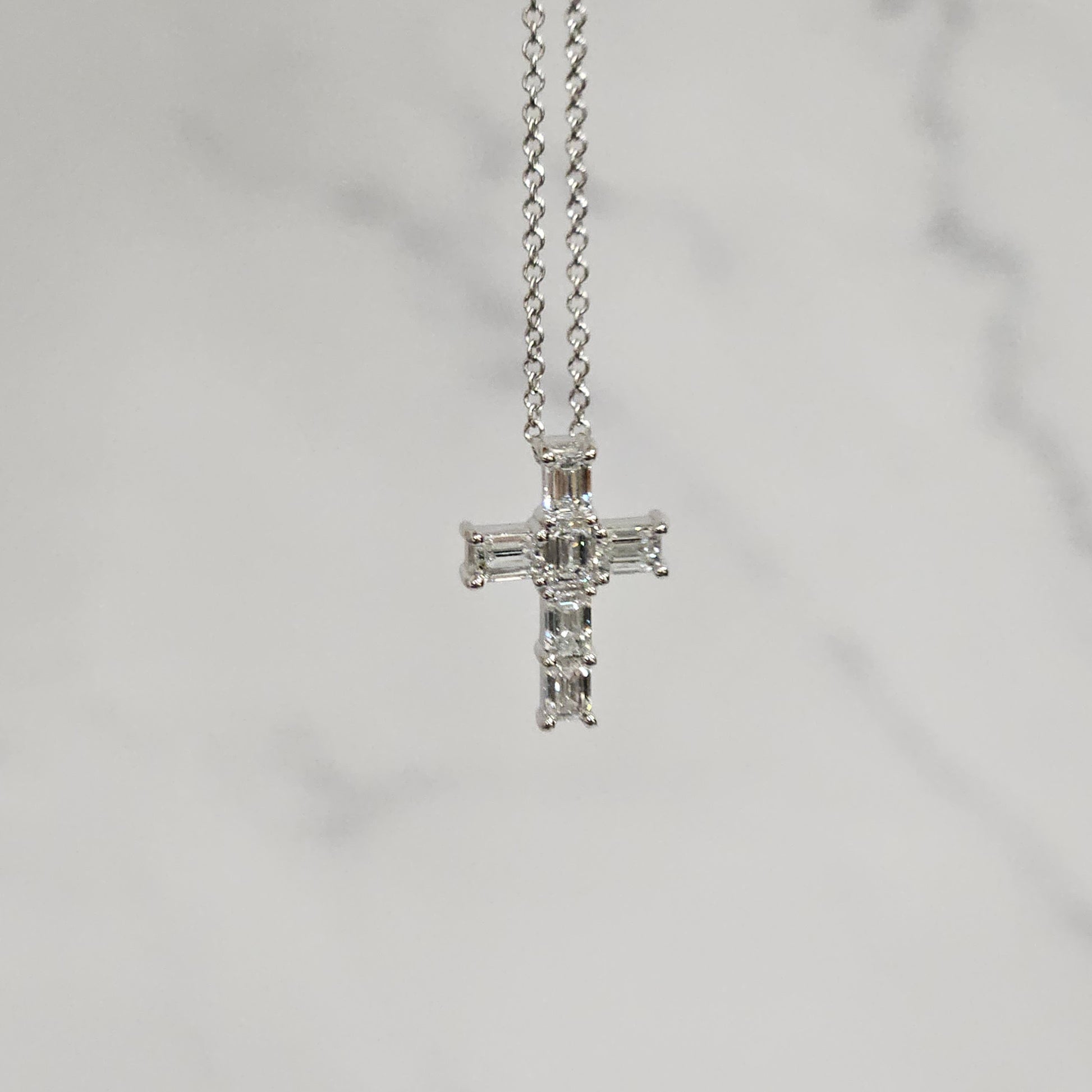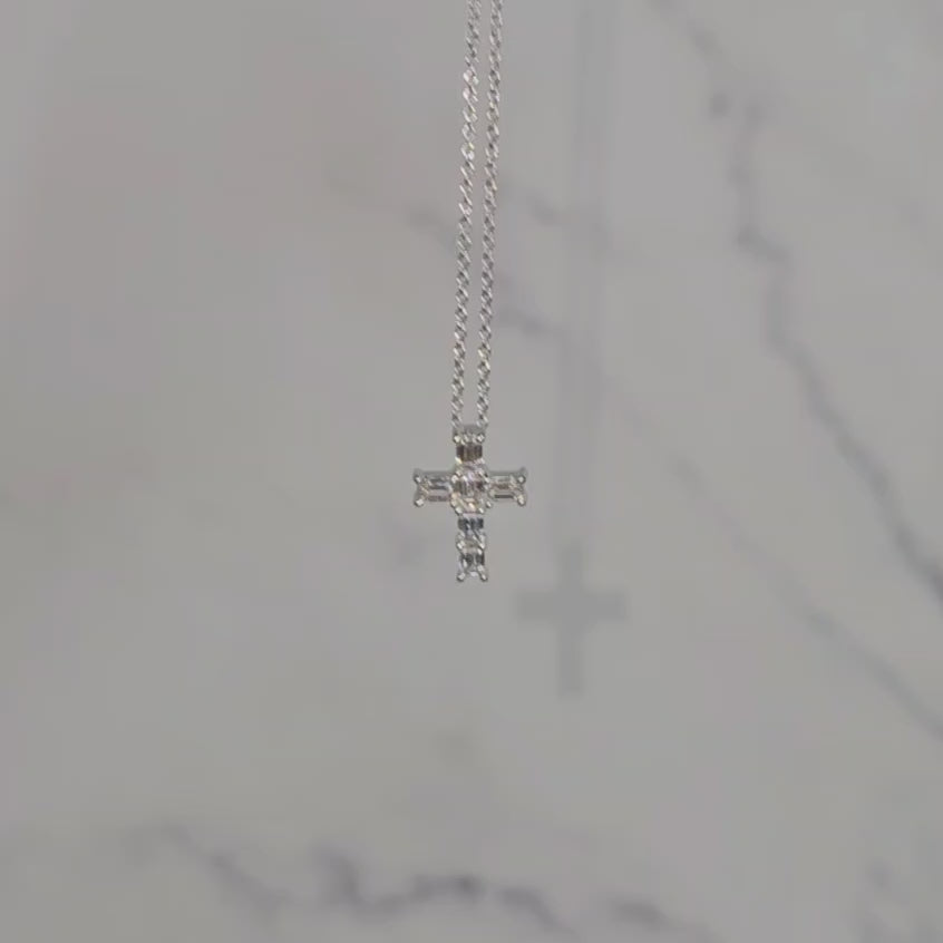 Emerald Cut Diamond small Cross Pendant /Natural Diamond Necklace/14K Gold Emerald Cut Diamond small Cross/Anniversary Gift