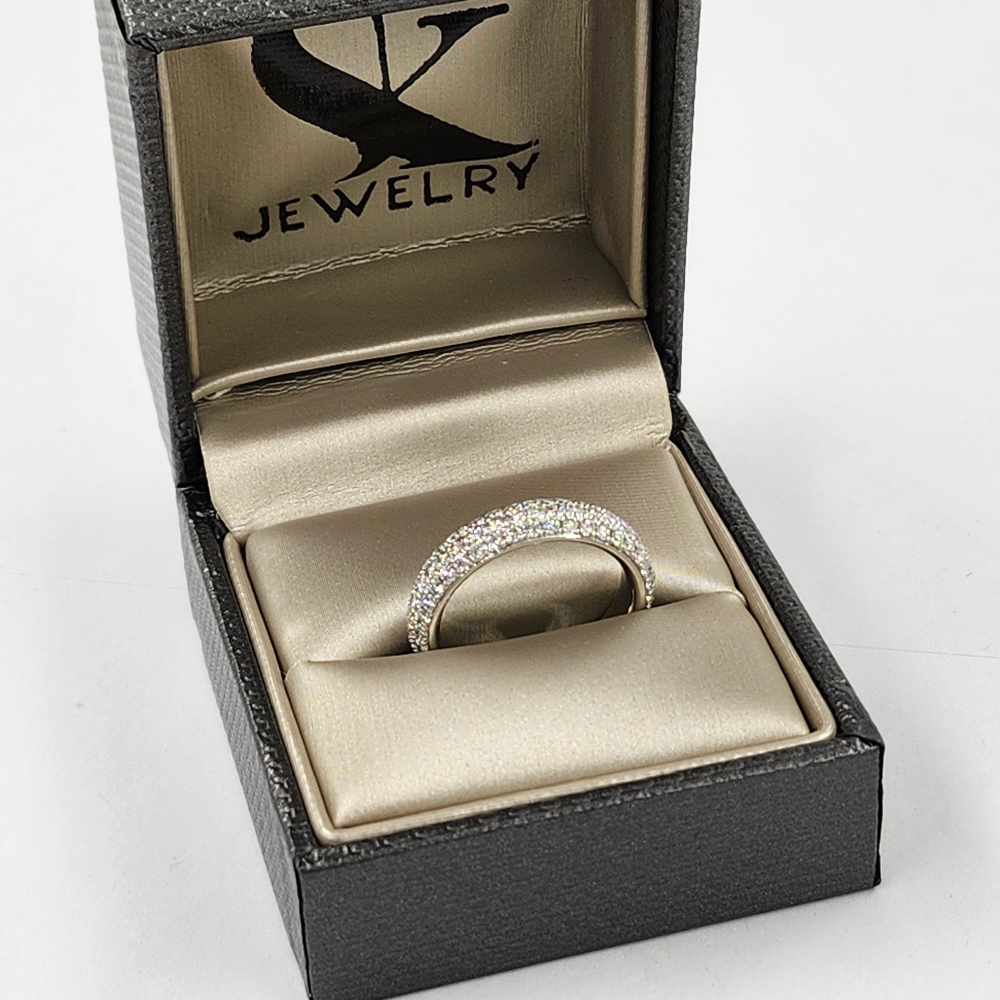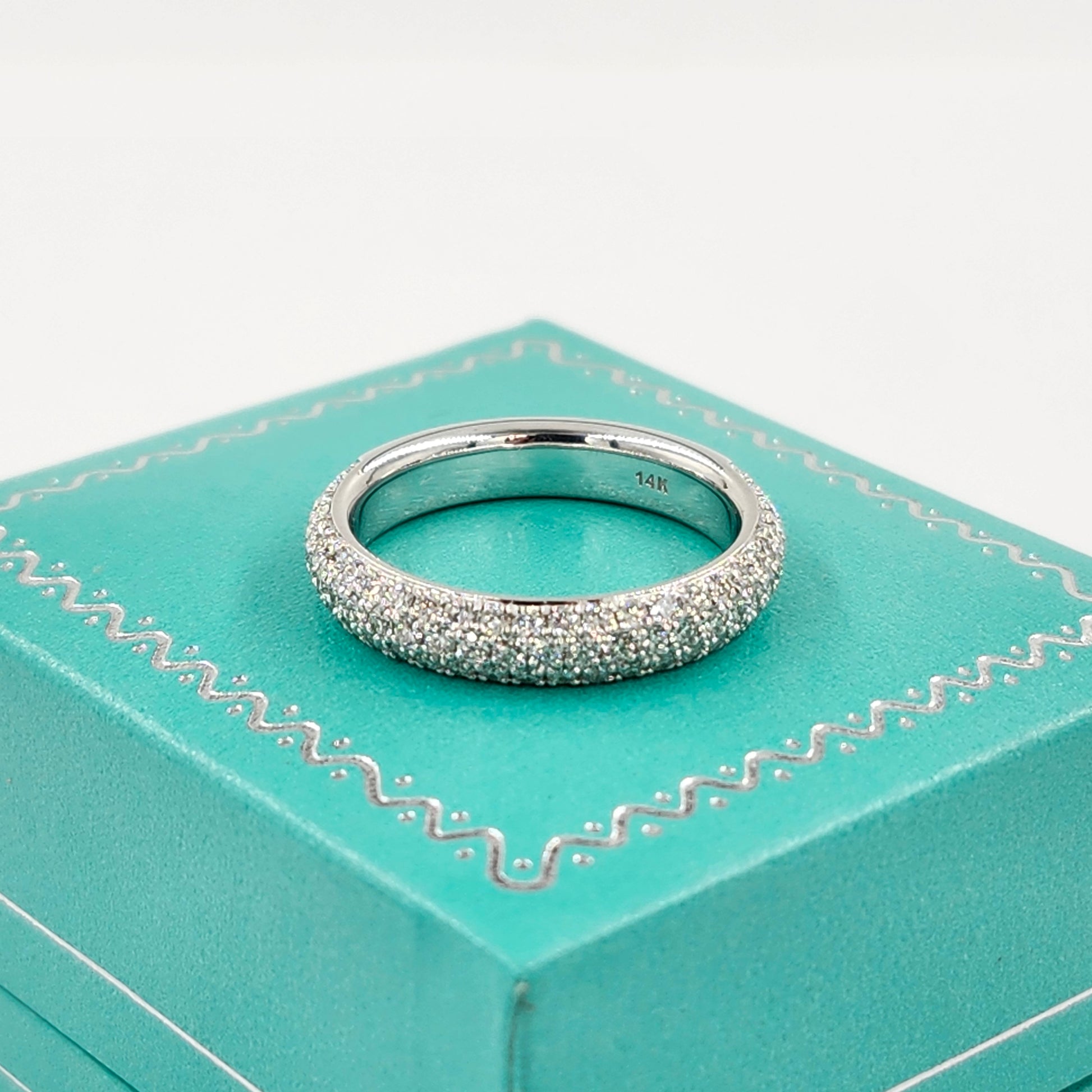 14K Gold Natural Diamond Eternity 4.0mm Wedding Band : 3/4 Eternity Stackable Ring - 3 Row Diamond Anniversary Ring