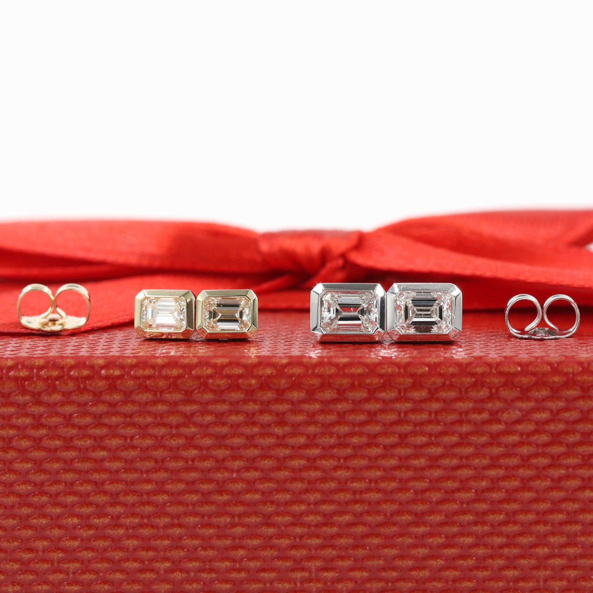 14K Gold Natural Diamond Stud Earrings: Emerald Cut Diamond Bezel Stud Earrings - Anniversary gift