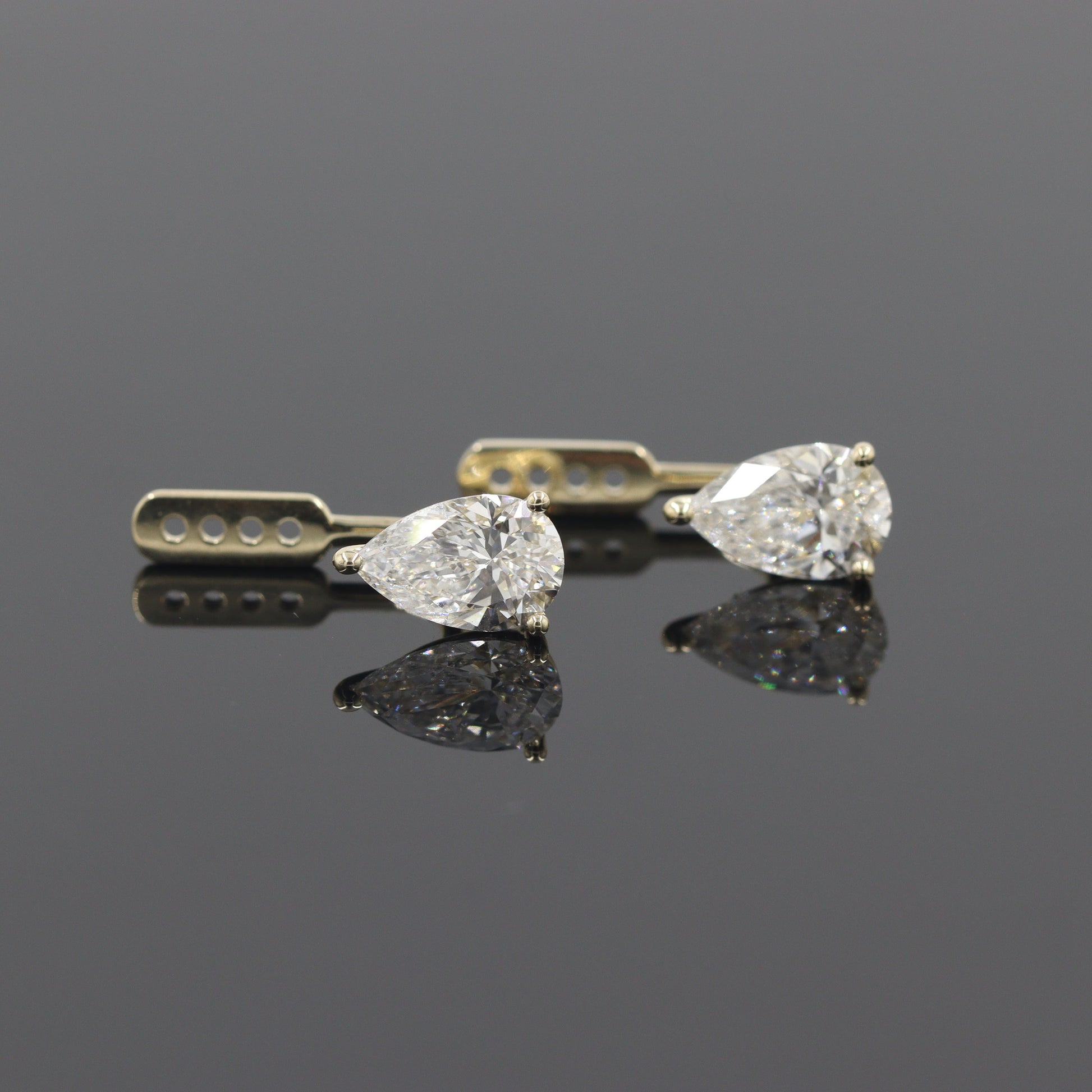 14K gold Pear Lab Diamond Jacket Earring -Three Prong Diamond Jacket Earring - Jacket earring only - Anniversary gift