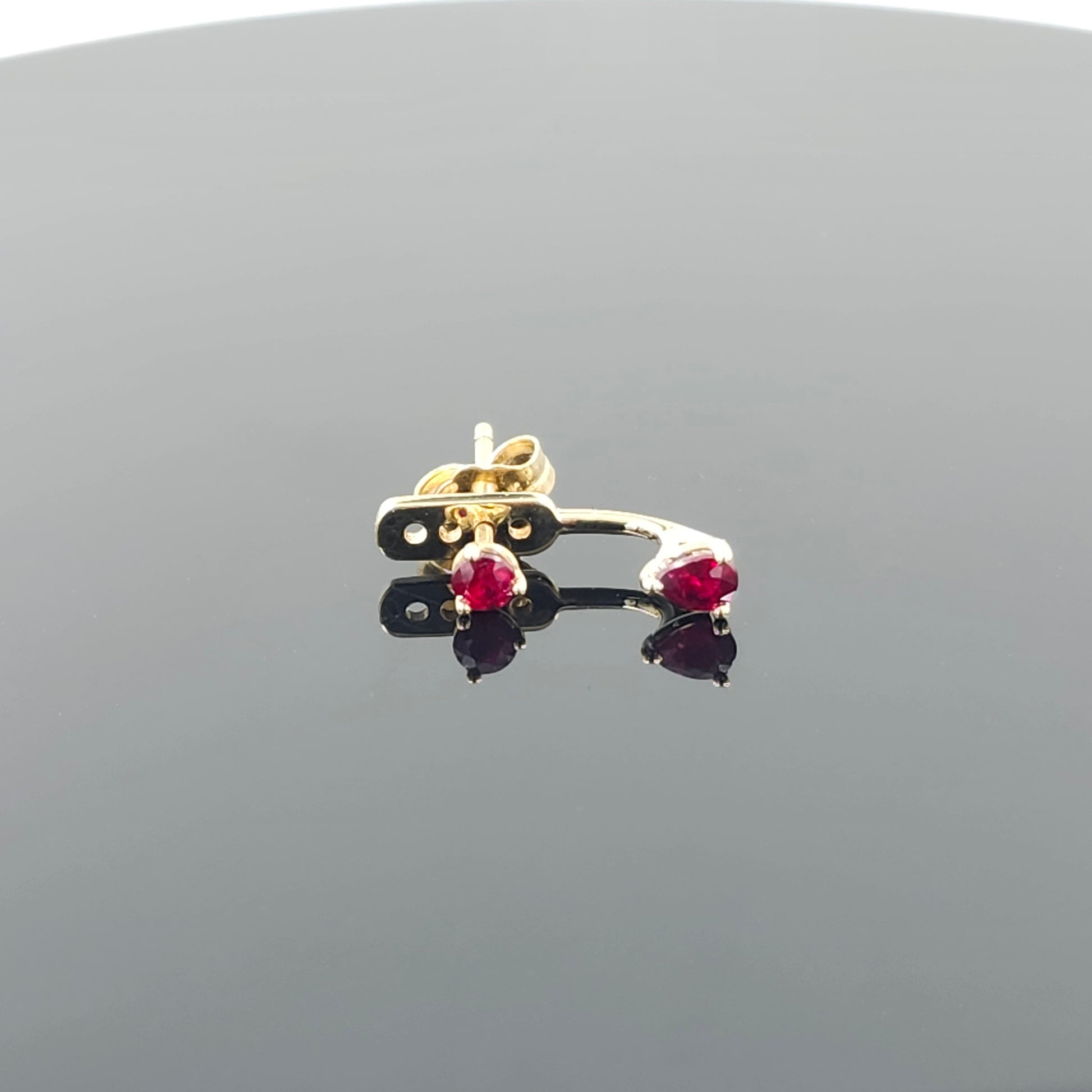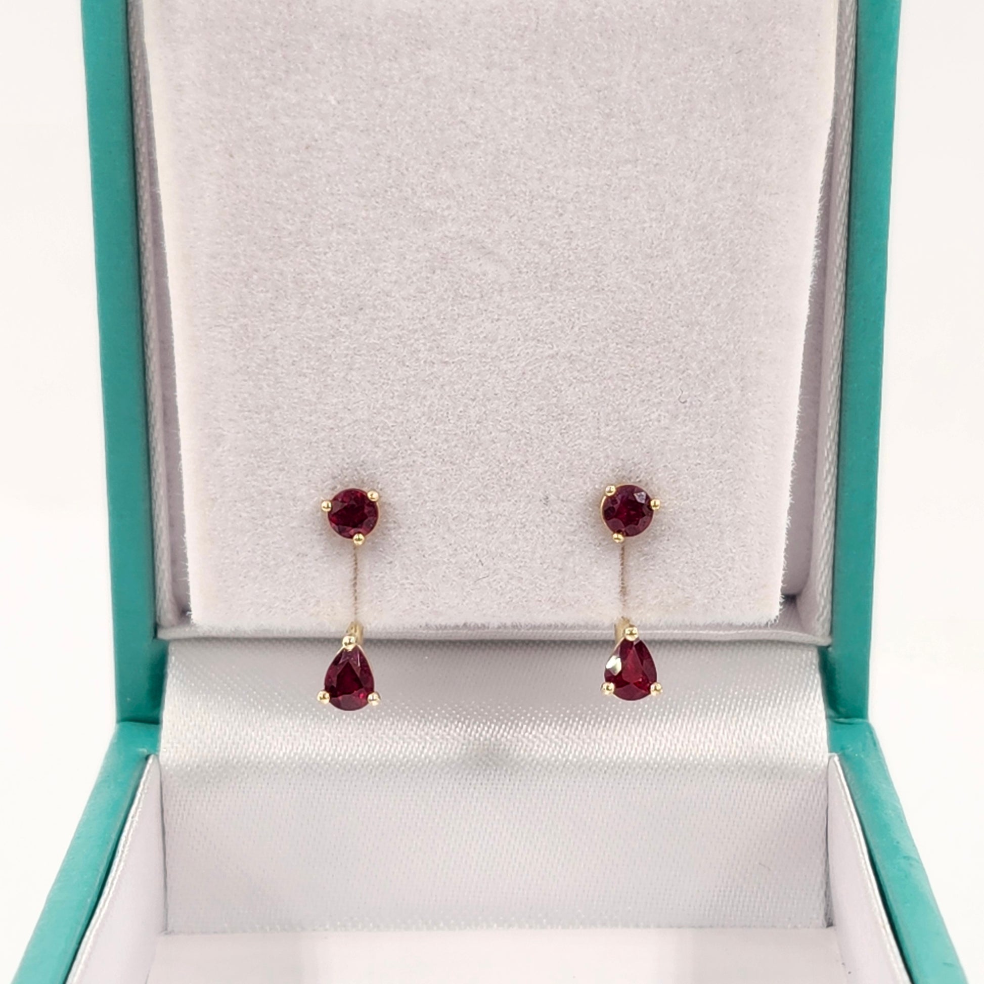 14K Gold Pear Ruby Jacket Earrings: Natural Round Ruby Stud Earring - Anniversary gifts