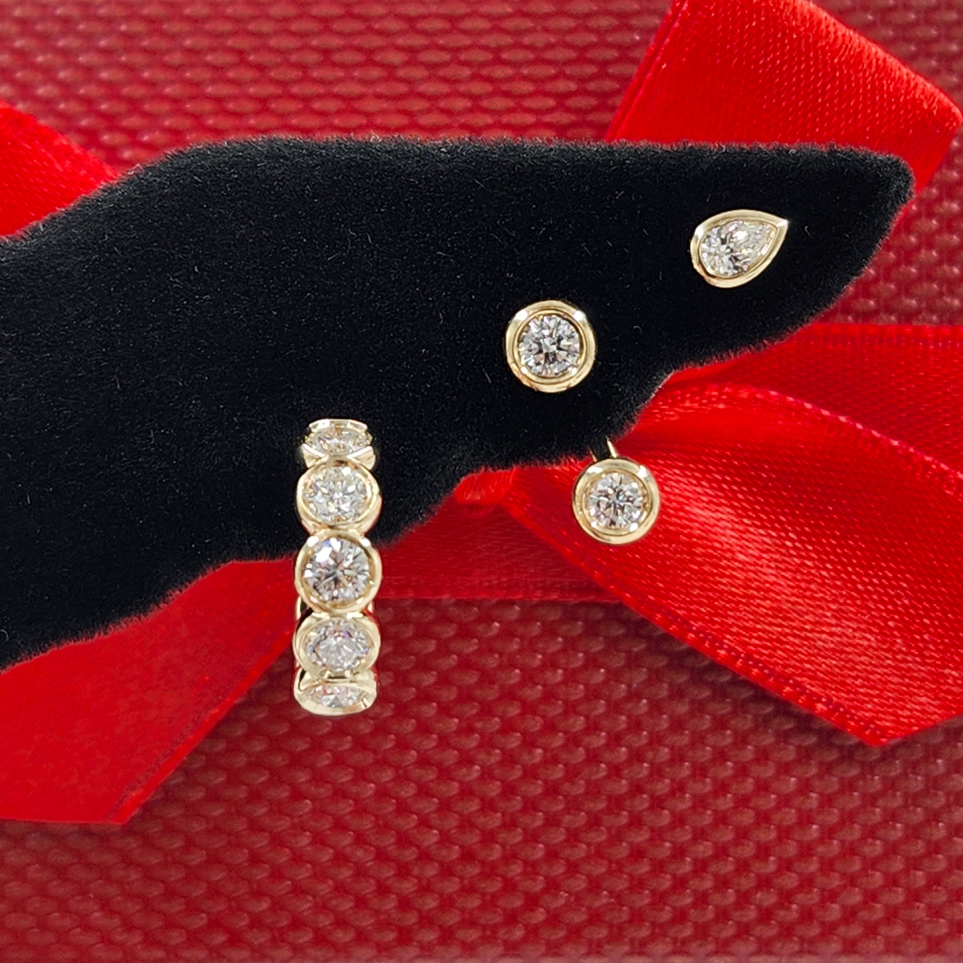 1ct Diamond Huggies Bezel Hoop Earring/Round Natural Diamond Bezel Hoop Earring/14K gold ,18K gold Hoop Diamond Earring/Anniversary gift