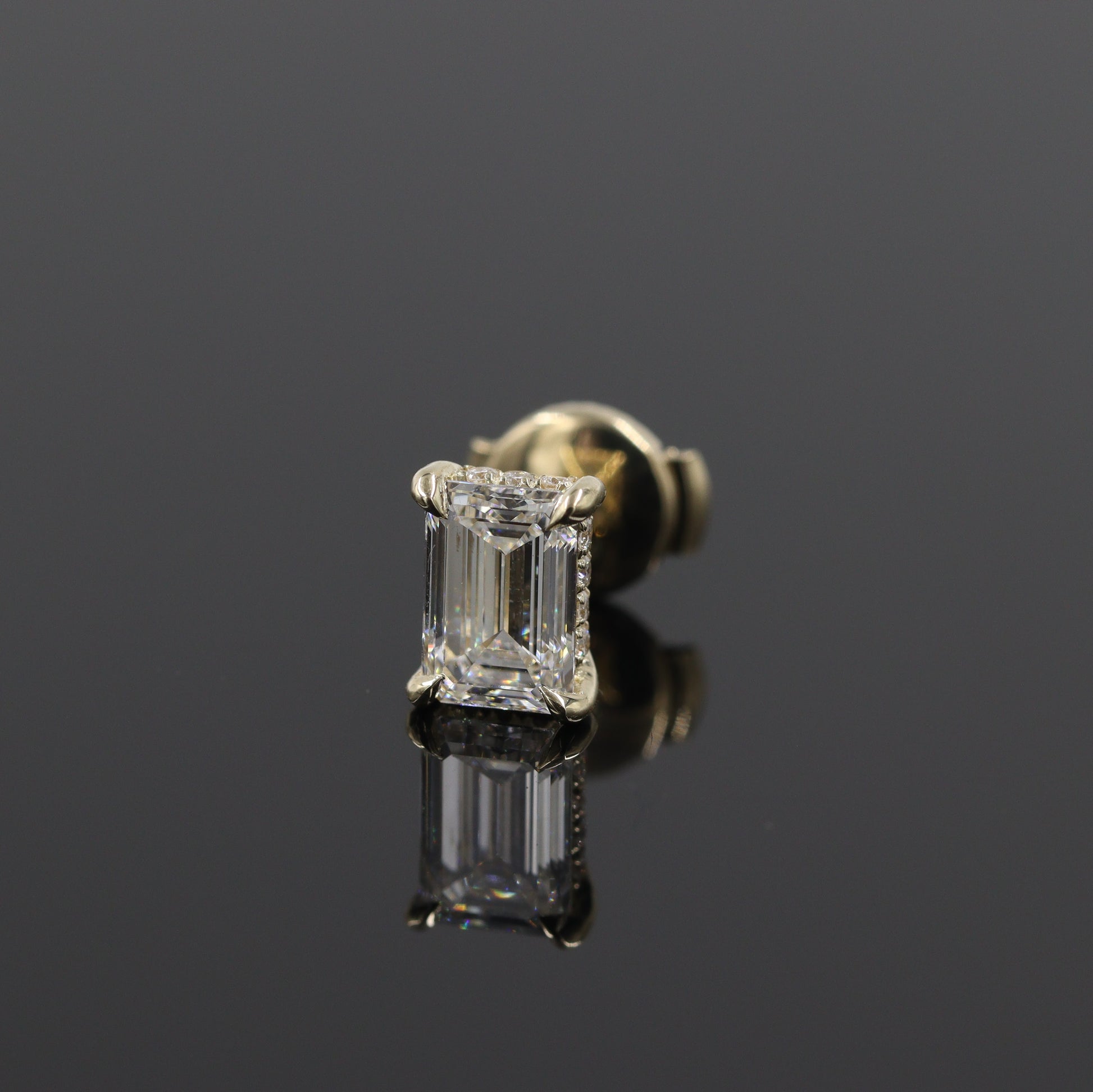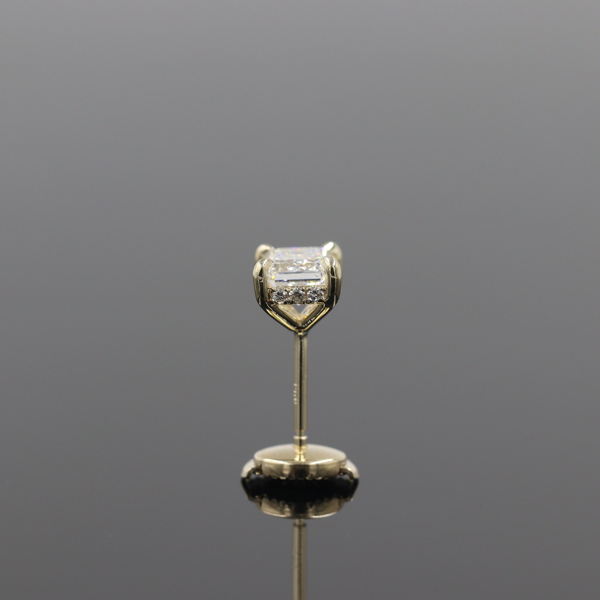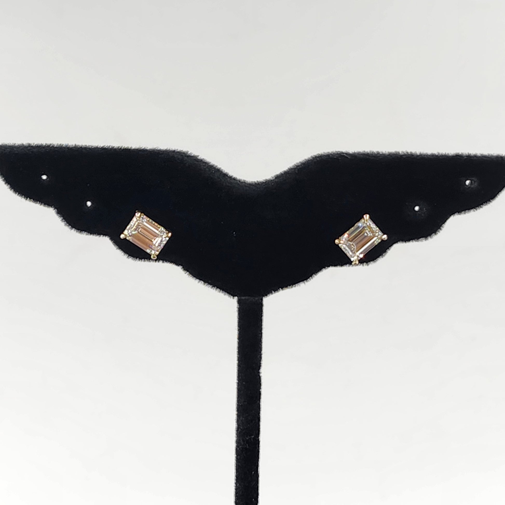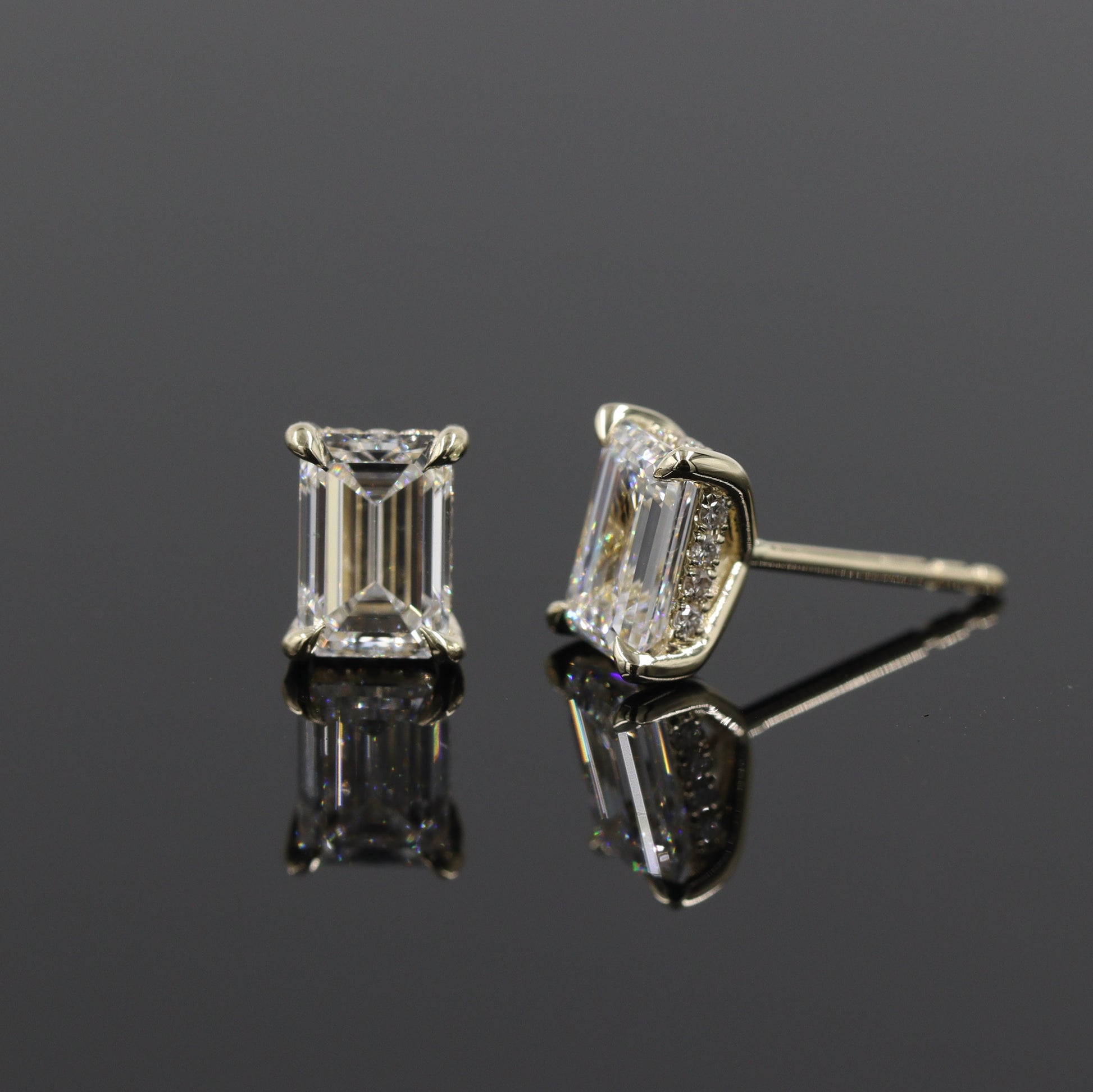 Emerald Cut Lab Grown Diamond Stud Earrings: 14k Gold Wedding Jewelry - Anniversary gift