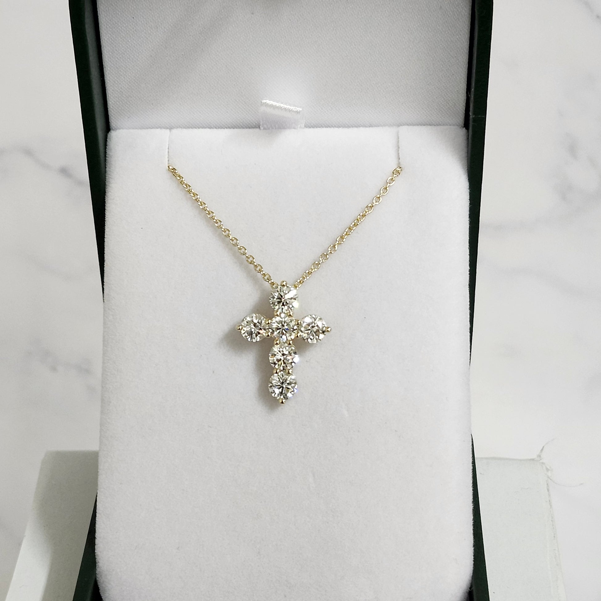 2.7ct Round Diamond Cross Necklace /Luxury Cross Lab Grown Diamond Pendant /14K Gold Cross Necklace /Anniversary Gift