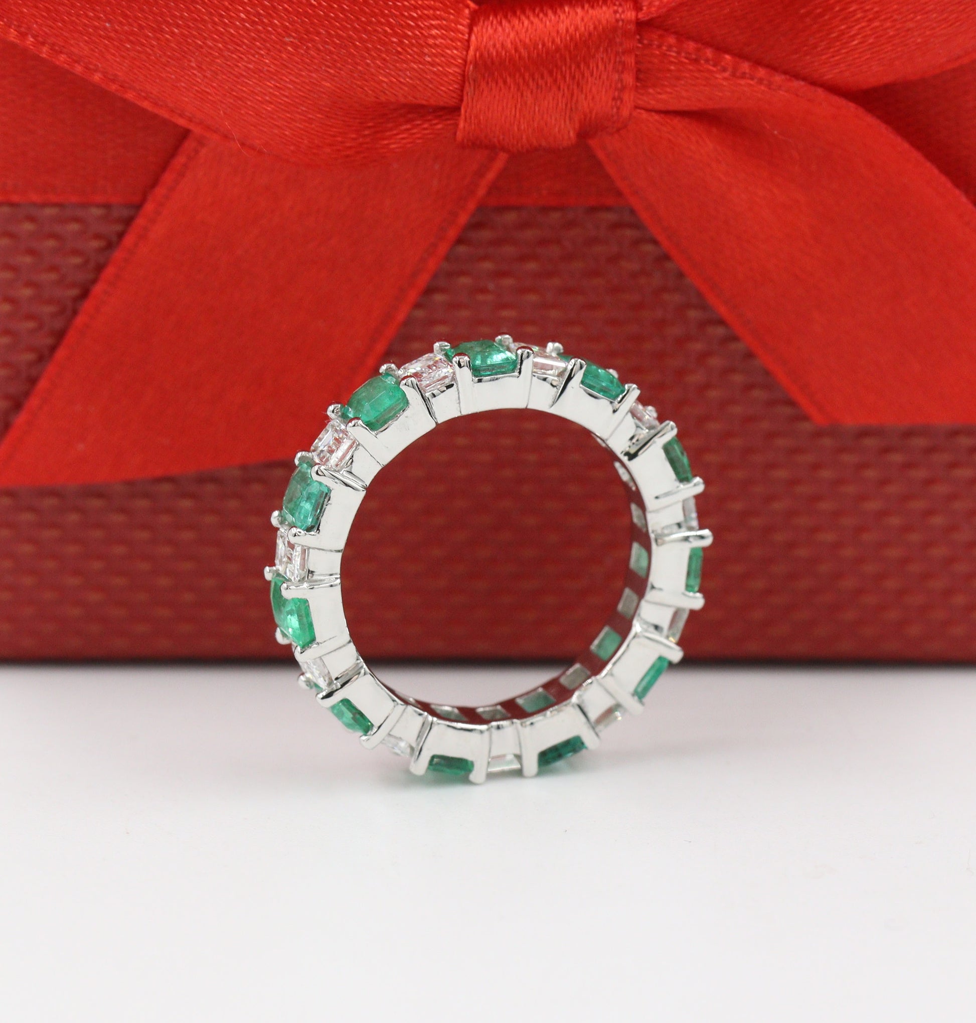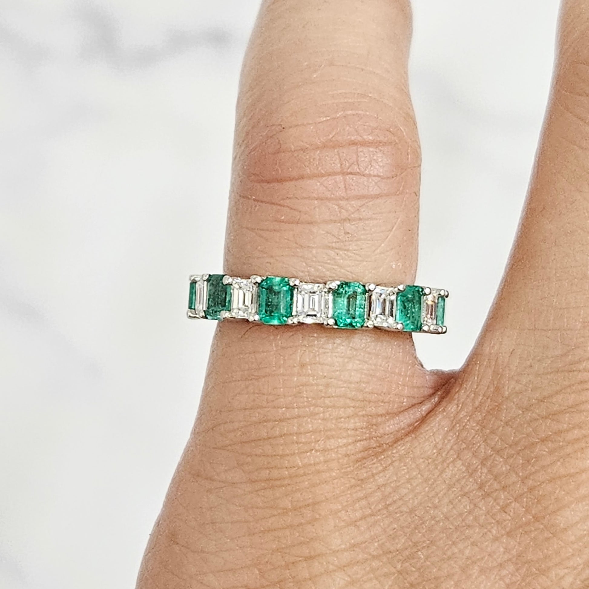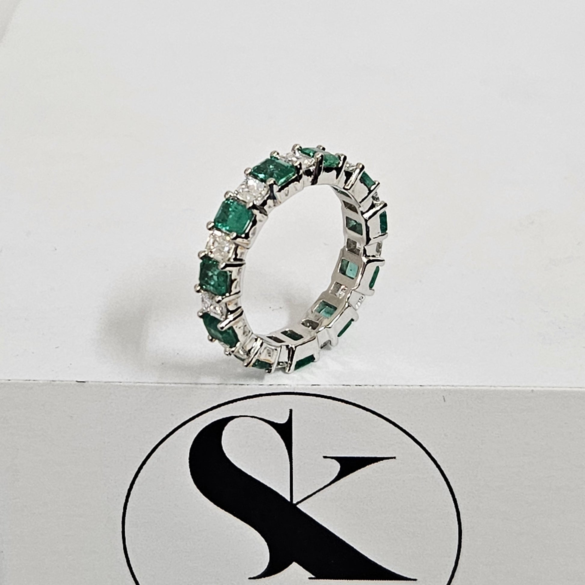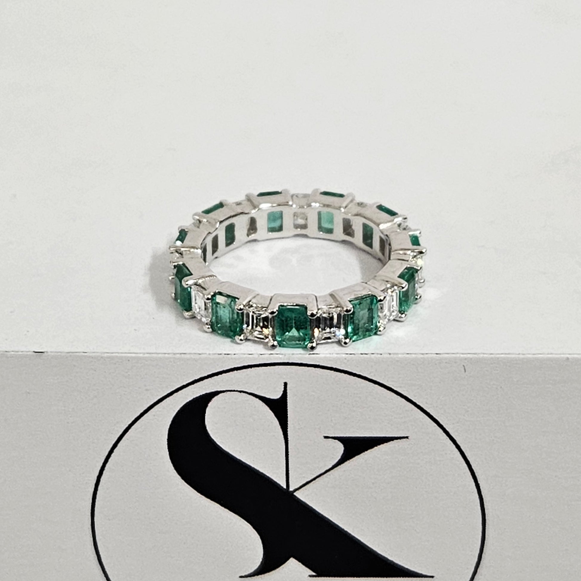 3.1ct Natural Green Emerald & Emerald Cut Diamond Ring / Alternating Full Eternity Width 4.1mm Platinum Wedding Ring / Anniversary gift
