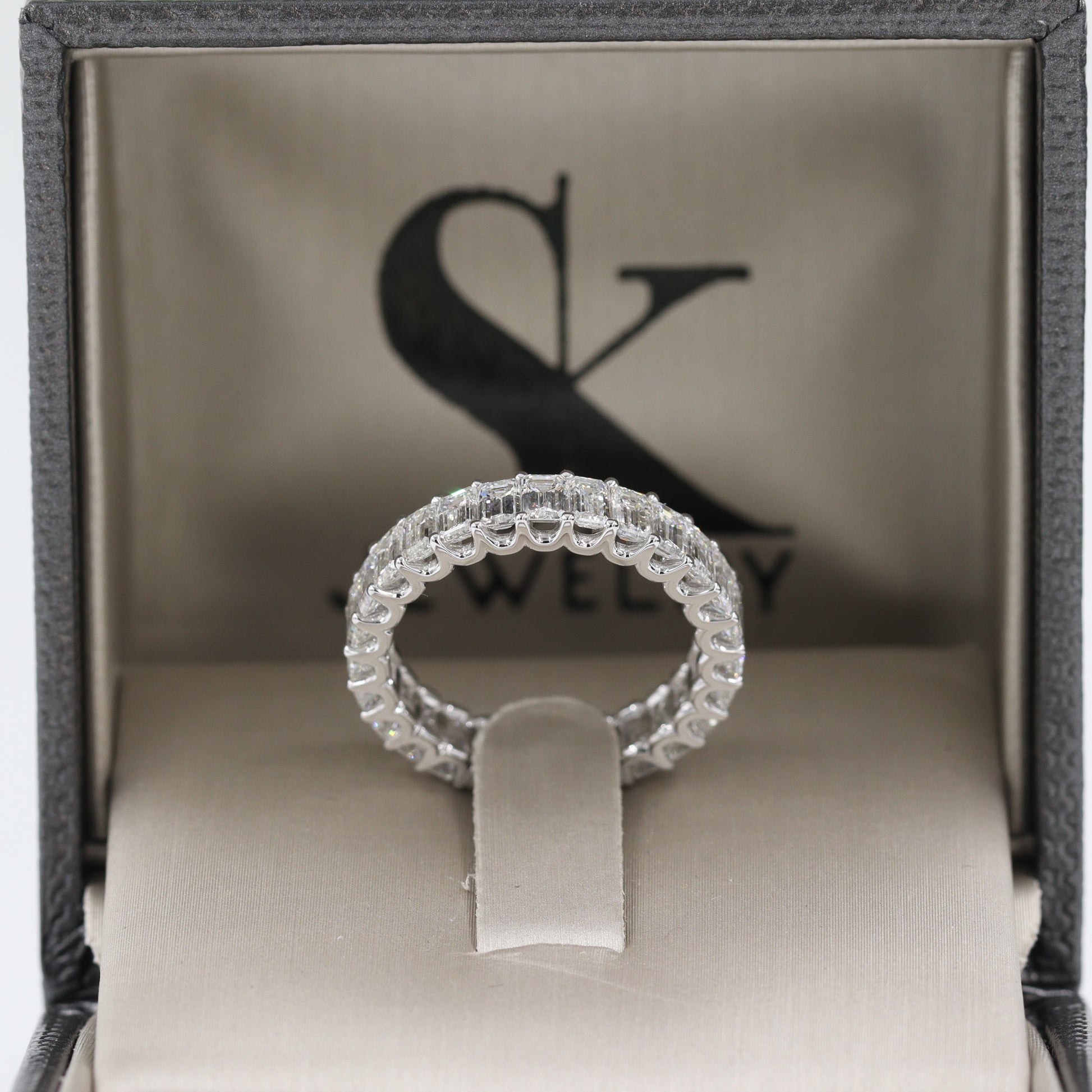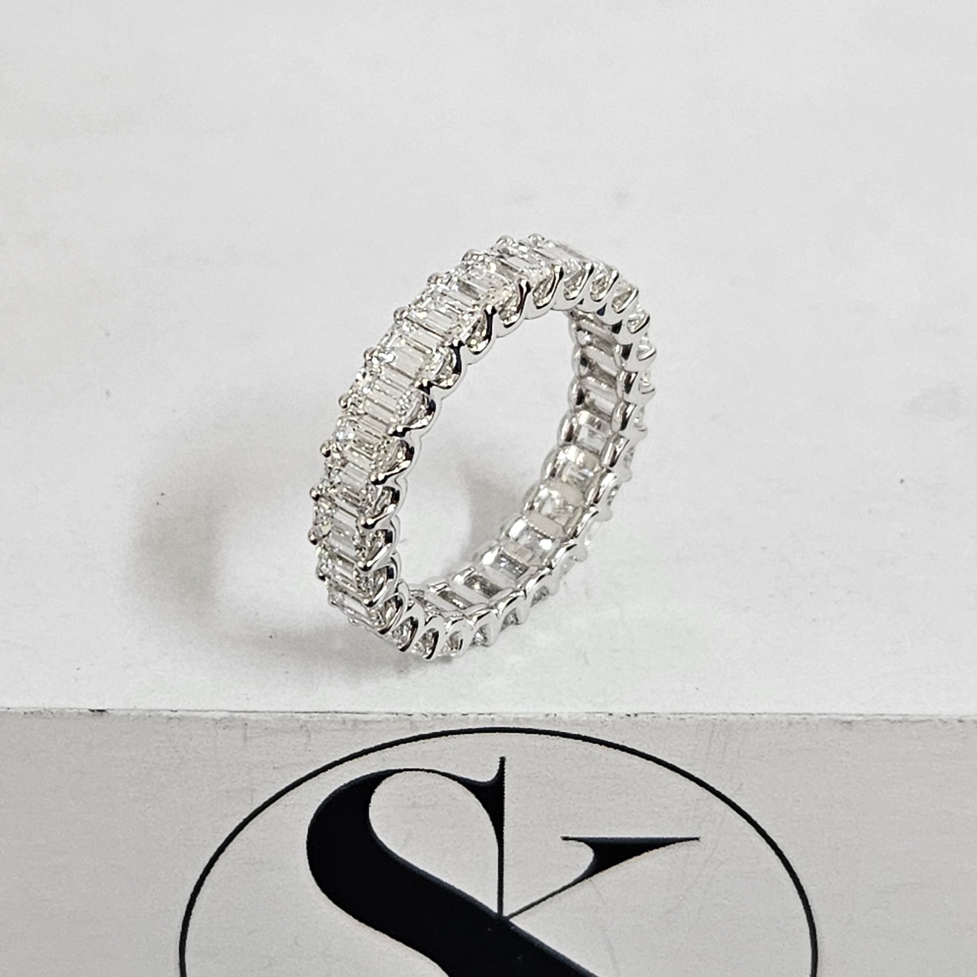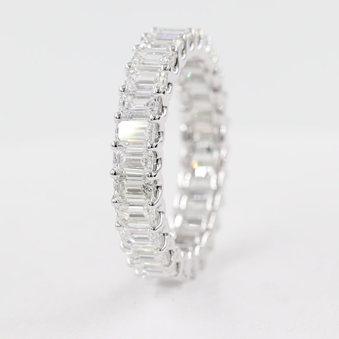 Emerald Cut Diamond Wedding Band/Full Eternity Wedding Ring/ Emerald Cut Diamond U-Shape Band/Stackable Diamond Band/Anniversary gift