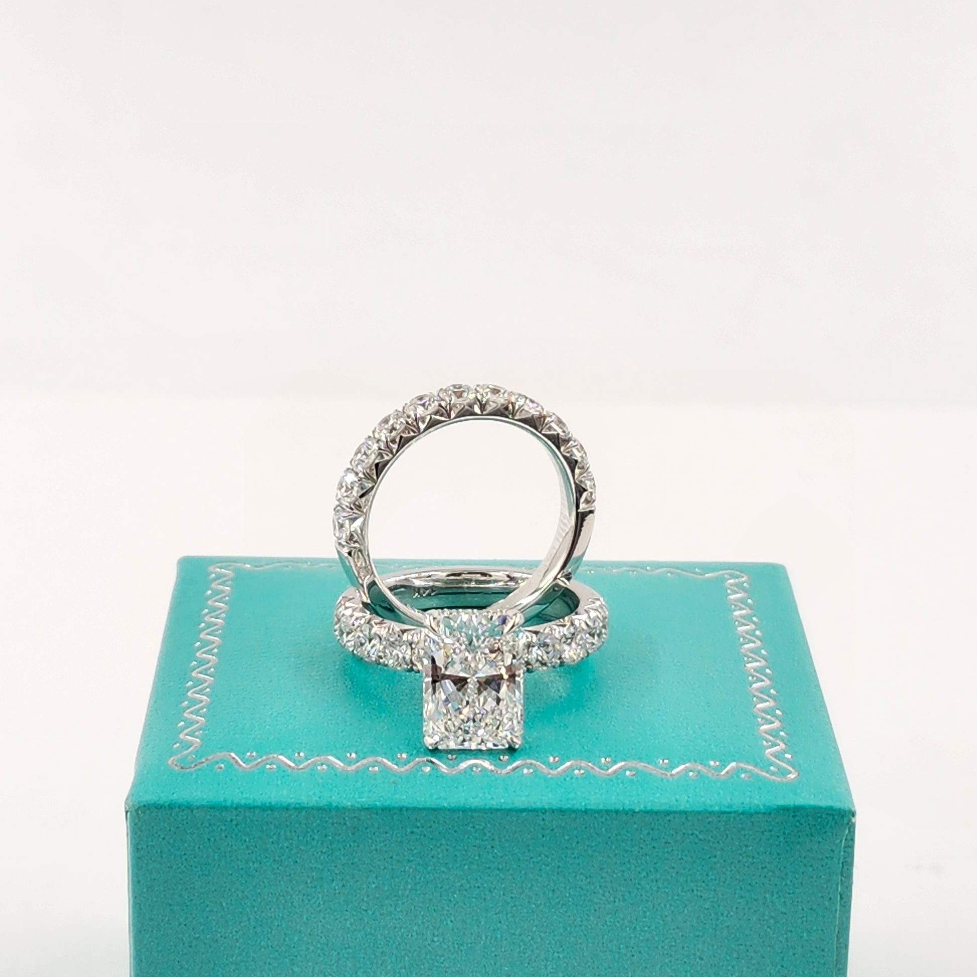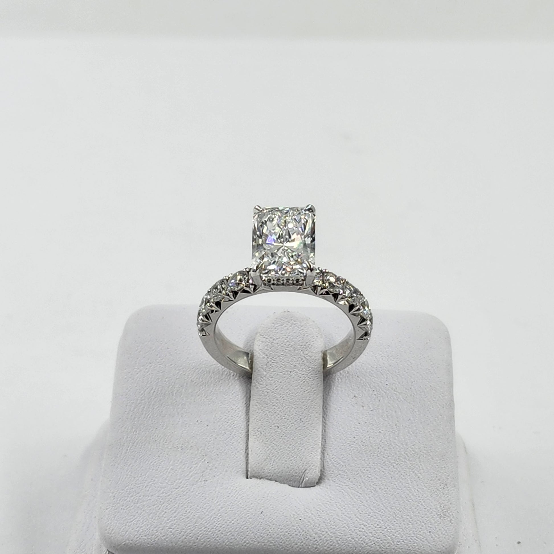 3ct IGI Certified Radiant Cut Lab diamond Ring/14K ,18K gold French Pave Diamond Engagement Ring/Stackable diamond Ring/Anniversary gift