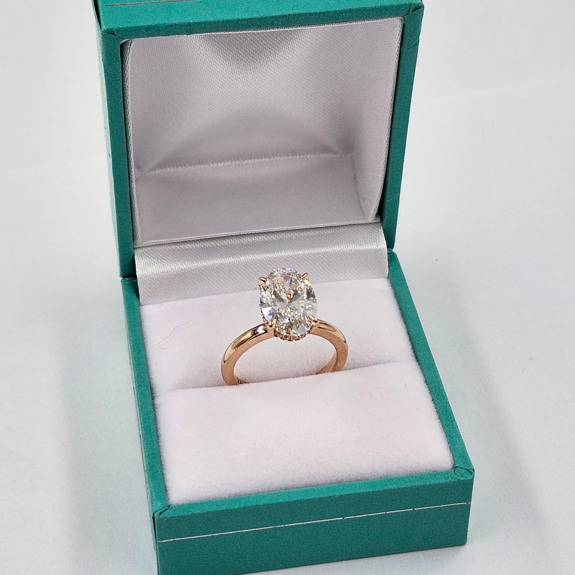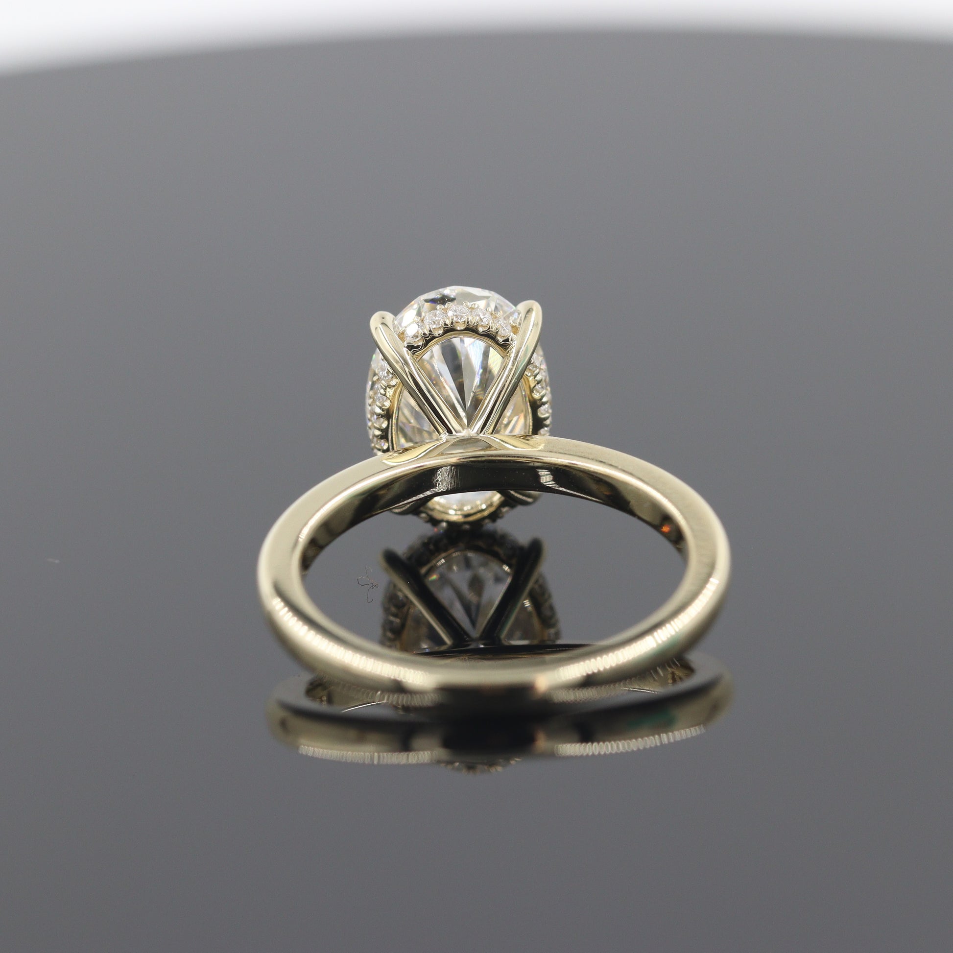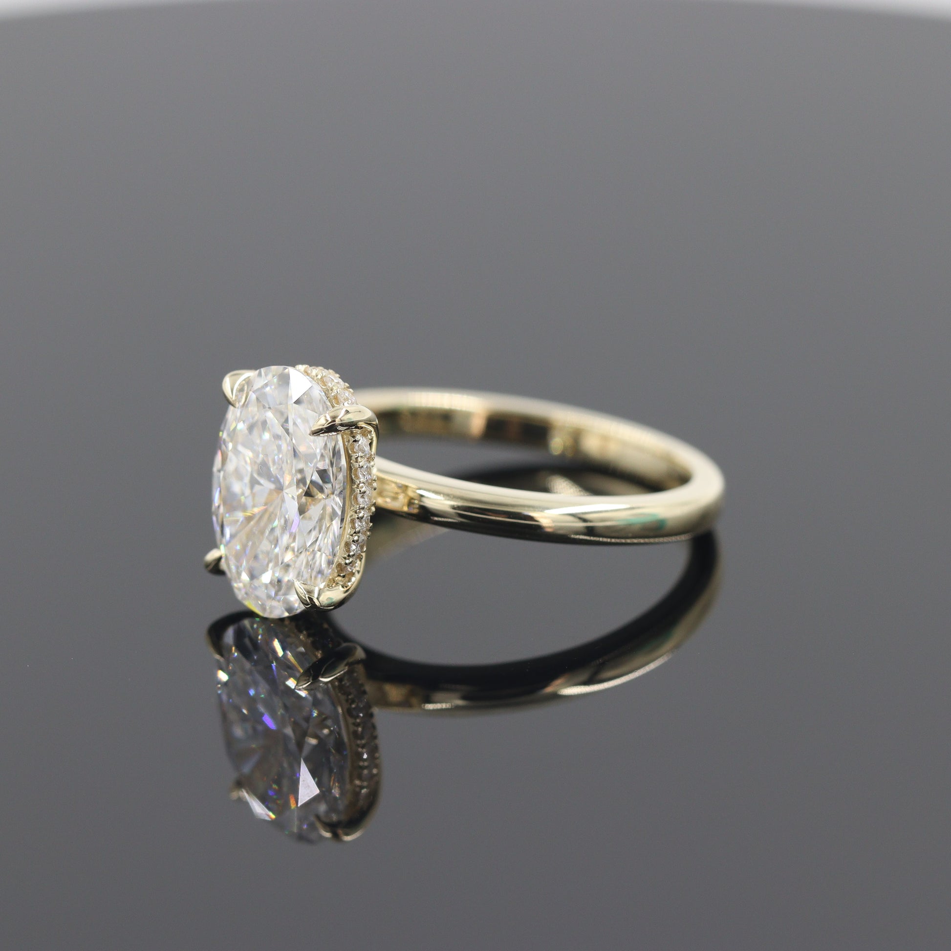 Lab Diamond Engagement Ring - 14K Gold 3ct Oval Diamond Hidden Halo Ring - Anniversary gift