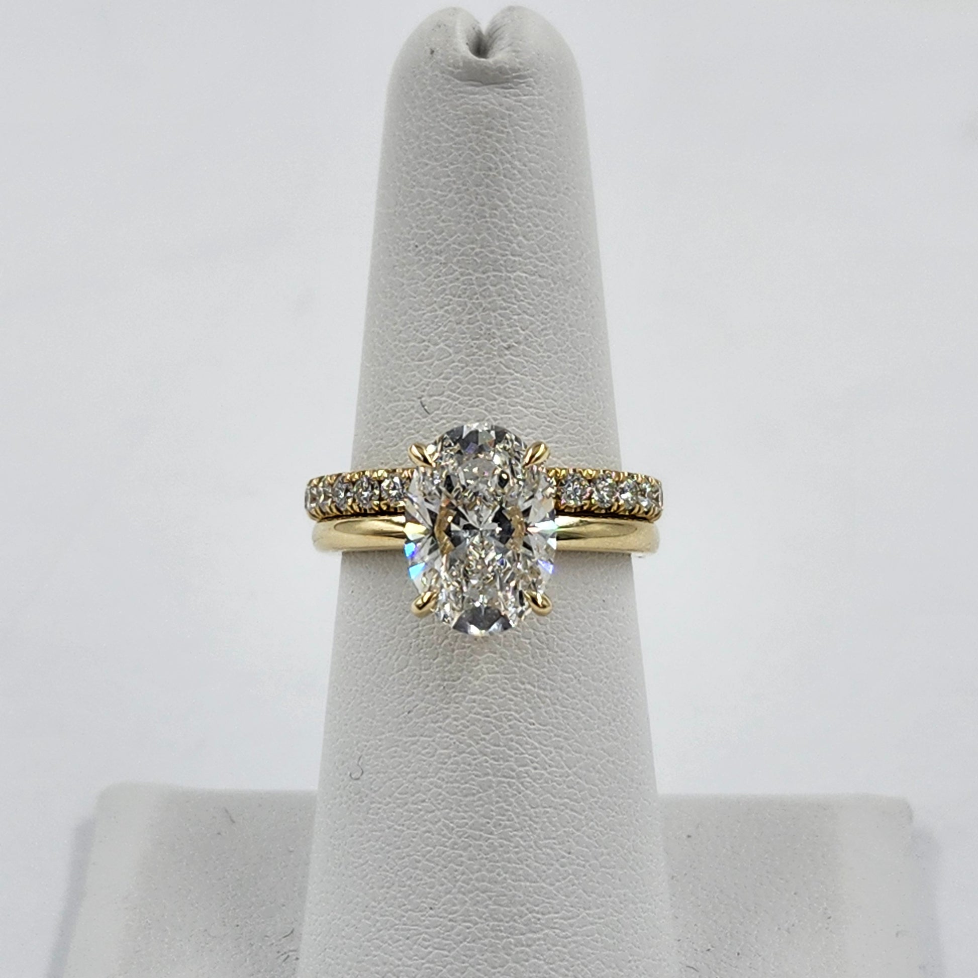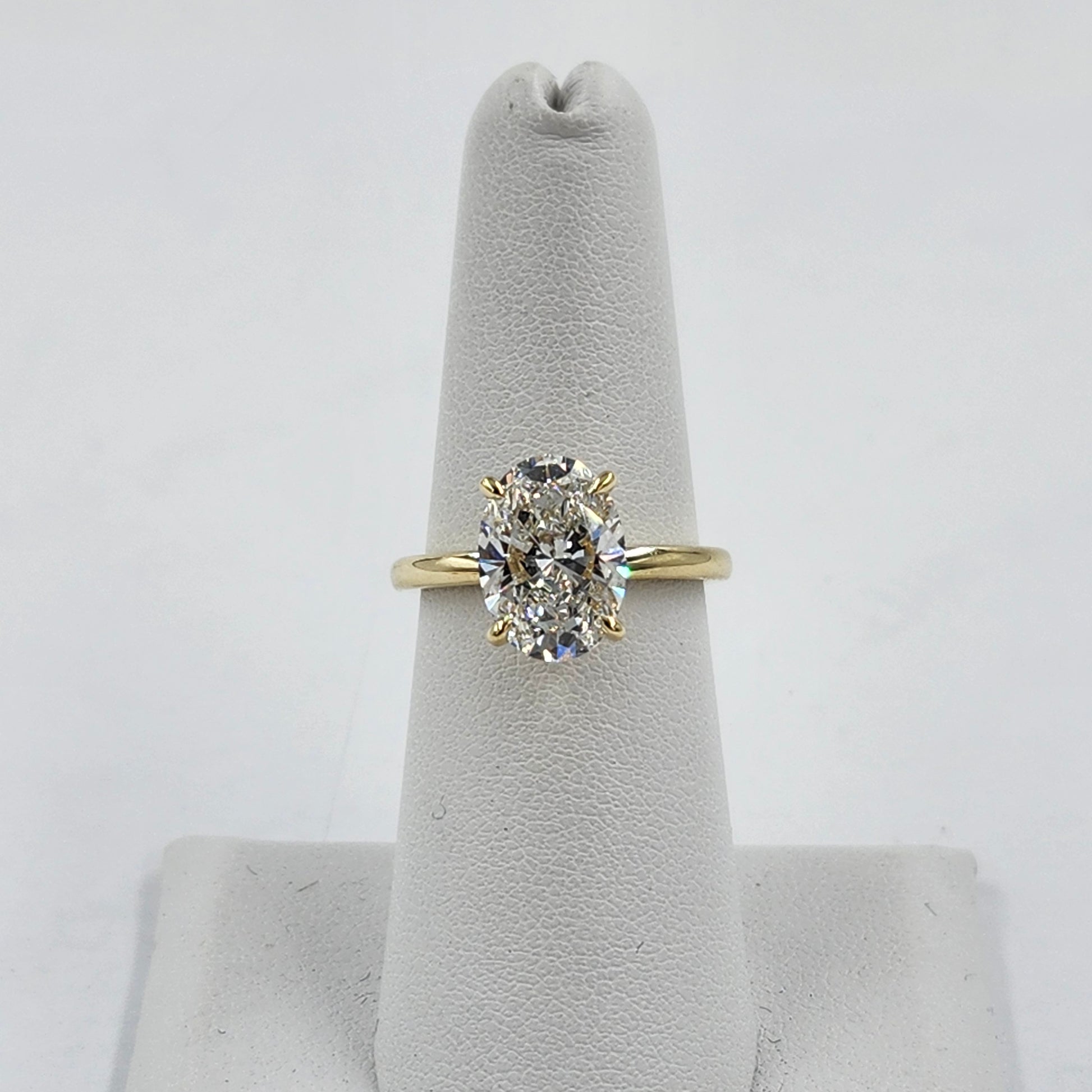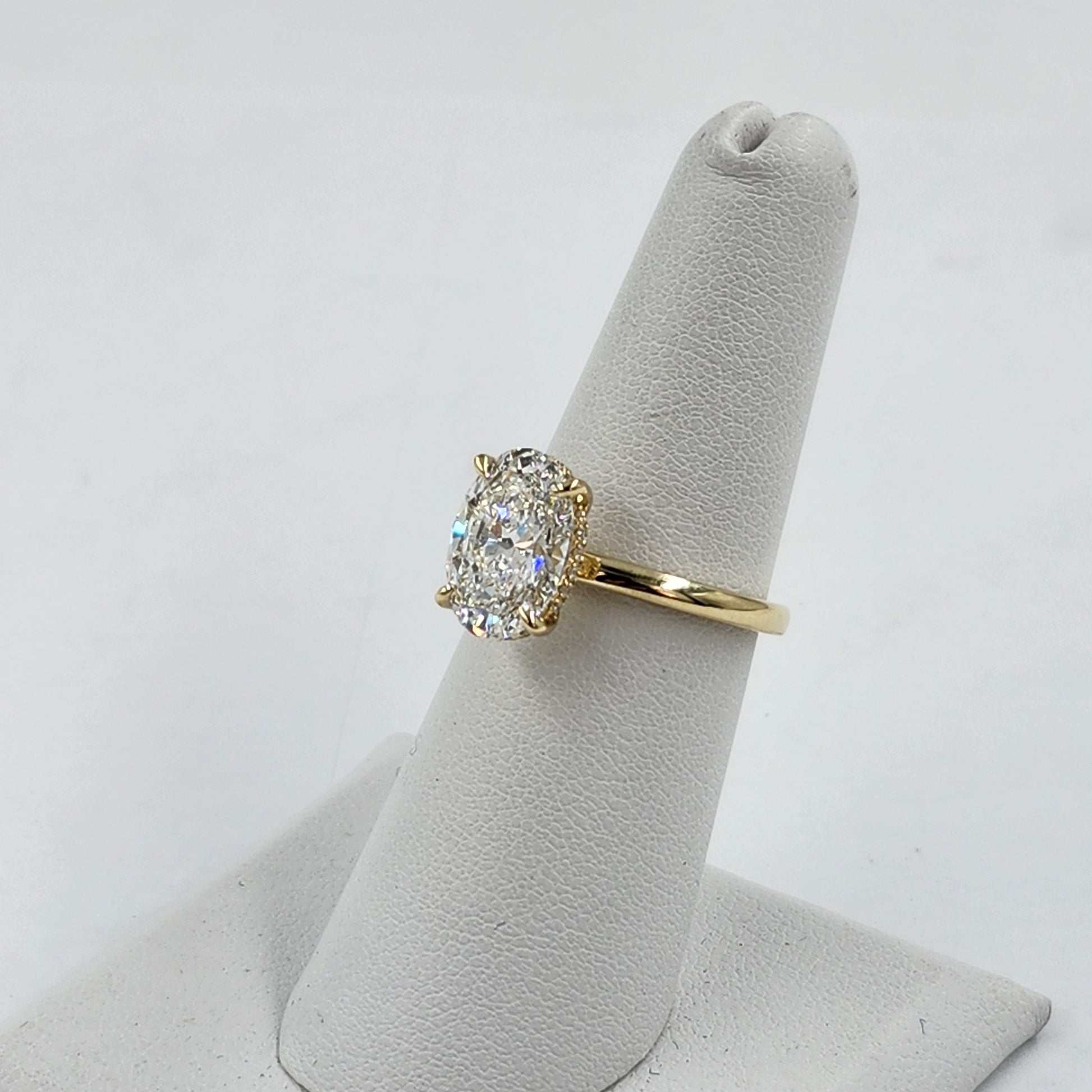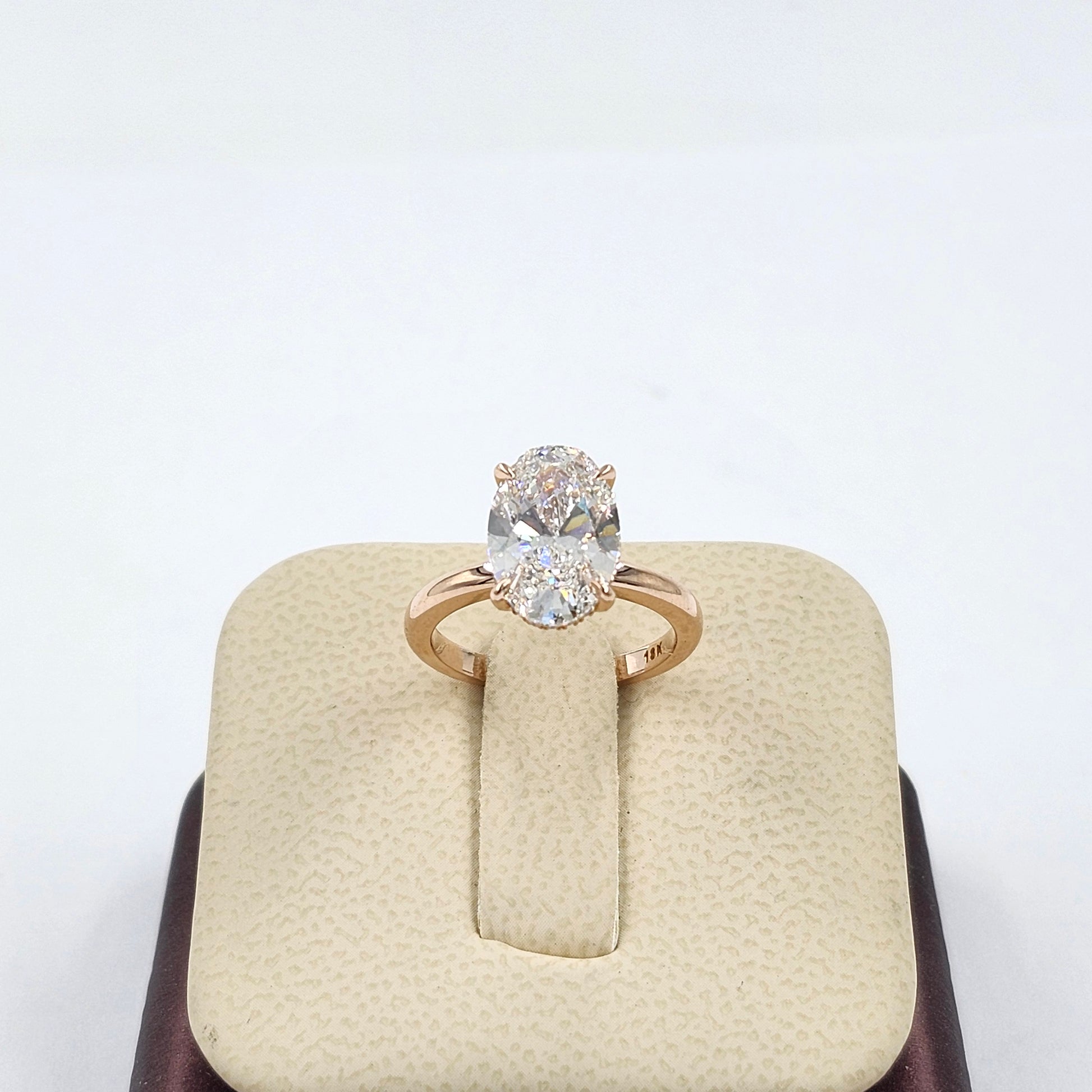 Lab Diamond Engagement Ring - 14K Gold 3ct Oval Diamond Hidden Halo Ring - Anniversary gift
