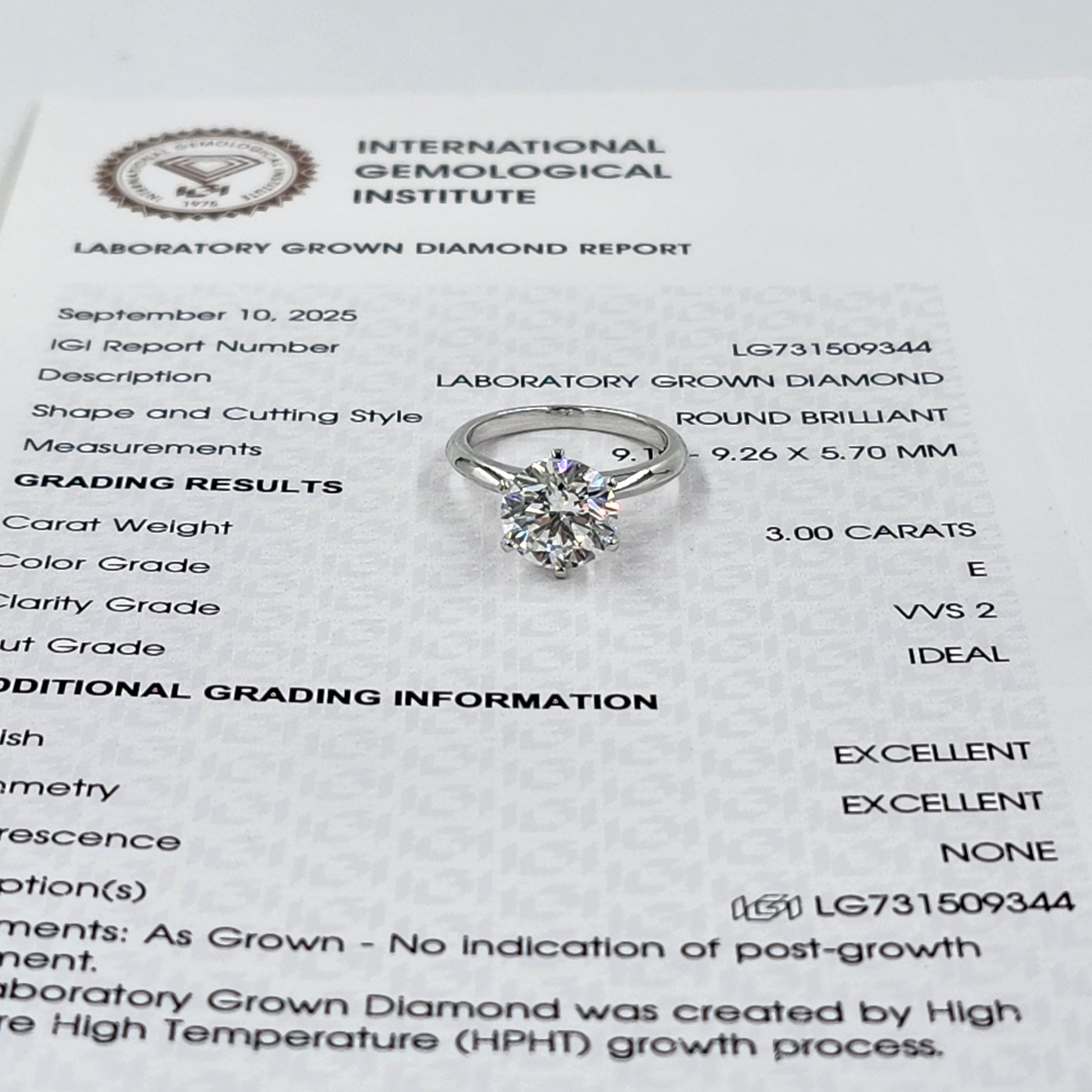 3ct Round Diamond Engagement Ring : Solitaire Lab Diamond 6 Prong Ring - Anniversary gift