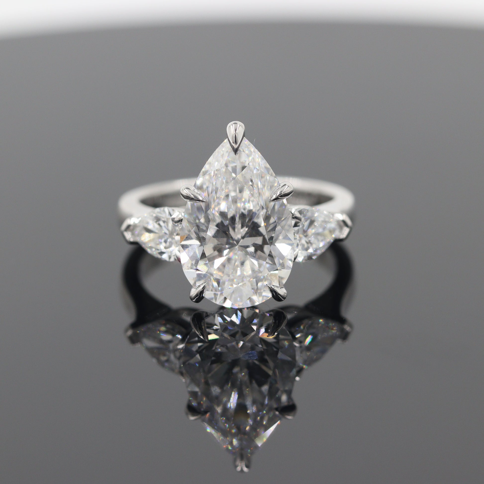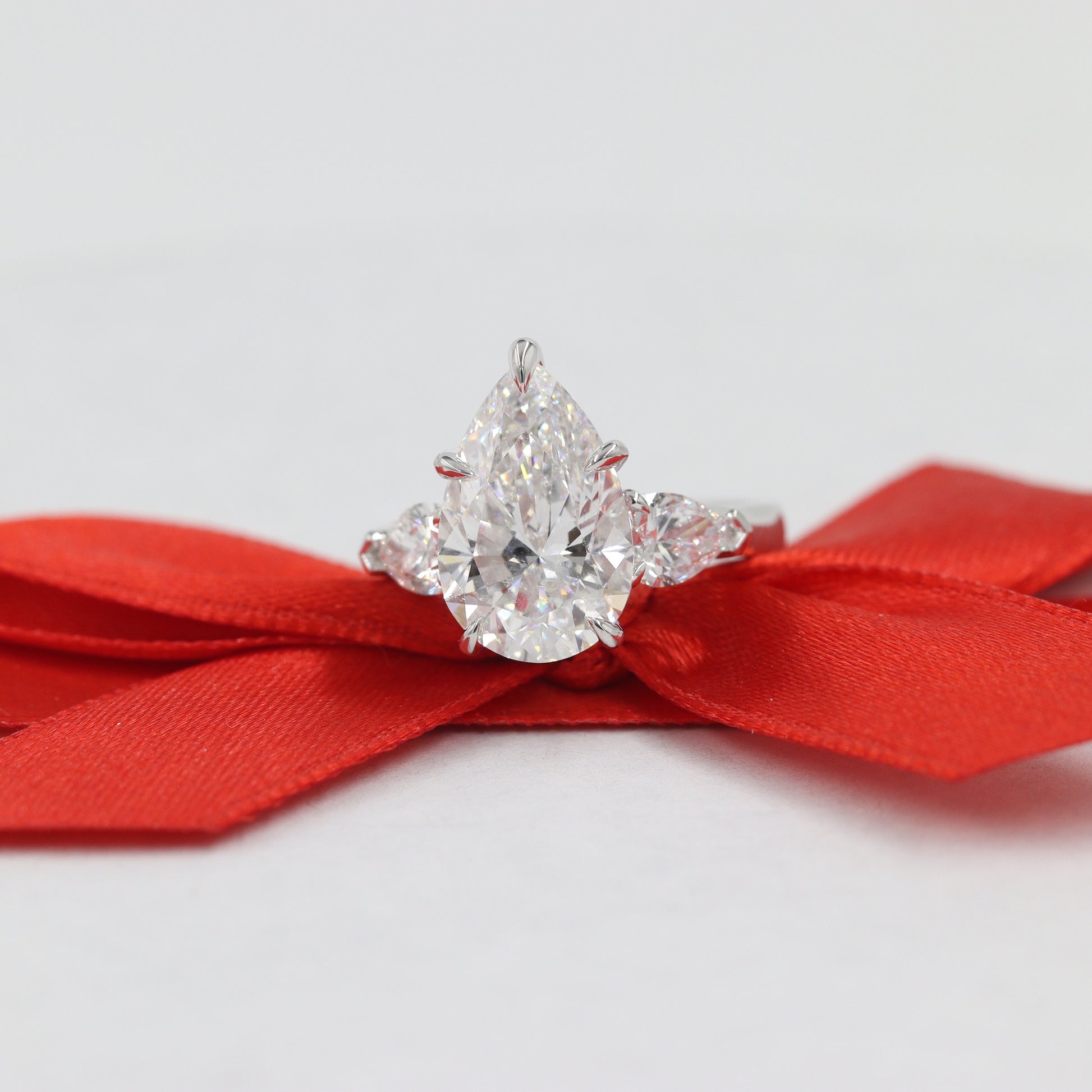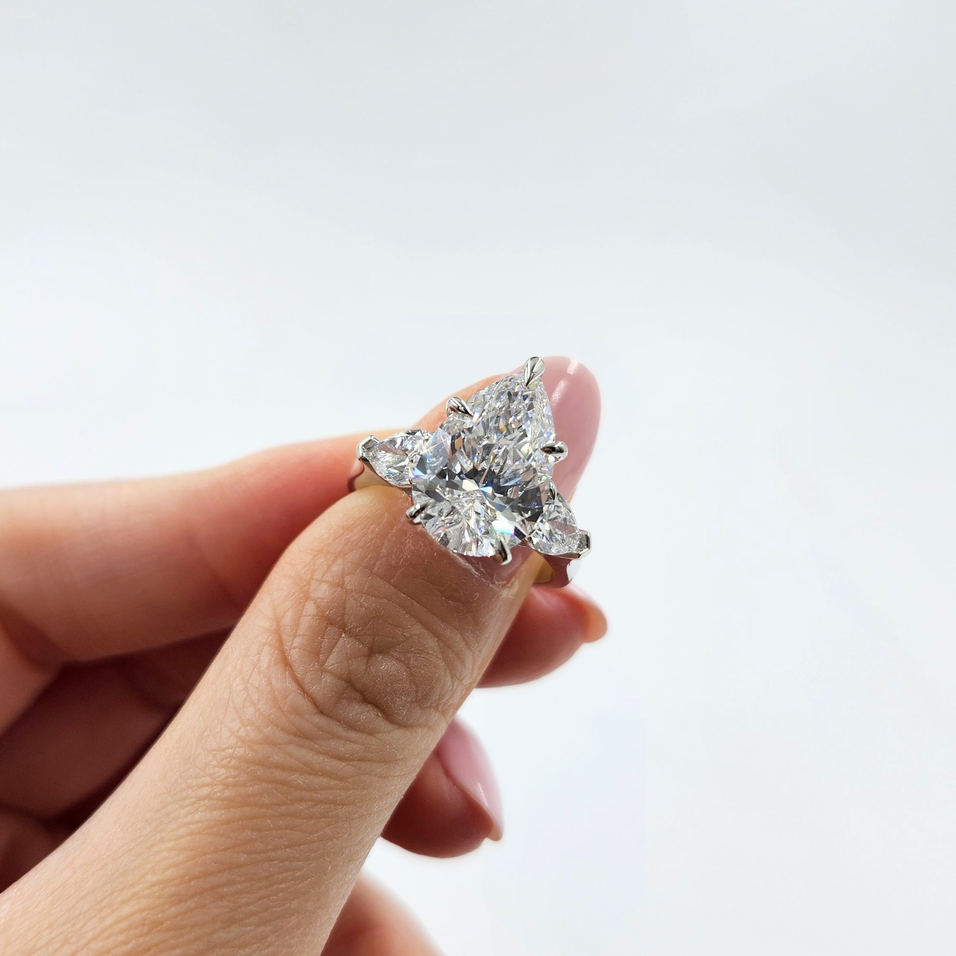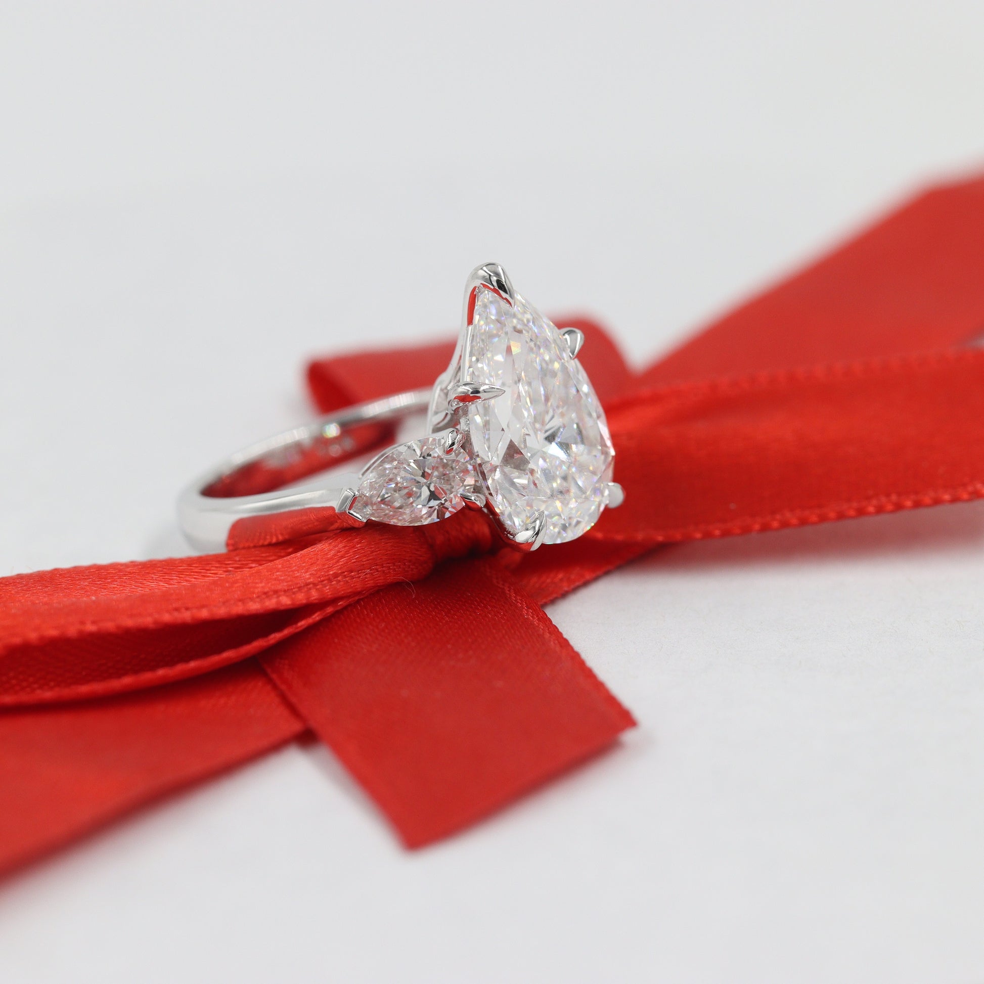 5ct Certified Engagement Ring - 14K ,18K Gold, Platinum, Lab Grown Pear Diamond & Pear Diamond Engagement Ring - Anniversary gifts