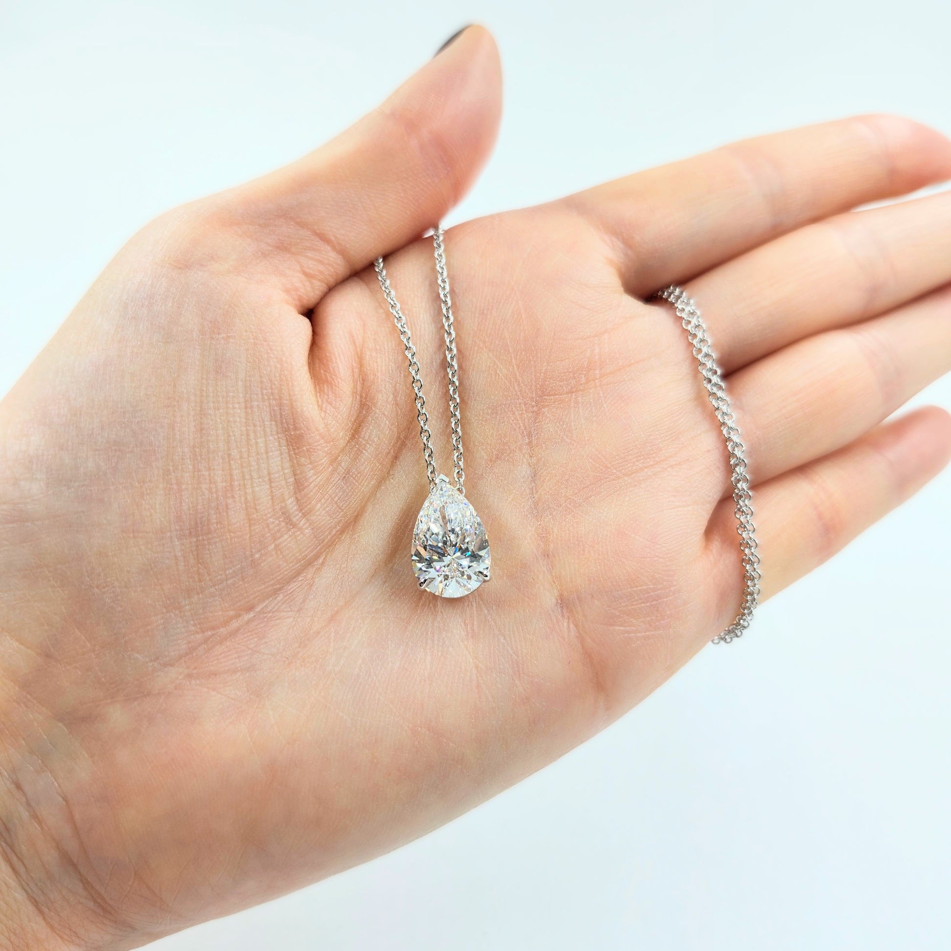5ct Center Pear Lab Diamond Solitaire Pendant - Pear Diamond Pendant - Anniversary Gift
