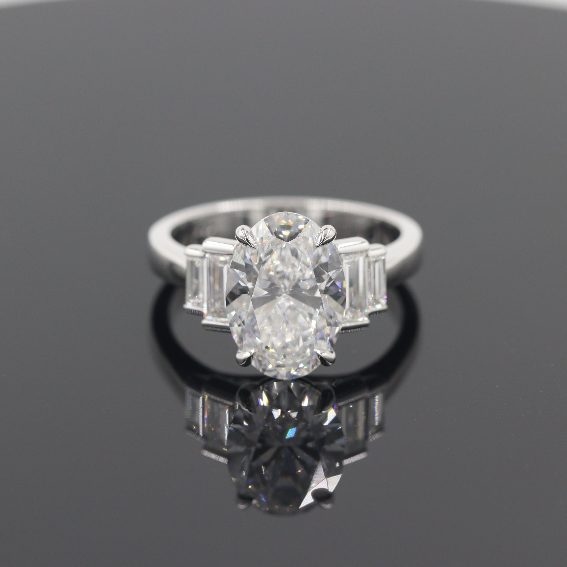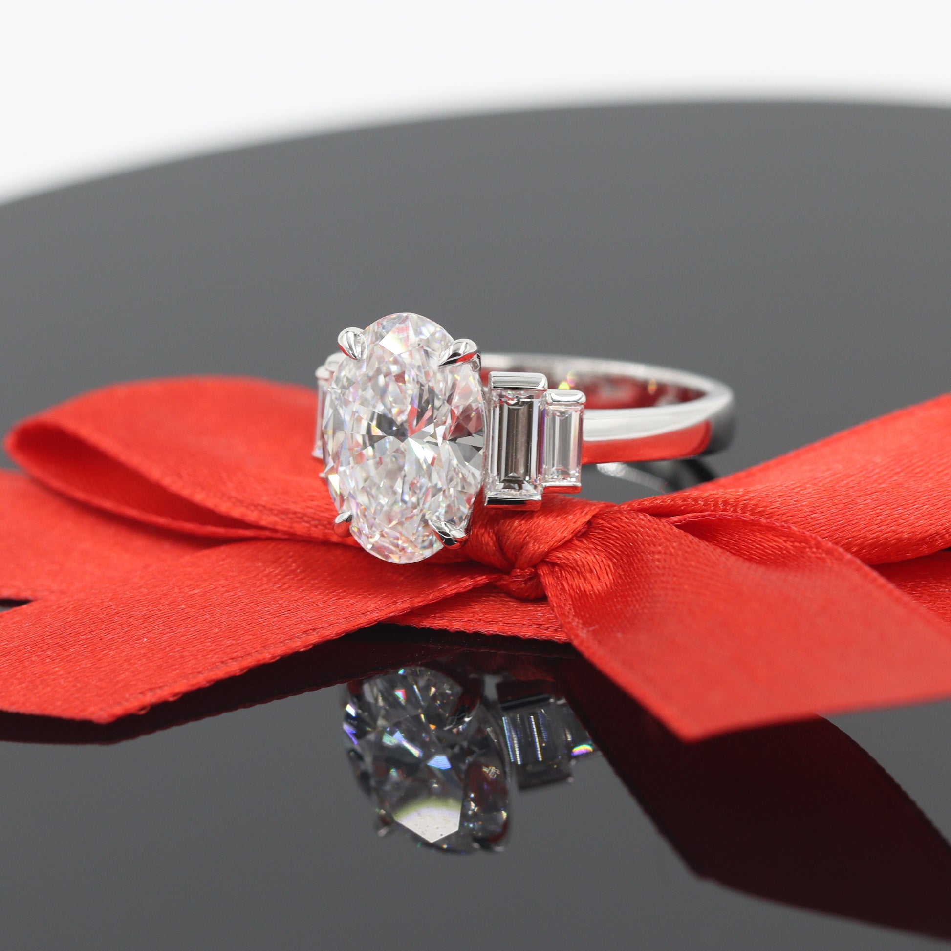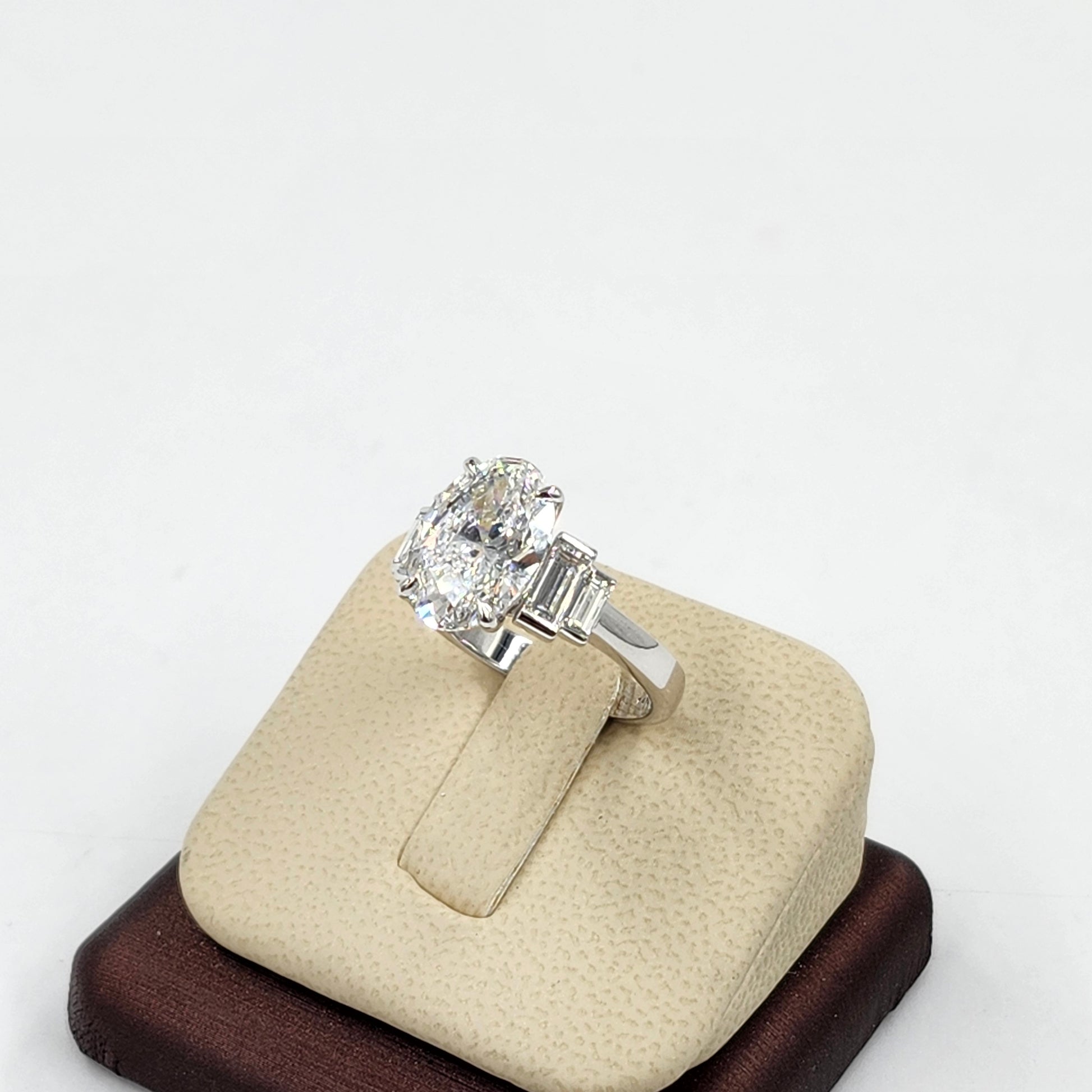 5ct Oval Lab Diamond Engagement Ring - 14K ,18K Gold, Platinum, Lab Grown Oval Diamond, Baguette Diamond Engagement Ring - Anniversary gifts