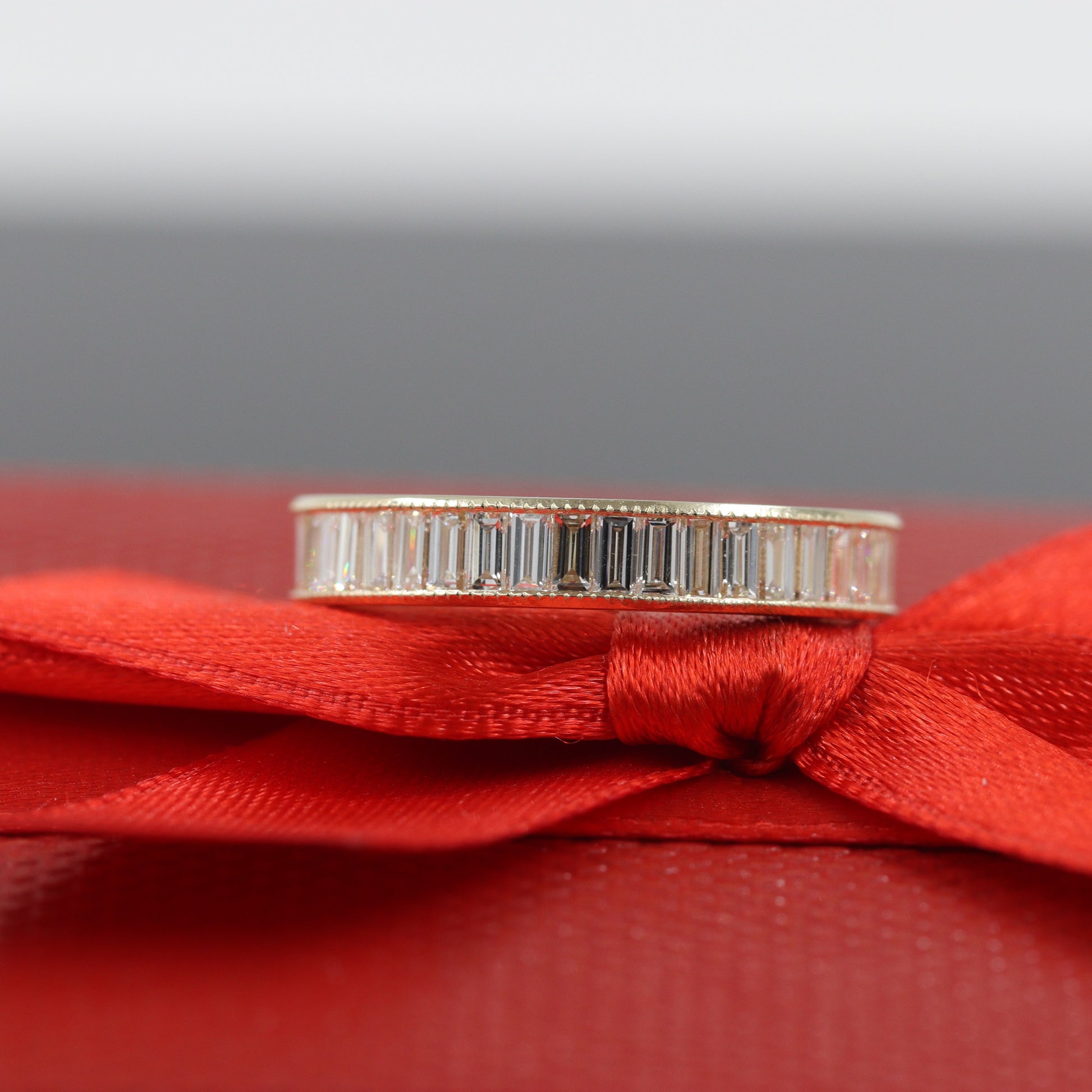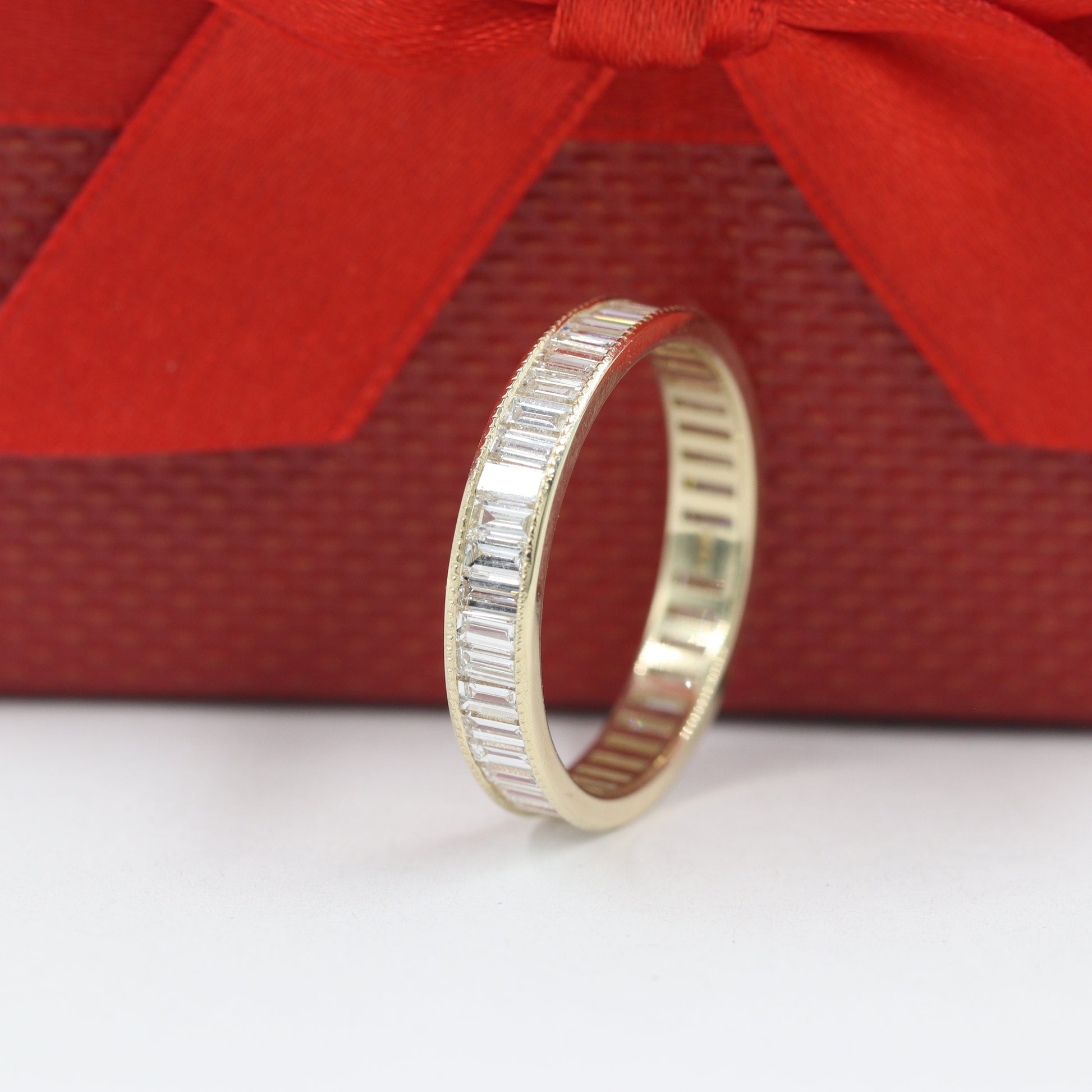 Baguette Lab Grown Diamond wedding Band/Stackable Full Eternity Baguette Diamond Band/ Baguette Diamond Channel Set Ring/Anniversary Gift