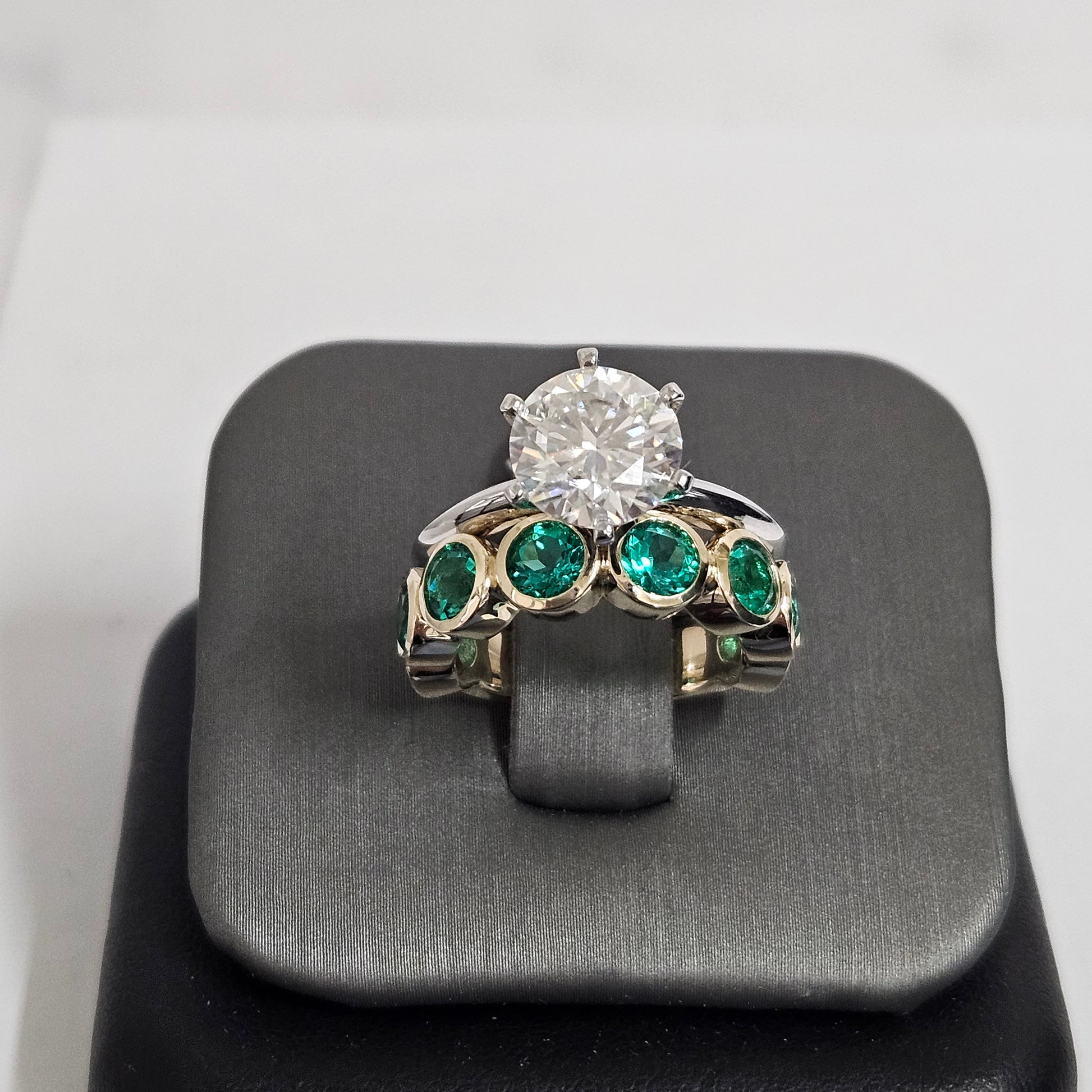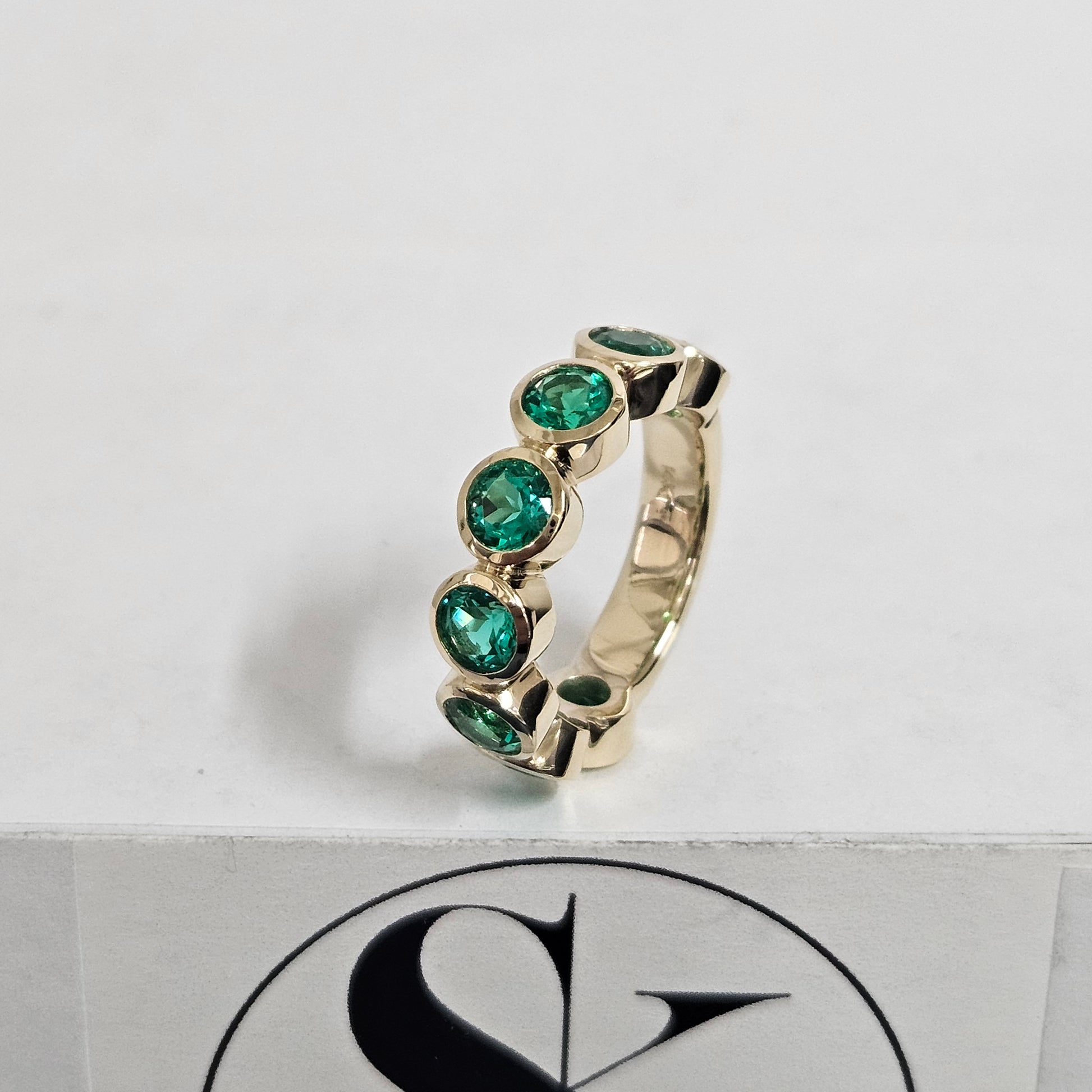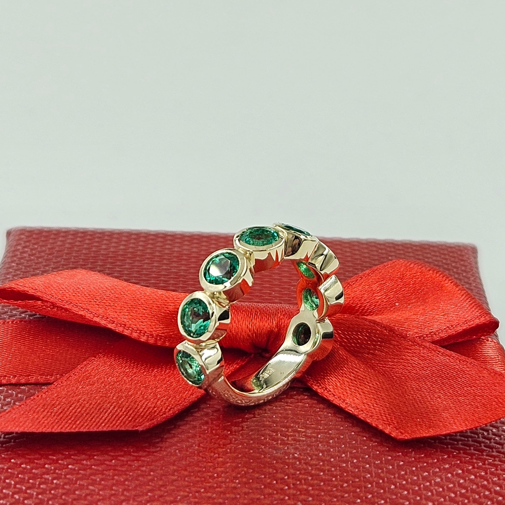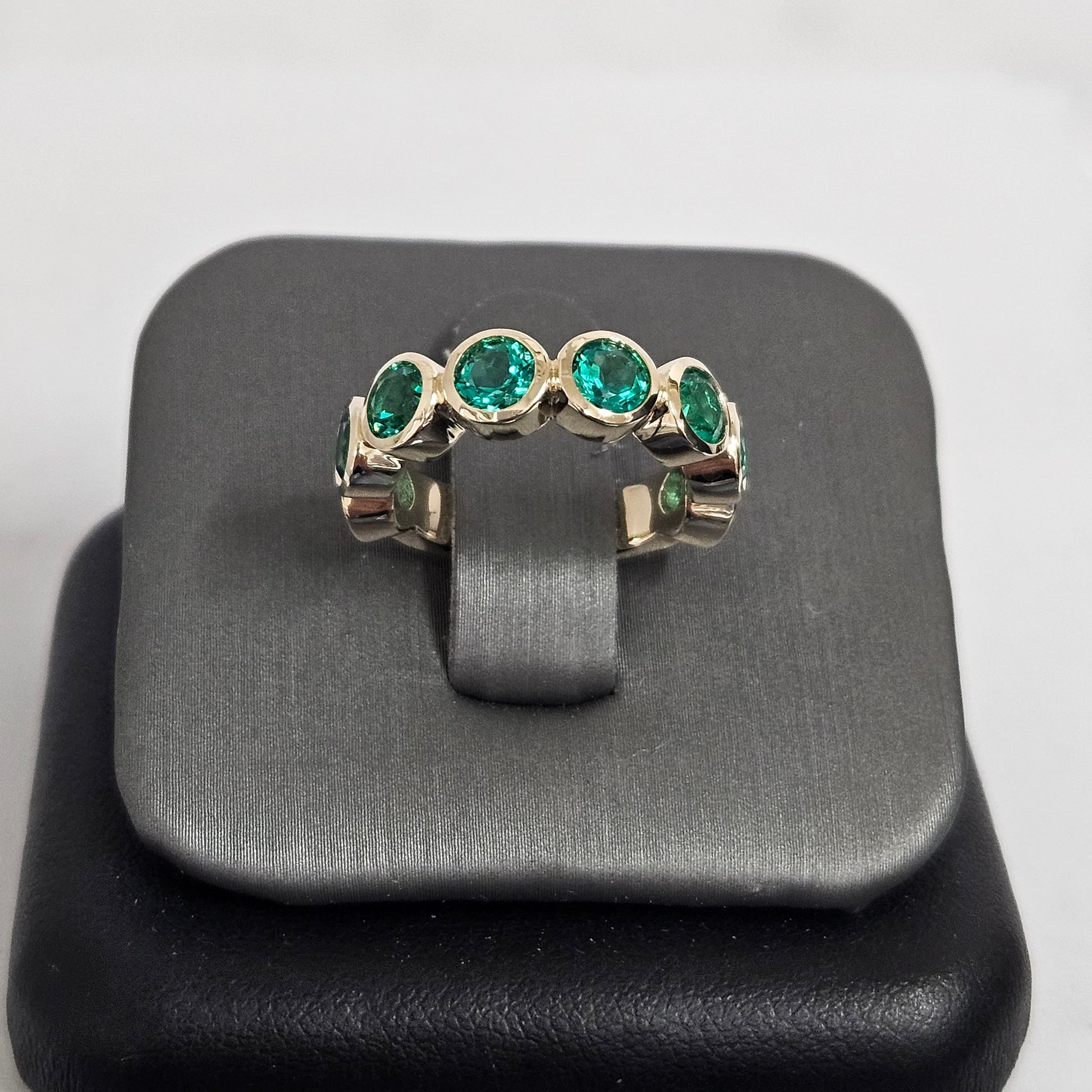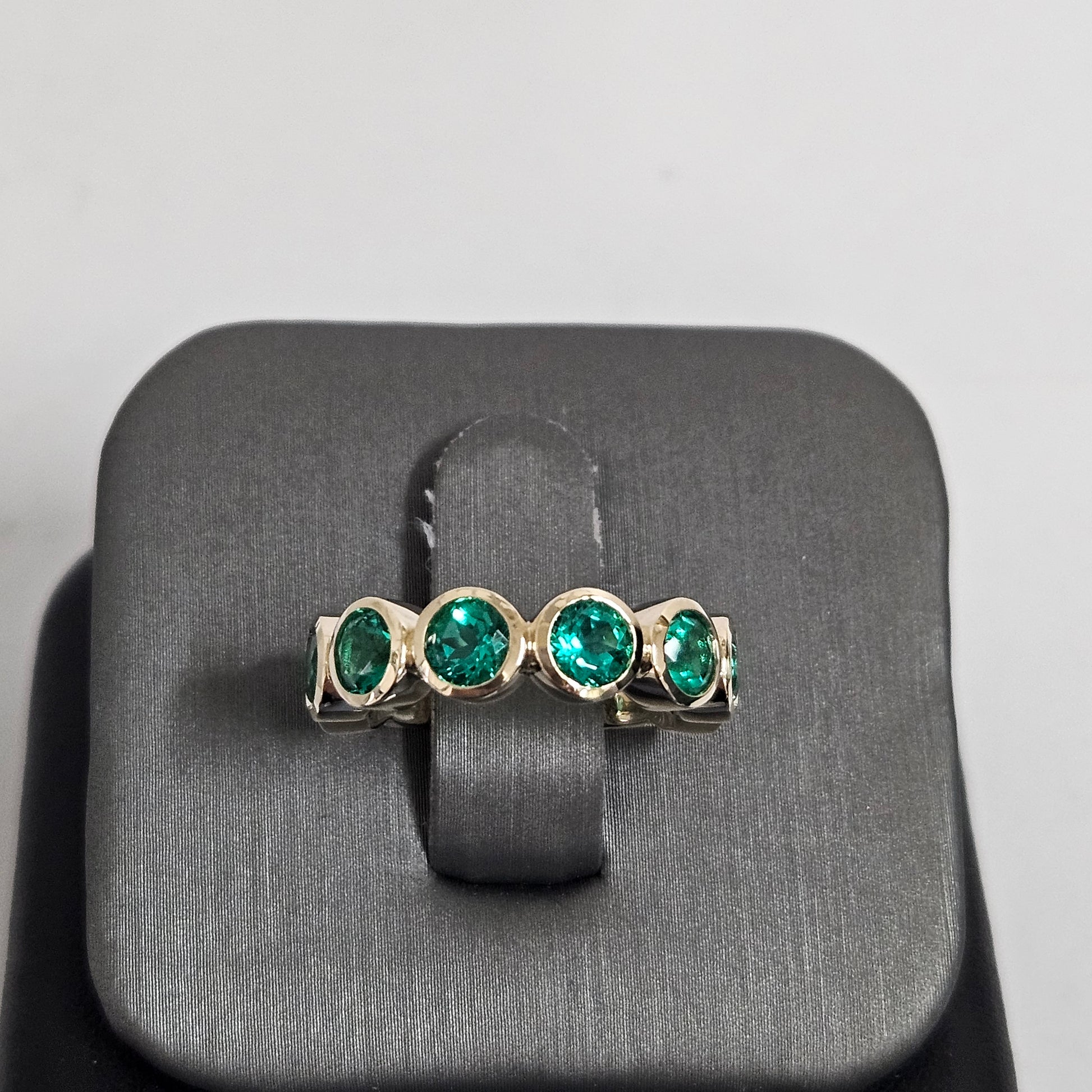 Bezel Setting Round Emerald Band/ Lab Round Emerald Wedding Ring/Anniversary gift Ring/Stackable Band