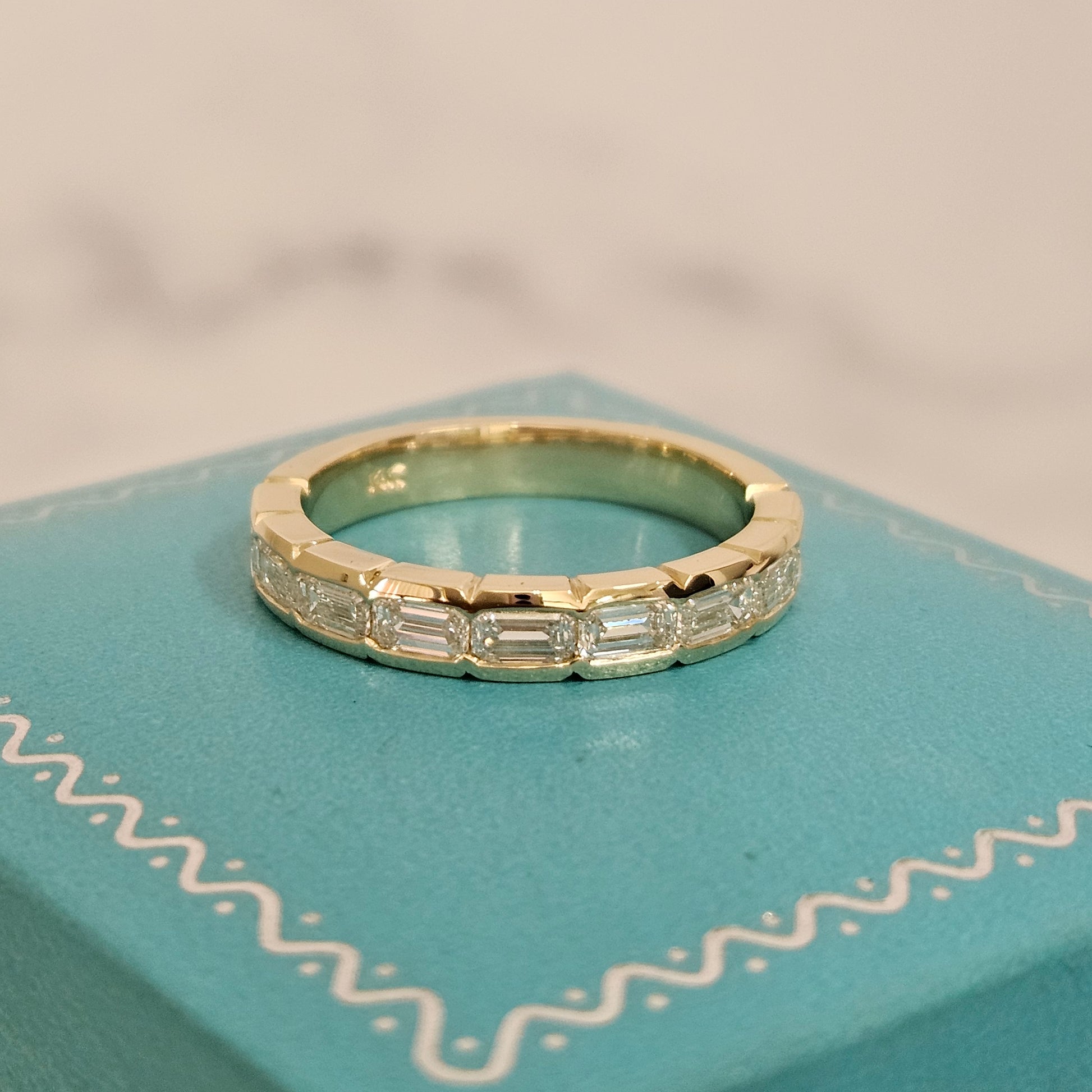 Bezel Setting Emerald Cut Diamond Wedding Band/Emerald Cut Lab Diamond Wedding Ring/Anniversary gift Ring/Stackable Diamond Band