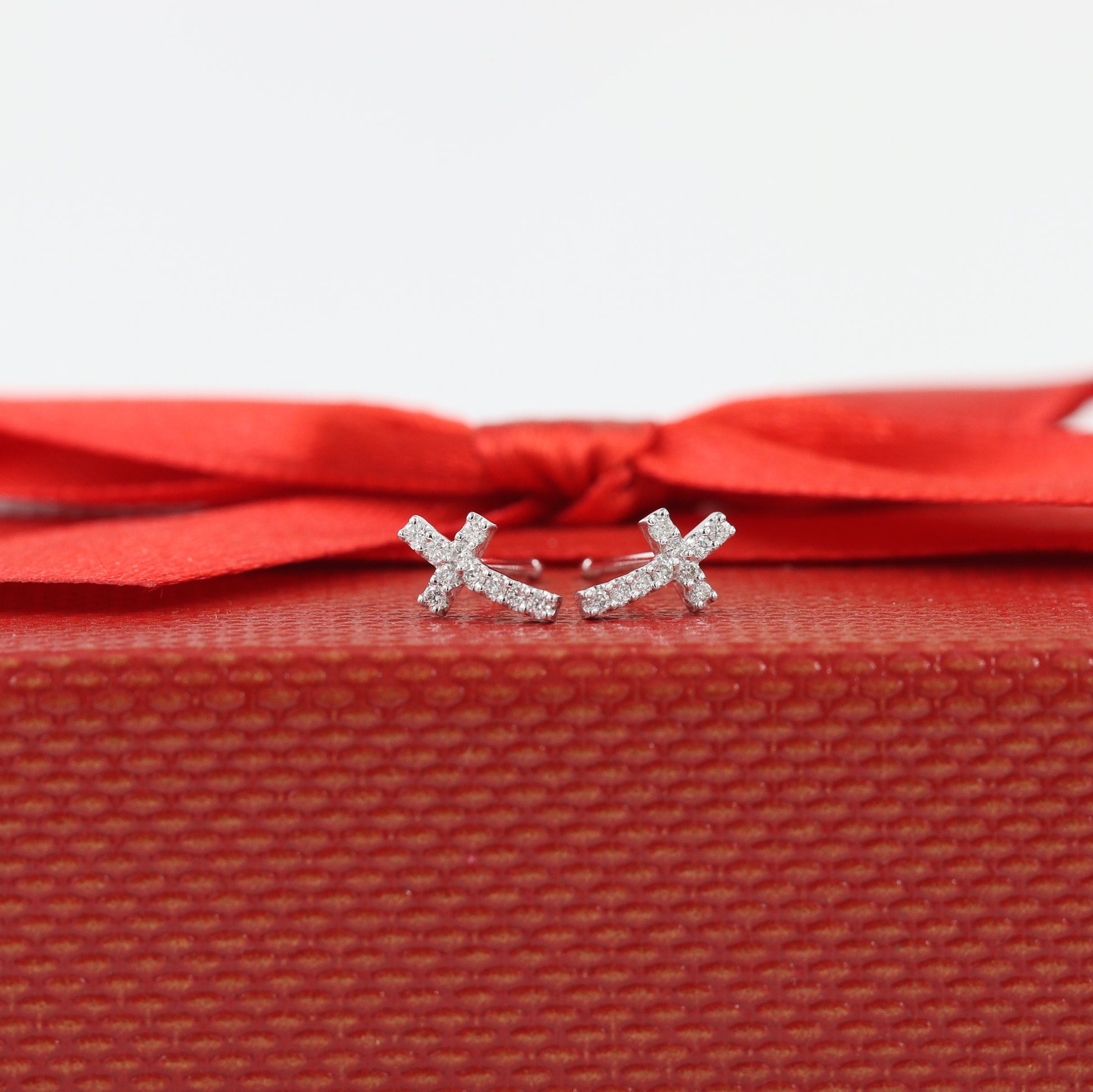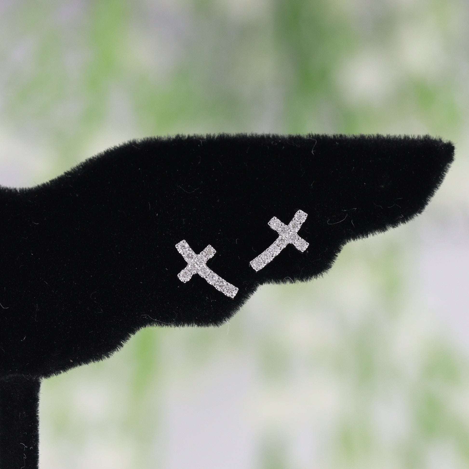 Natural Diamond Small Cross Earrings/14k gold Diamond Cross Earring/Tiny Cross Earring/ Diamond Cross Stud Dainty Earrings/Gifts for her