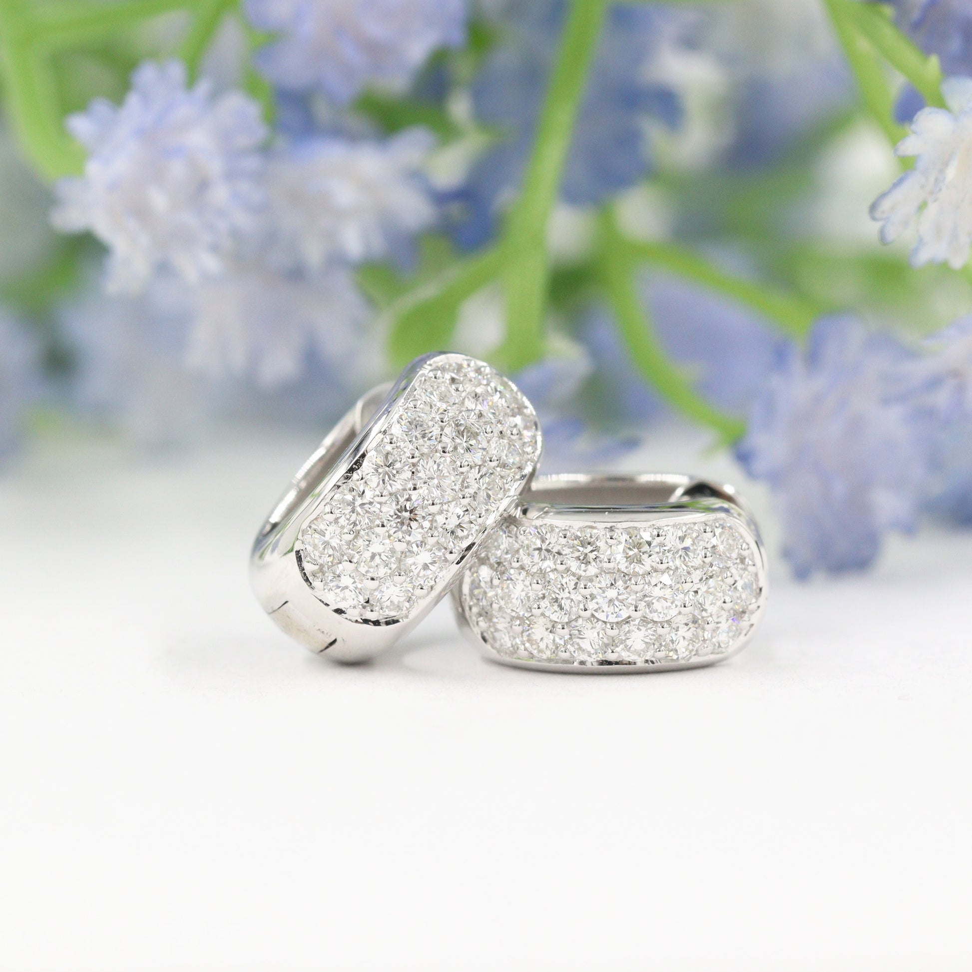 Diameter 13mm Natural Diamond Huggies/ 14k Gold Diamond Huggie Hoops/ 6.5mmWidth Hoop Earrings/ Anniversary gift/Anniversary Gift