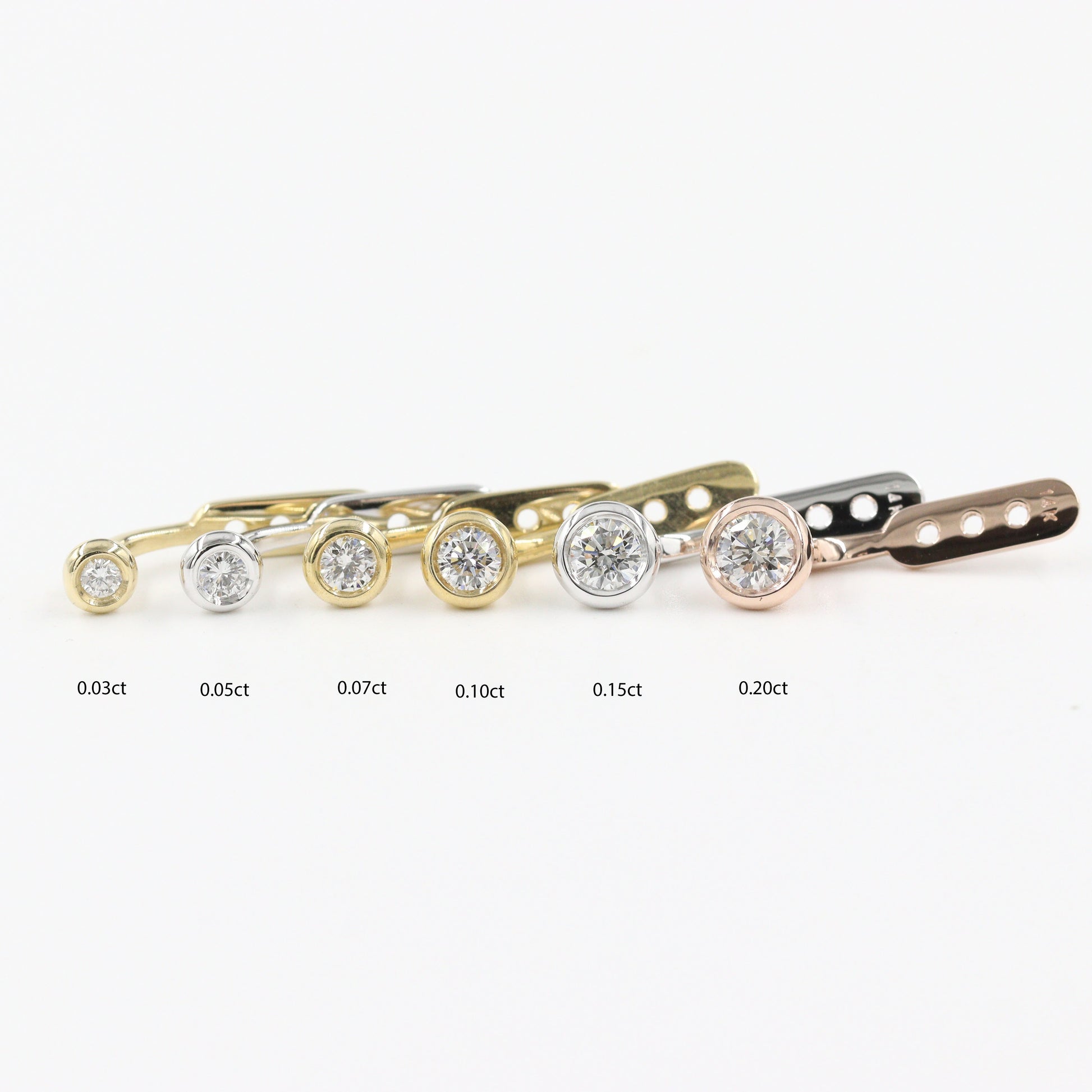 + Diamond Sizes: 3.4mm(0.15ct) Bezel Size:5.0mm