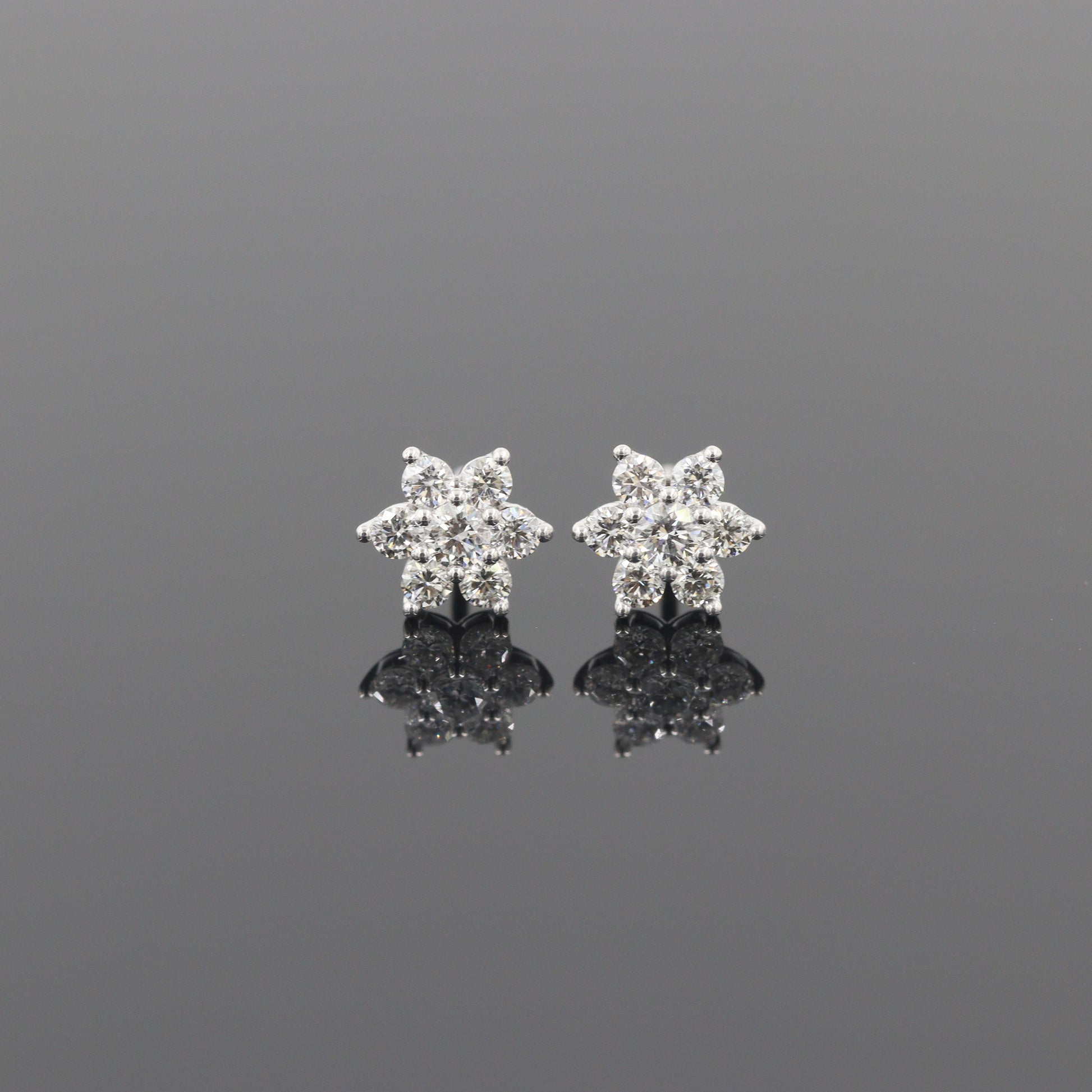 Natural Diamond Stud Snowflake Earrings / 14K gold Flower Stud Earring / Diamond Earrings / Flower Stud Earring/ Anniversary gift