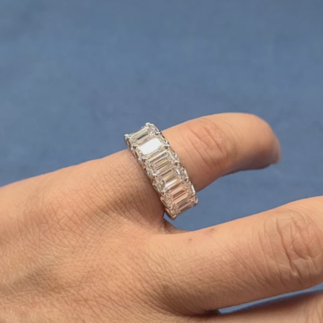 12ct Full Eternity luxury Emerald Cut Diamond Width 9mm Ring / Lab Grown Emerald Cut Diamond Wedding Ring / Anniversary gift
