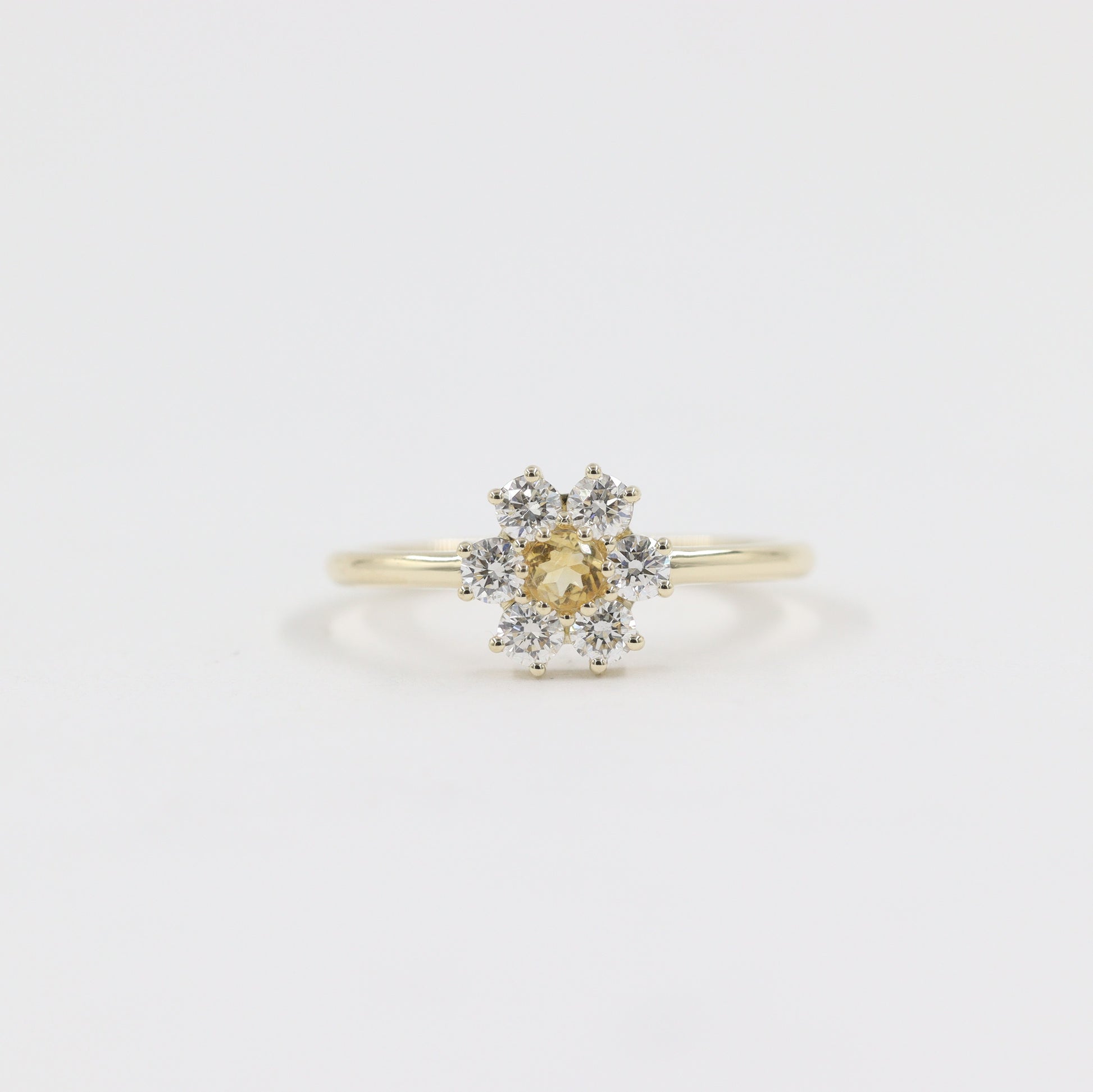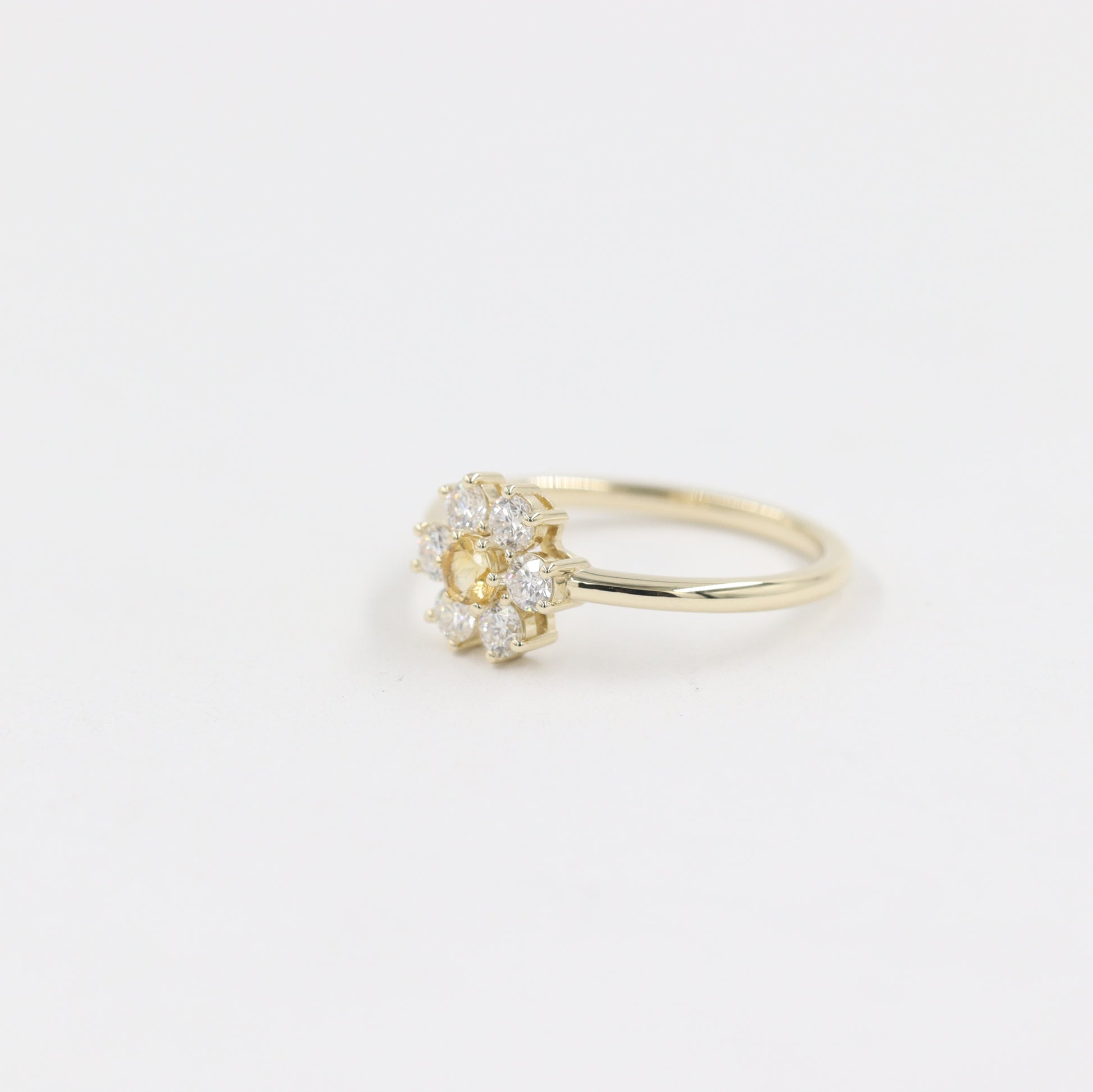 Flower Natural Diamond Ring: Natural Yellow Sapphire, 14K,18K Gold Anniversary Ring