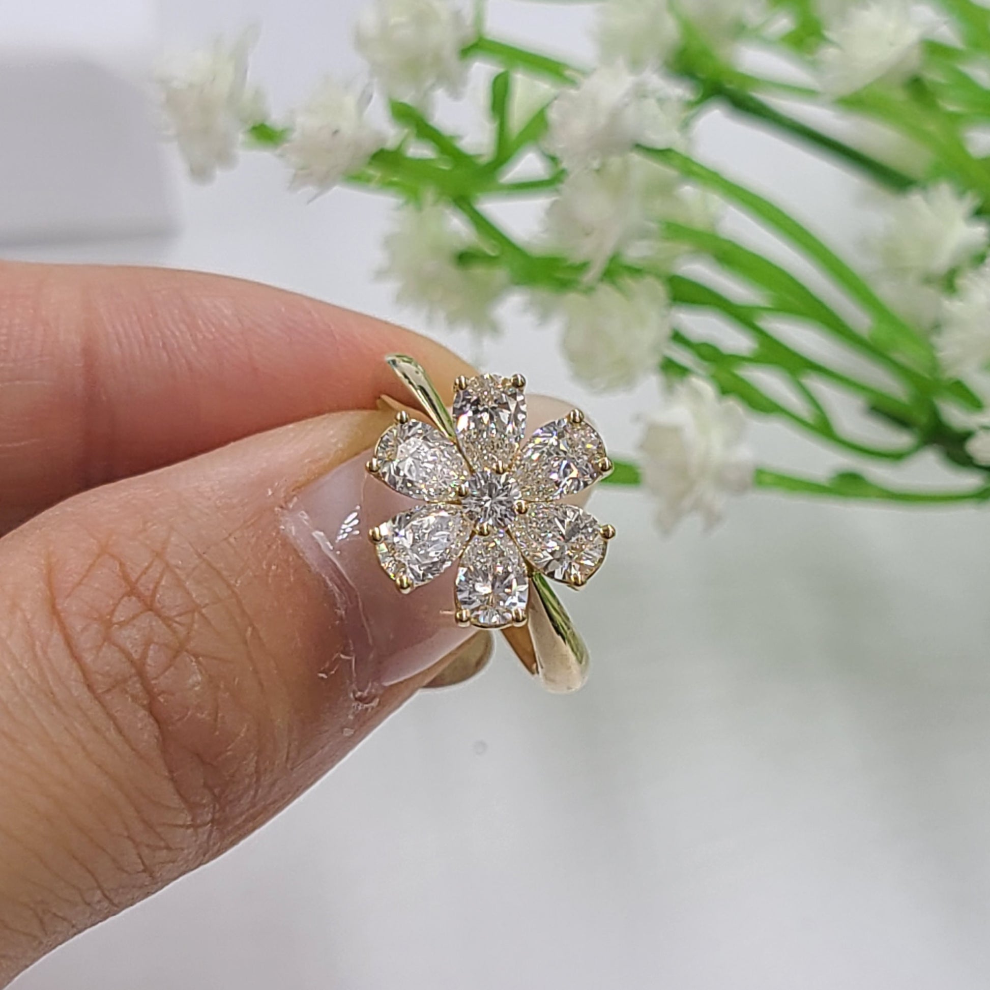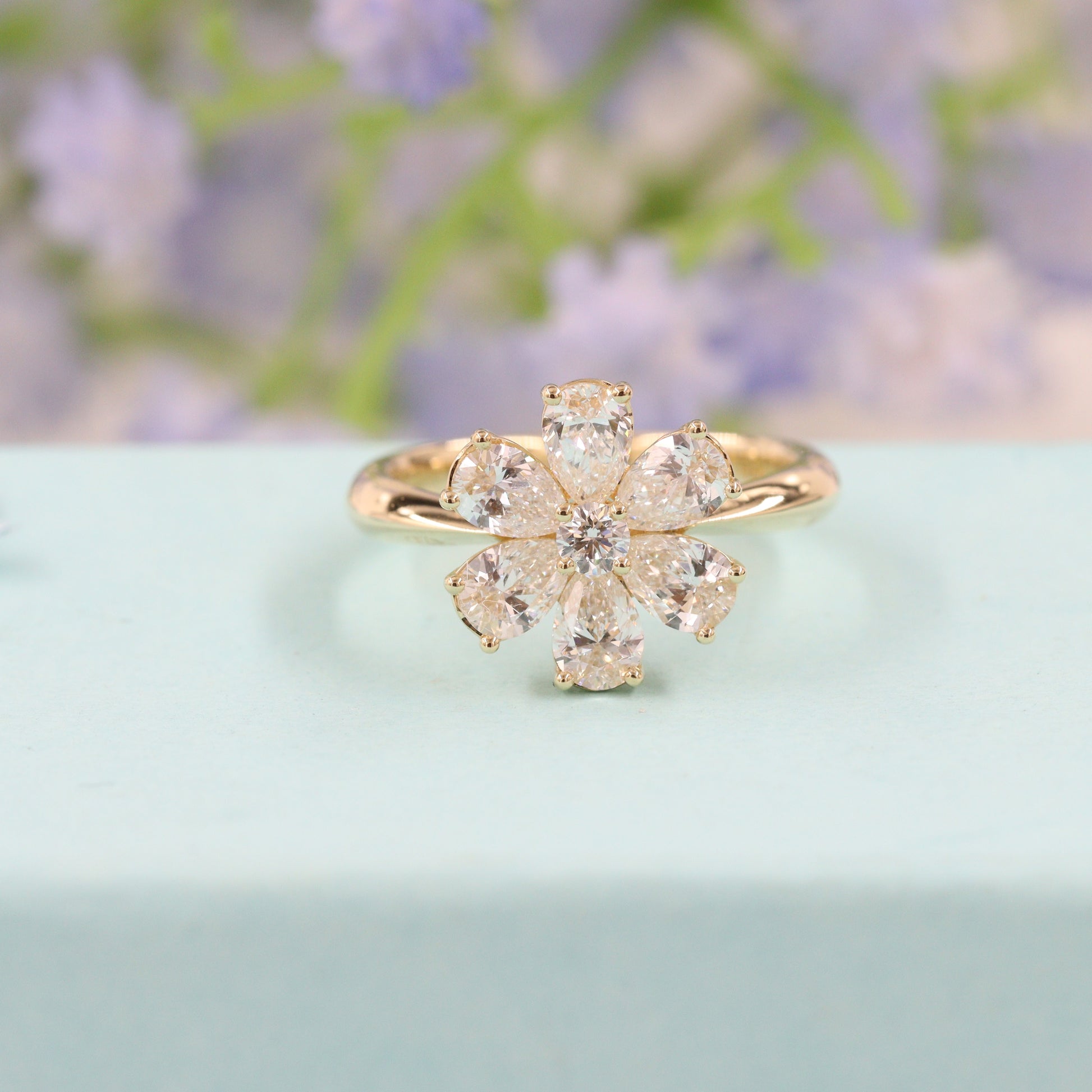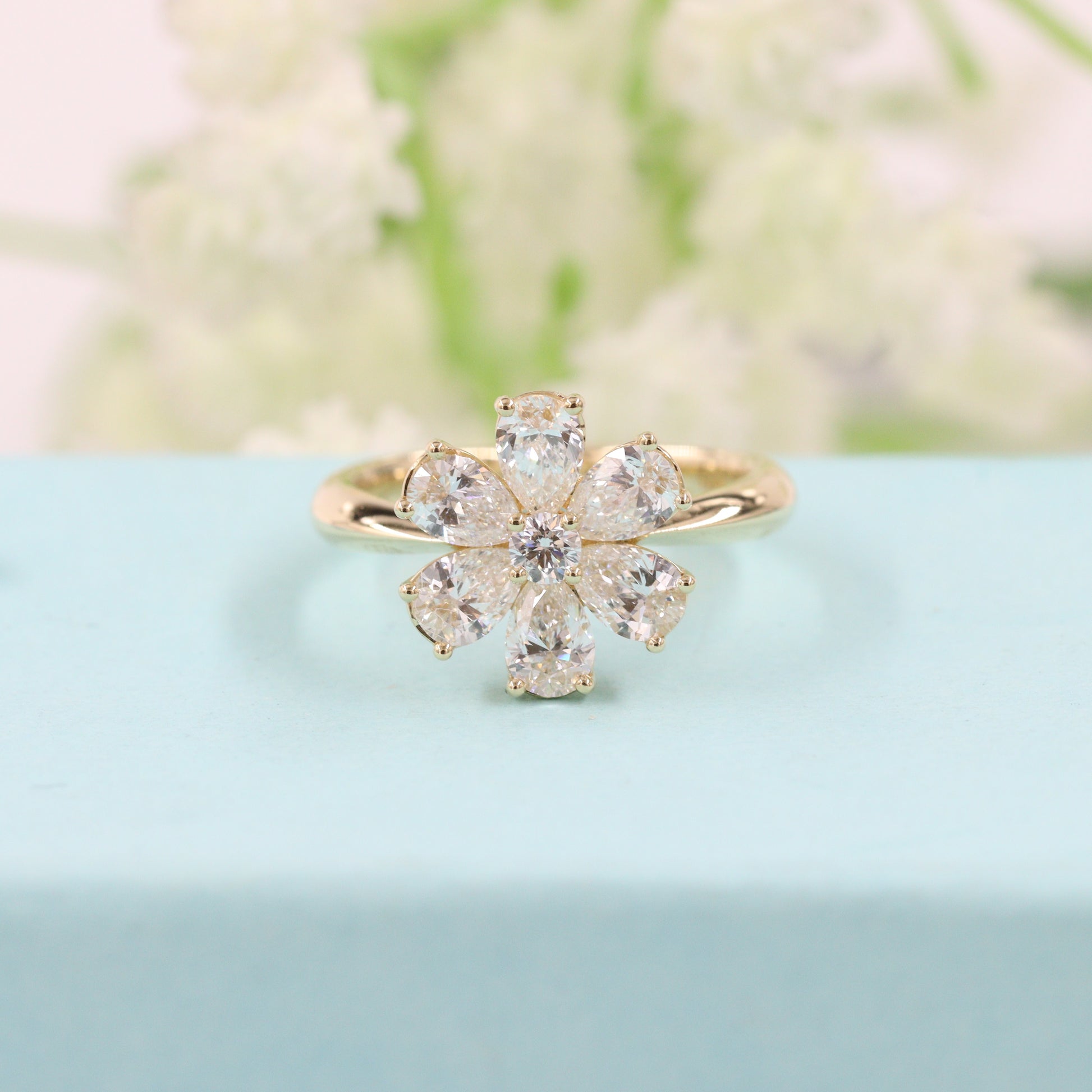 Flower 1.6ct Diamond Anniversary Ring/Pear Shape Diamond flower Ring/ Diamond flower Ring/Unique Engagement Ring/Anniversary Ring