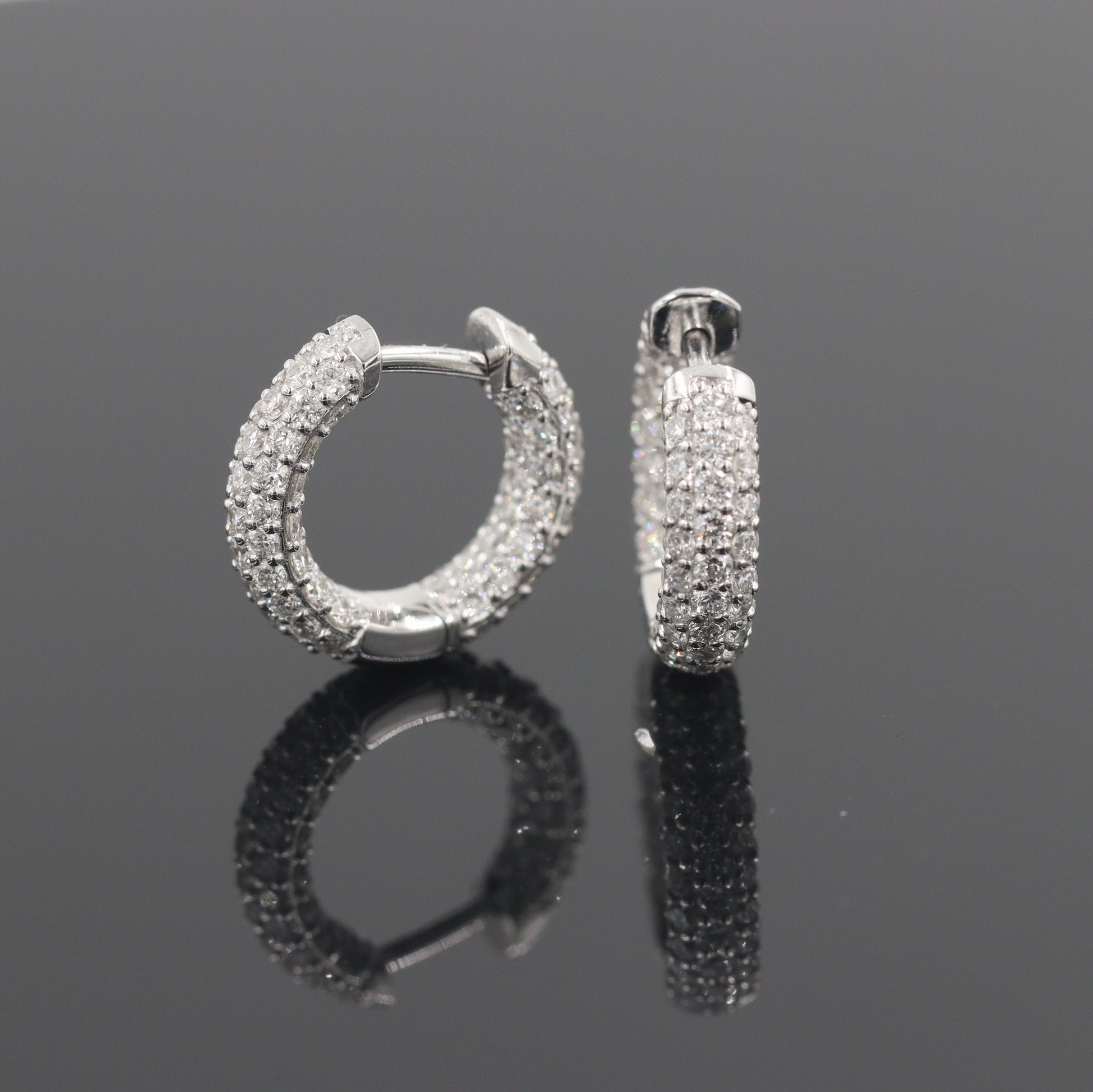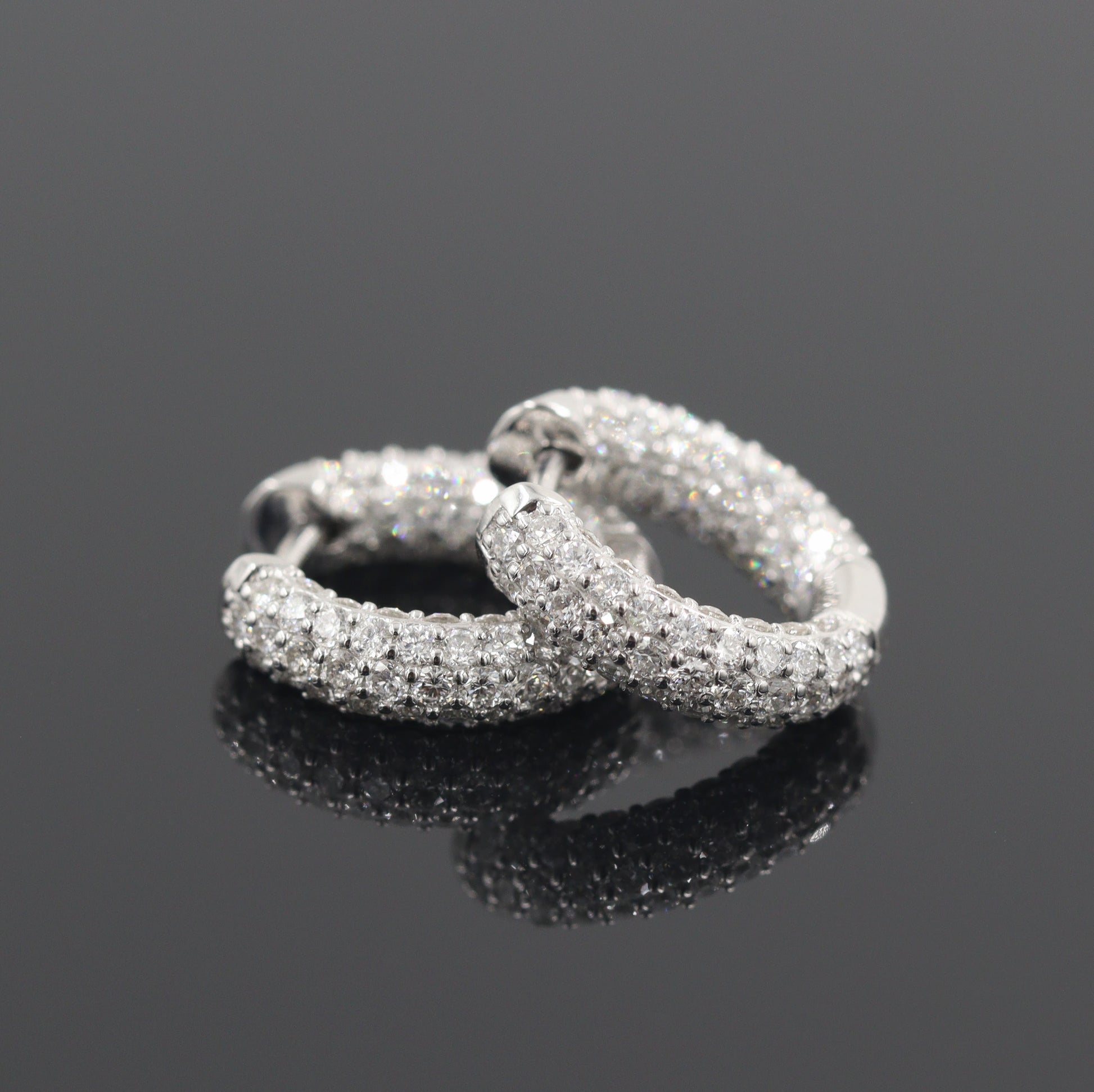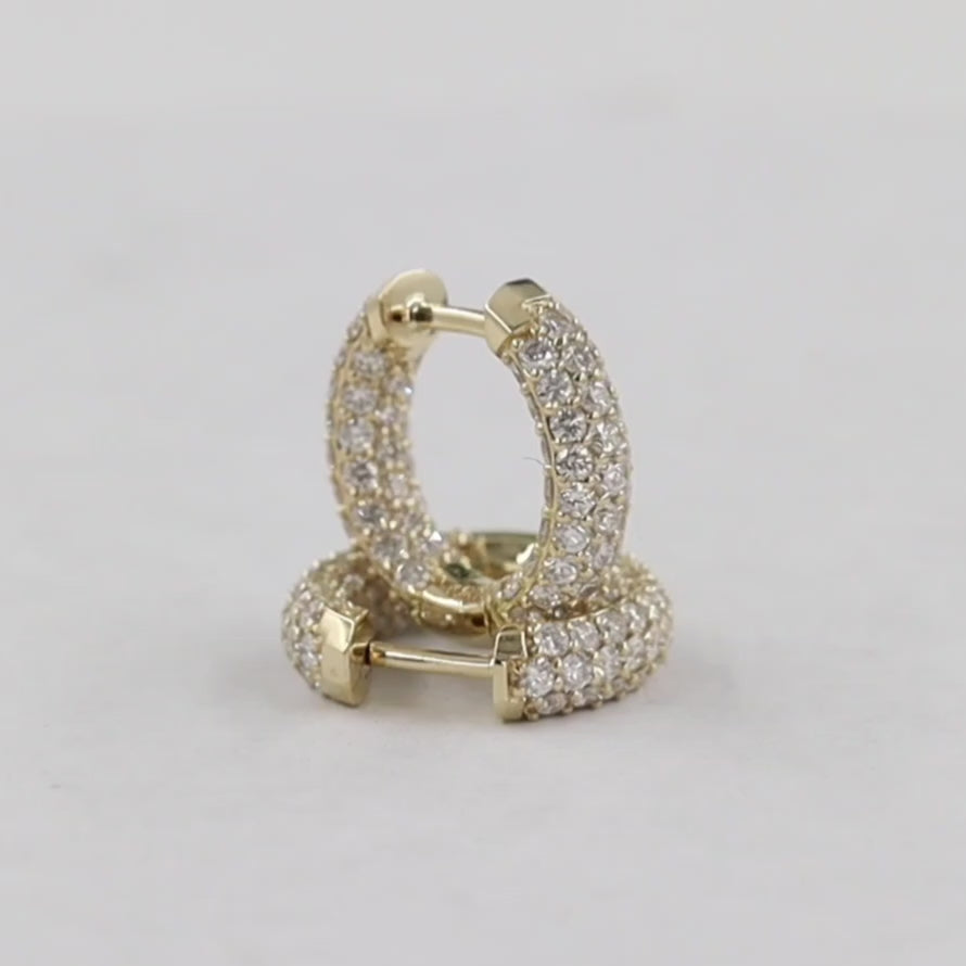 6 Row Full Natural Diamond Hoop 1.7ct Dome Huggies/Men's & Women's Diamond Hoop Earrings/14K-18K Diamond 13mm Hoop Earrings/Anniversary gift