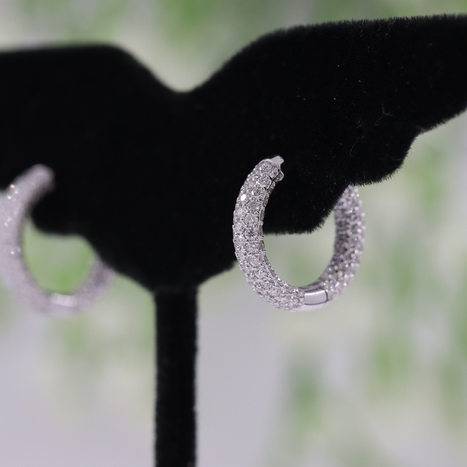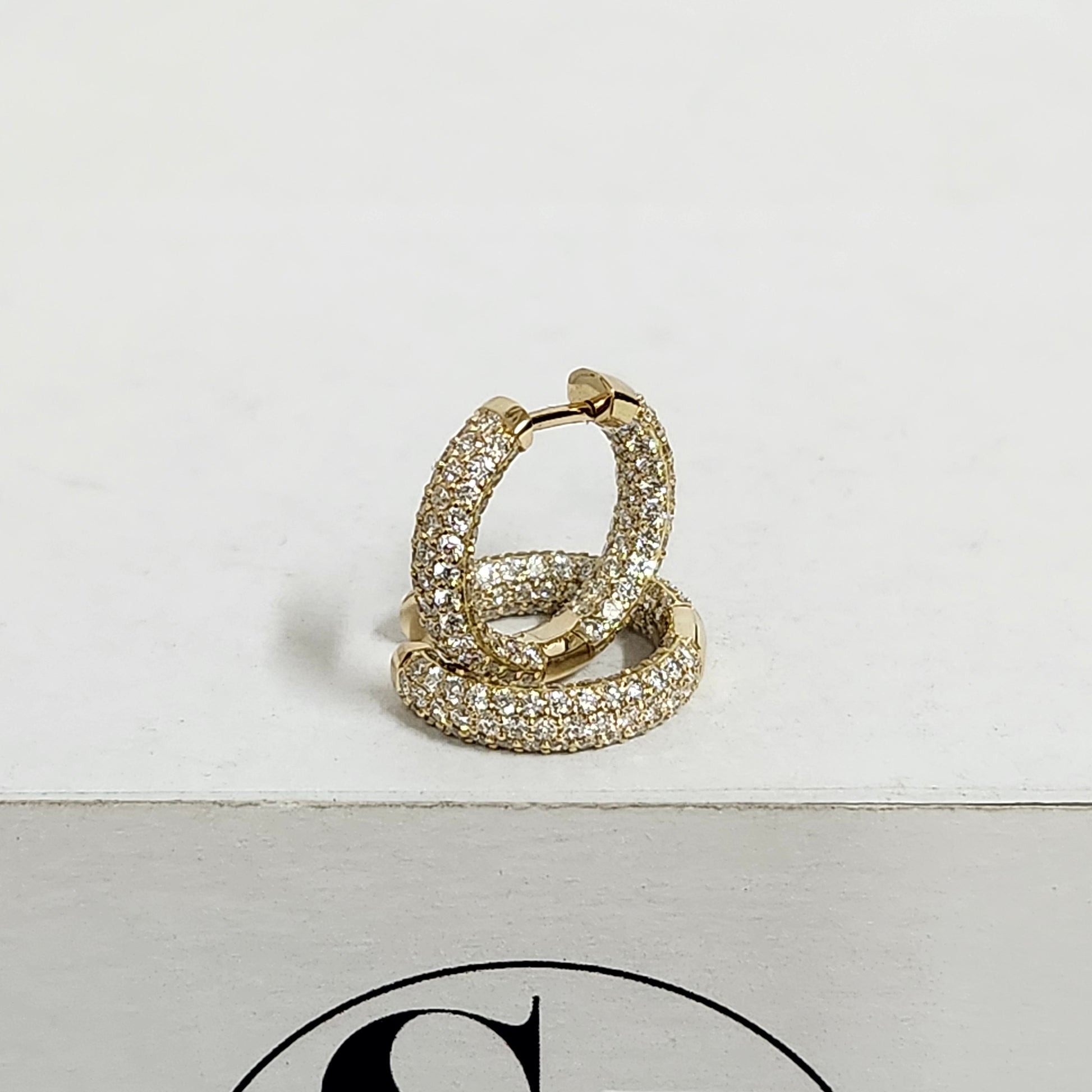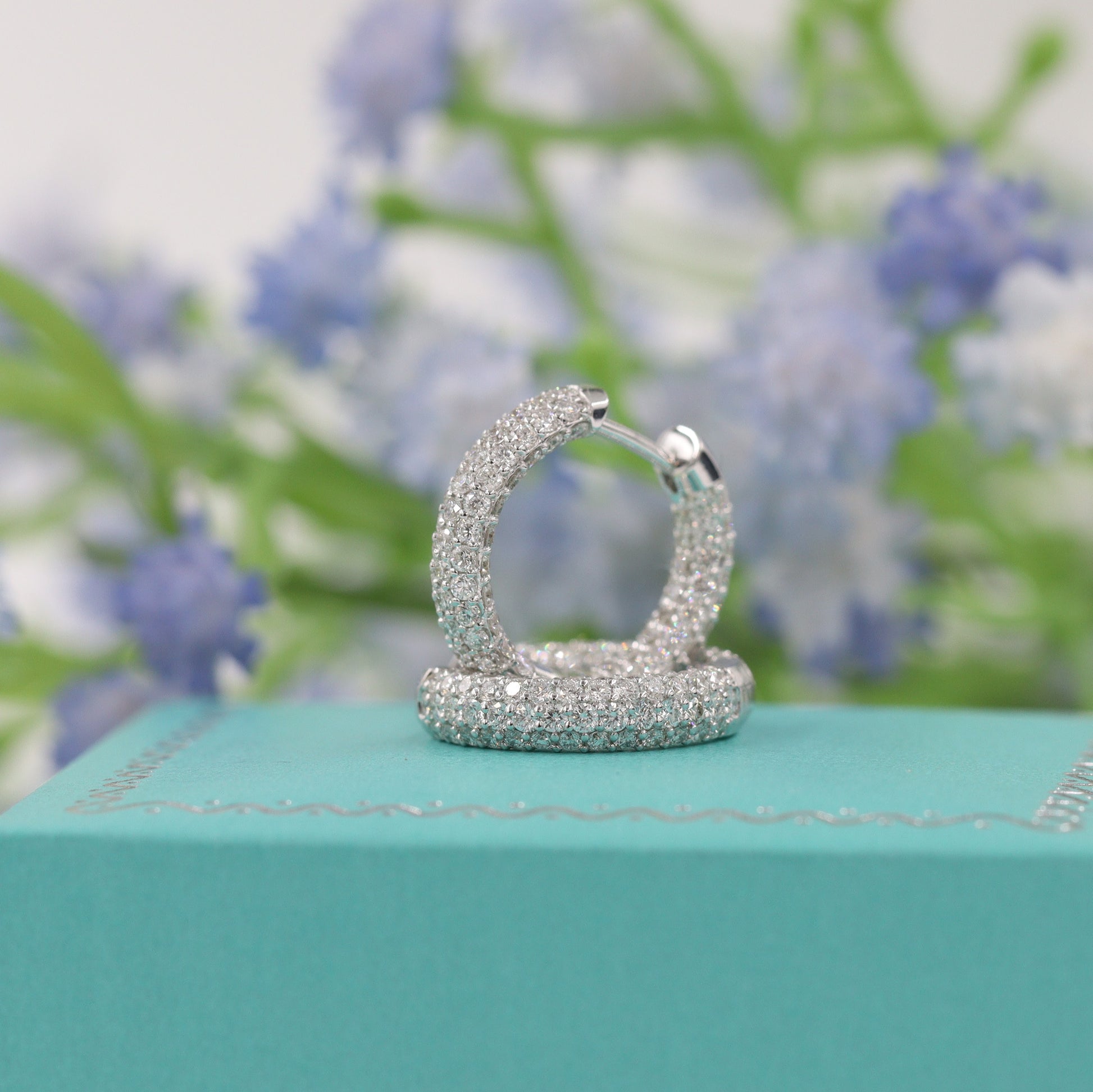 6 Row Full Natural Diamond Hoop 2.45ct Dome Huggies/Men's & Women's Hoop Earrings/14K-18K Diamond 15.5mm Hoop Earrings/Anniversary gift