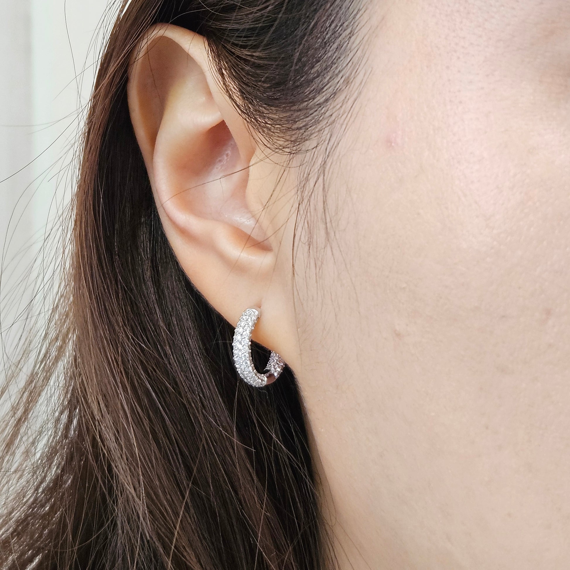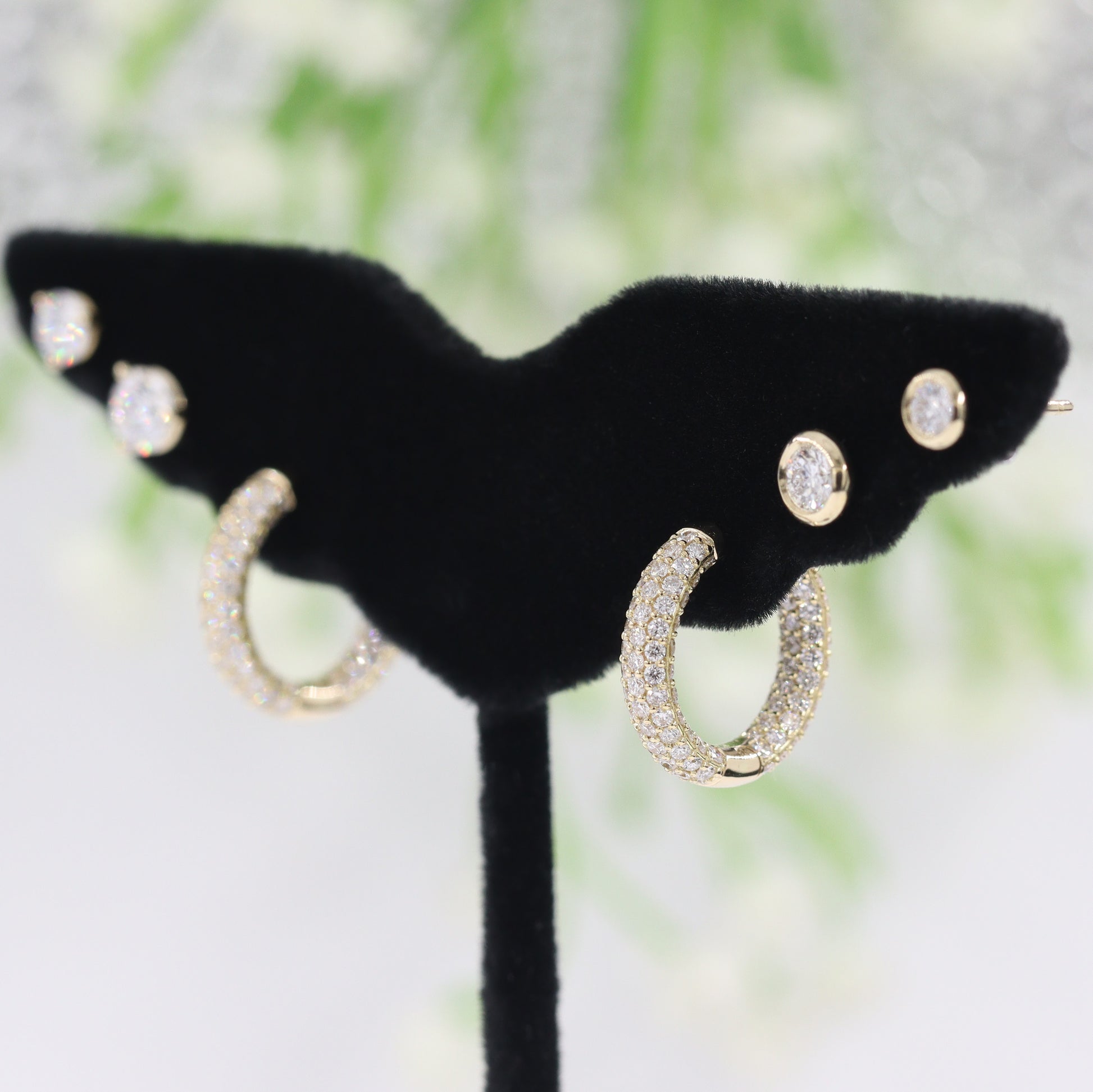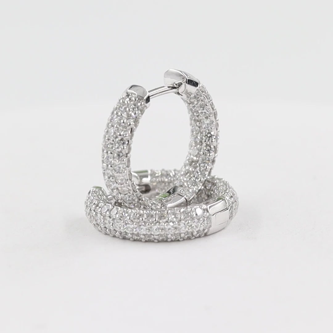 6 Row Full Natural Diamond Hoop 2.45ct Dome Huggies/Men's & Women's Hoop Earrings/14K-18K Diamond 15.5mm Hoop Earrings/Anniversary gift