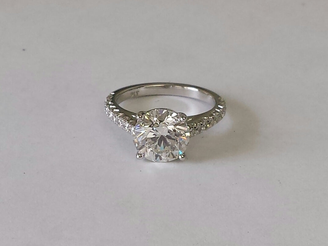 Half French Pave 2ct Round Engagement Ring /Platinum,14K,18K gold IGI 2ct Center Lab diamond Amazing Brilliant Ring /Anniversary gift