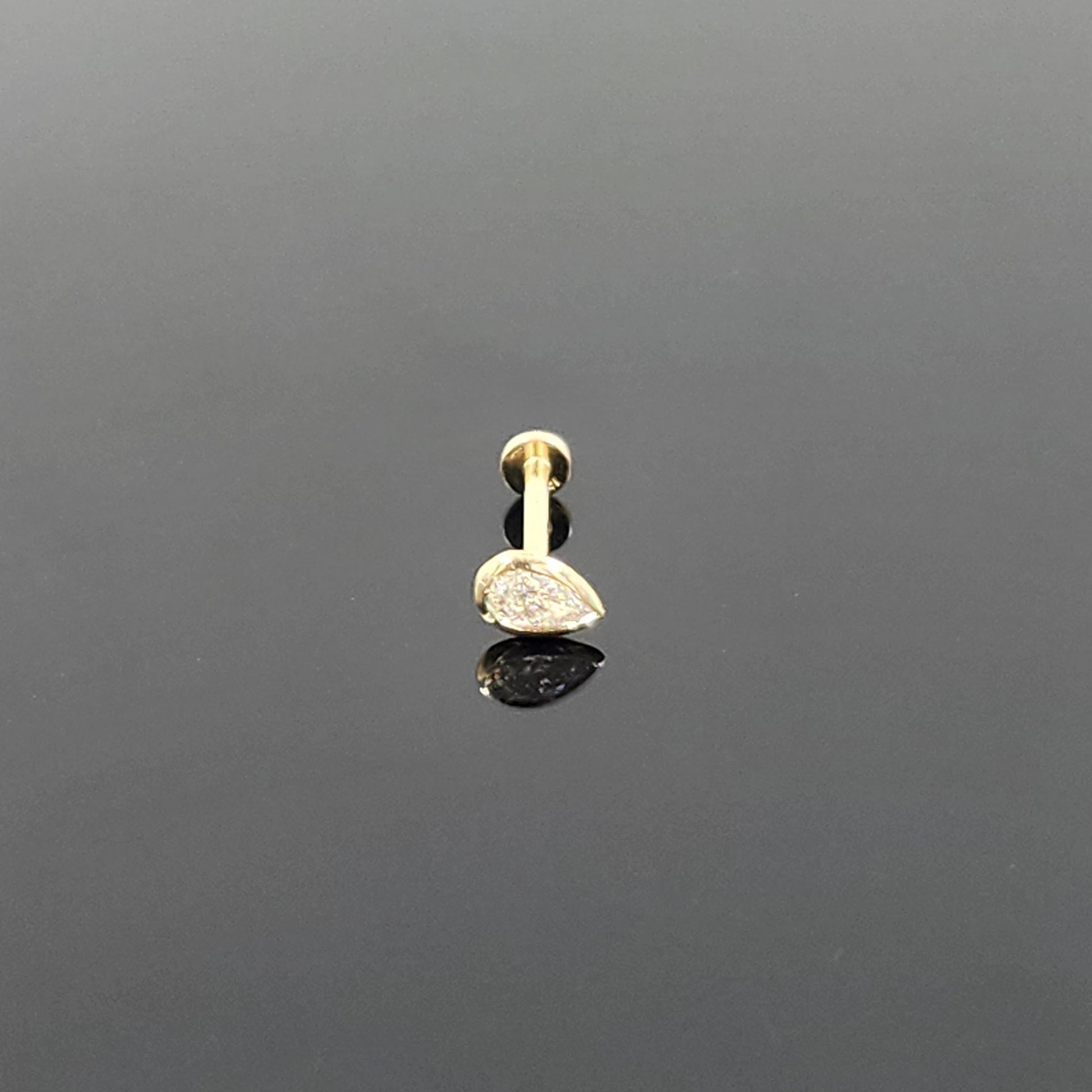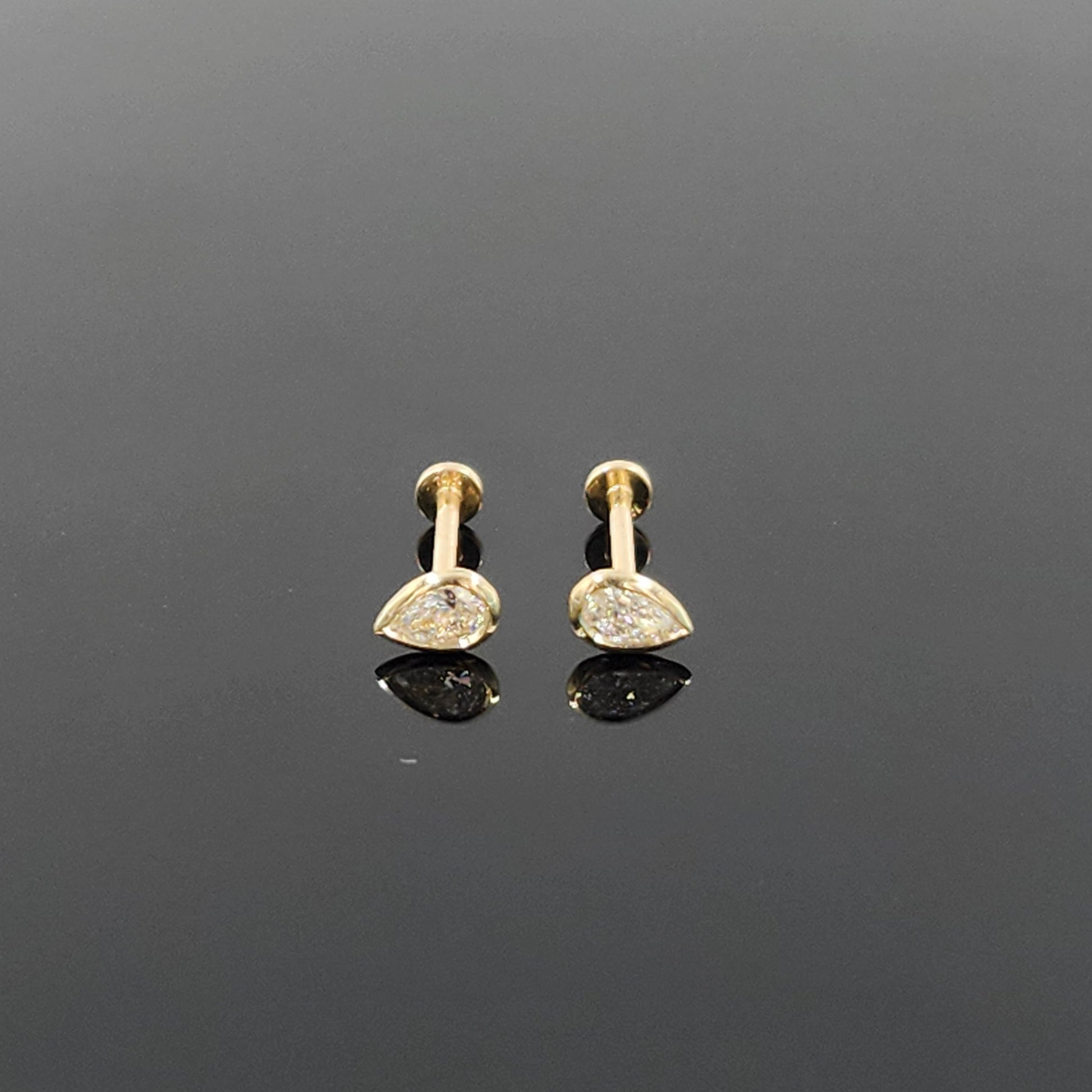 Natural Pear Shape Diamond Stud Piercing/ 14K yellow gold Pear Shape Diamond Solitaire Stud Earrings /Pear Stud Earrings Flat Backing