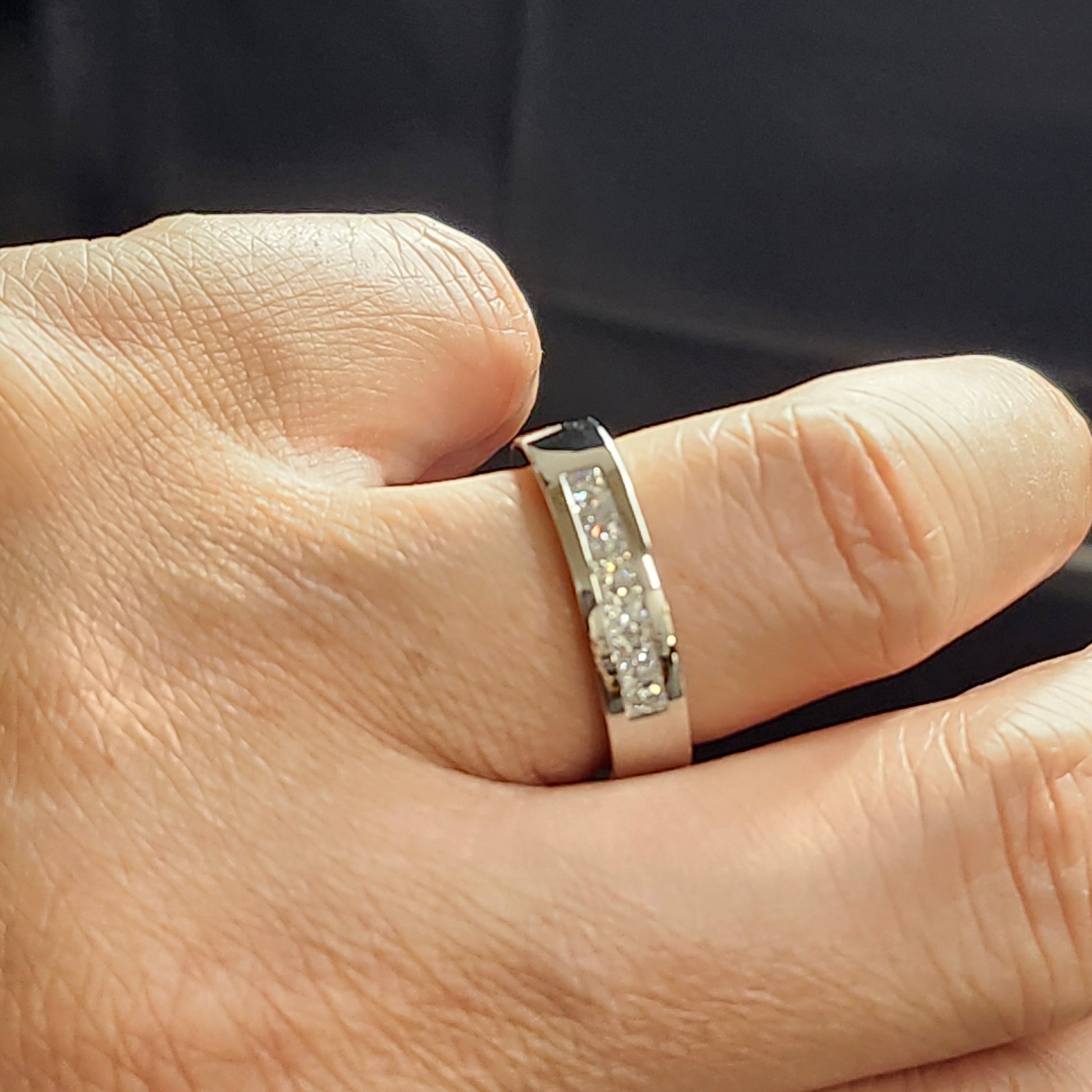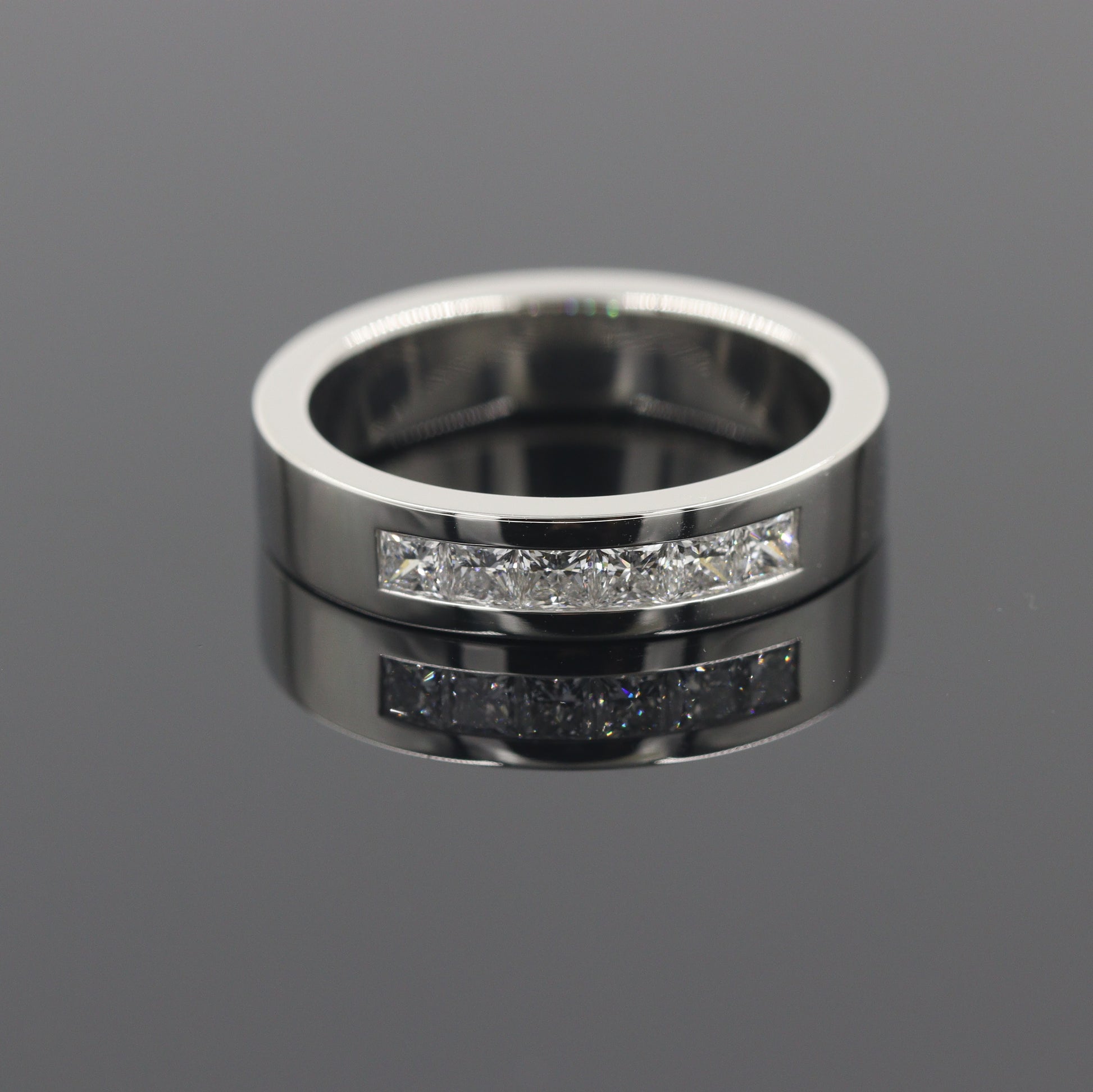 Handmade Princess Cut Lab Grown Diamond Man's Ring - 5mm Platinum Wedding Ring - Anniversary gift