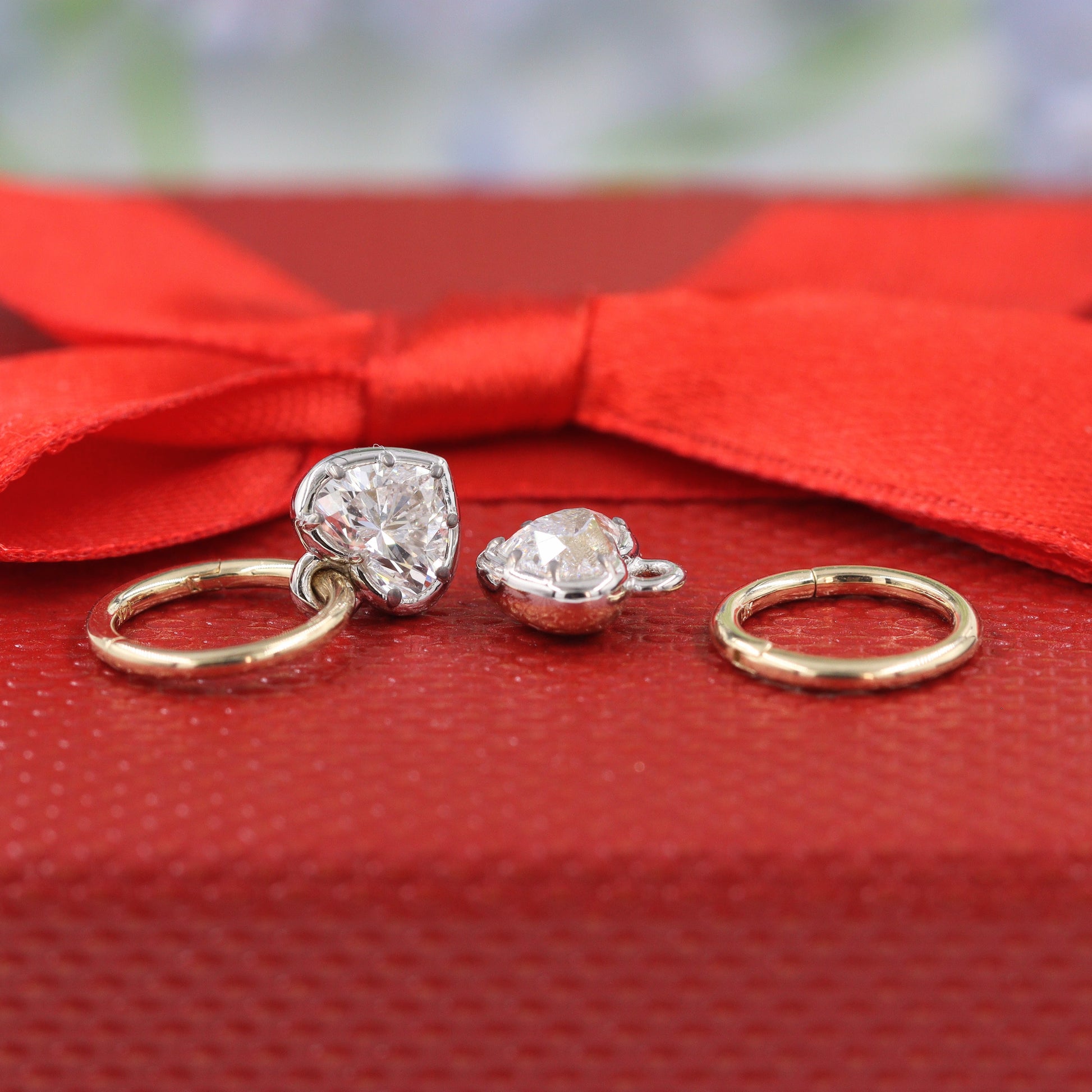 Heart Shape Diamond Hoop Earrings with Dangle Charm/Chunky 1ct Diamond Hoop Earrings/Lab Grown Diamond Hoop Earrings /Anniversary gift