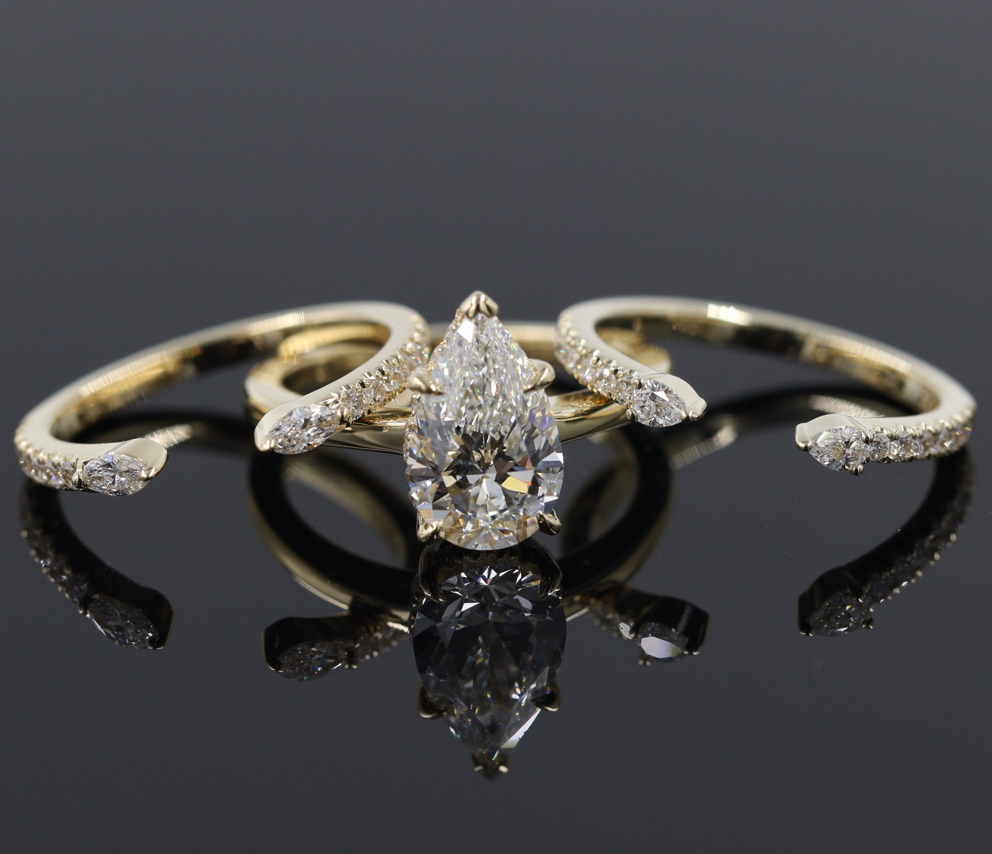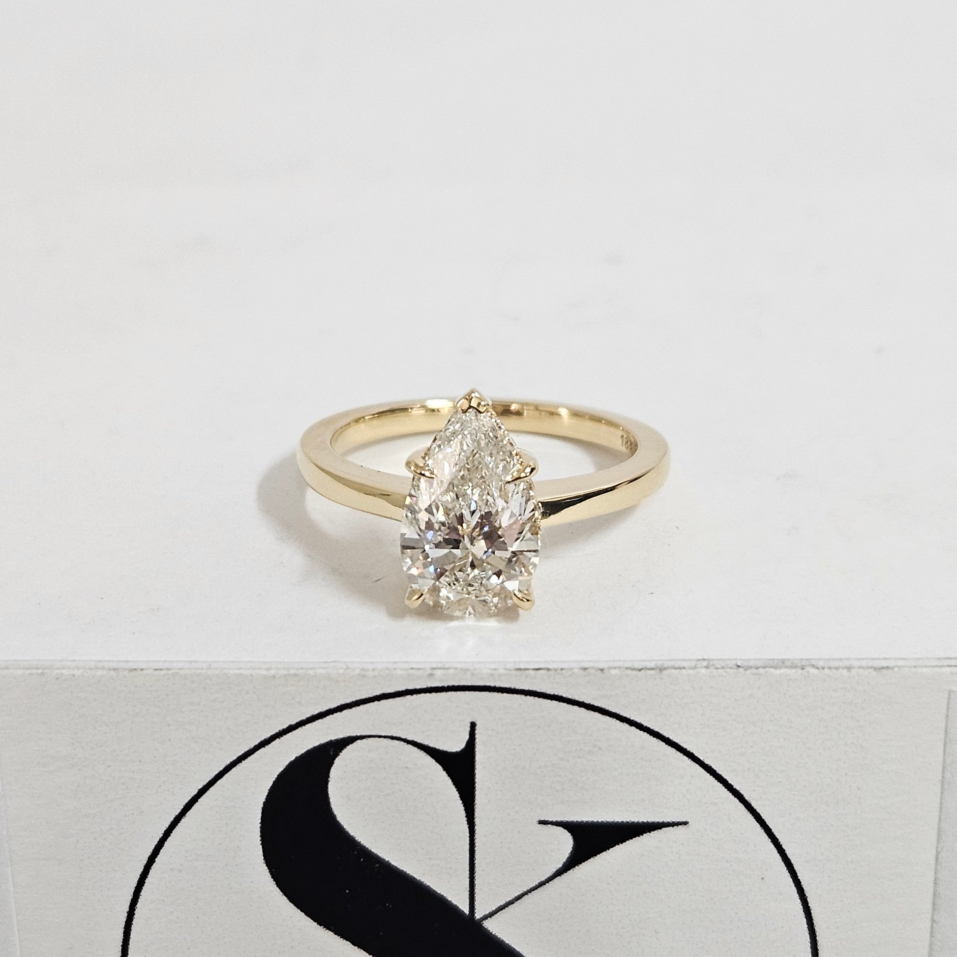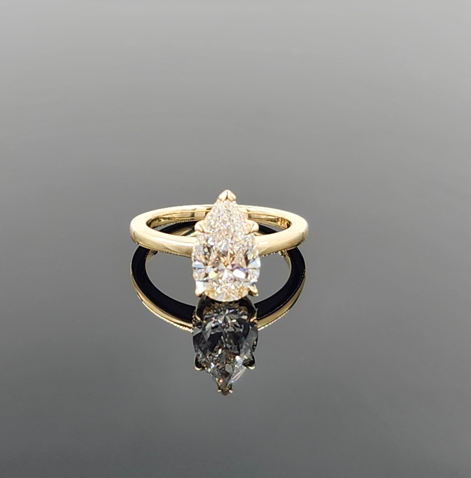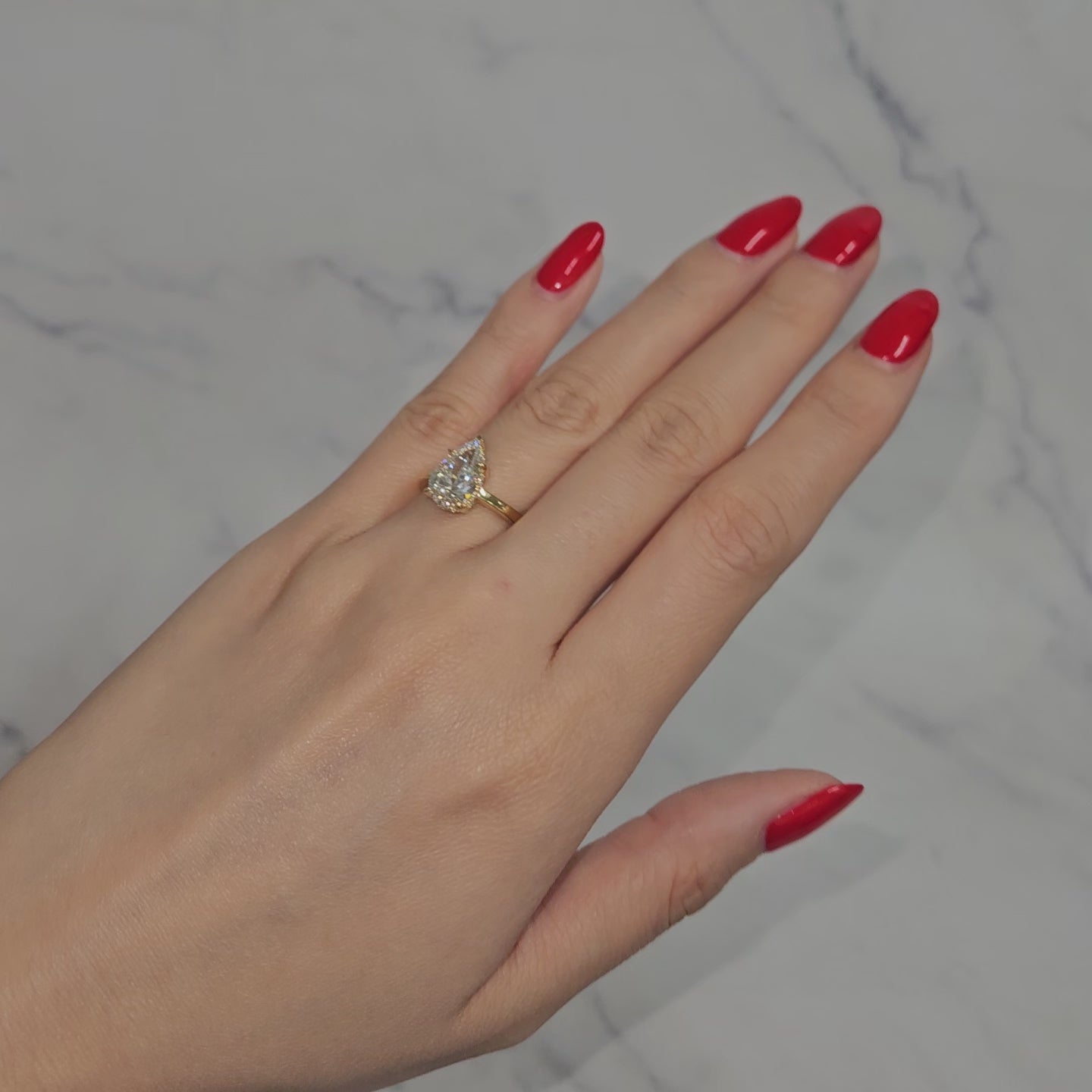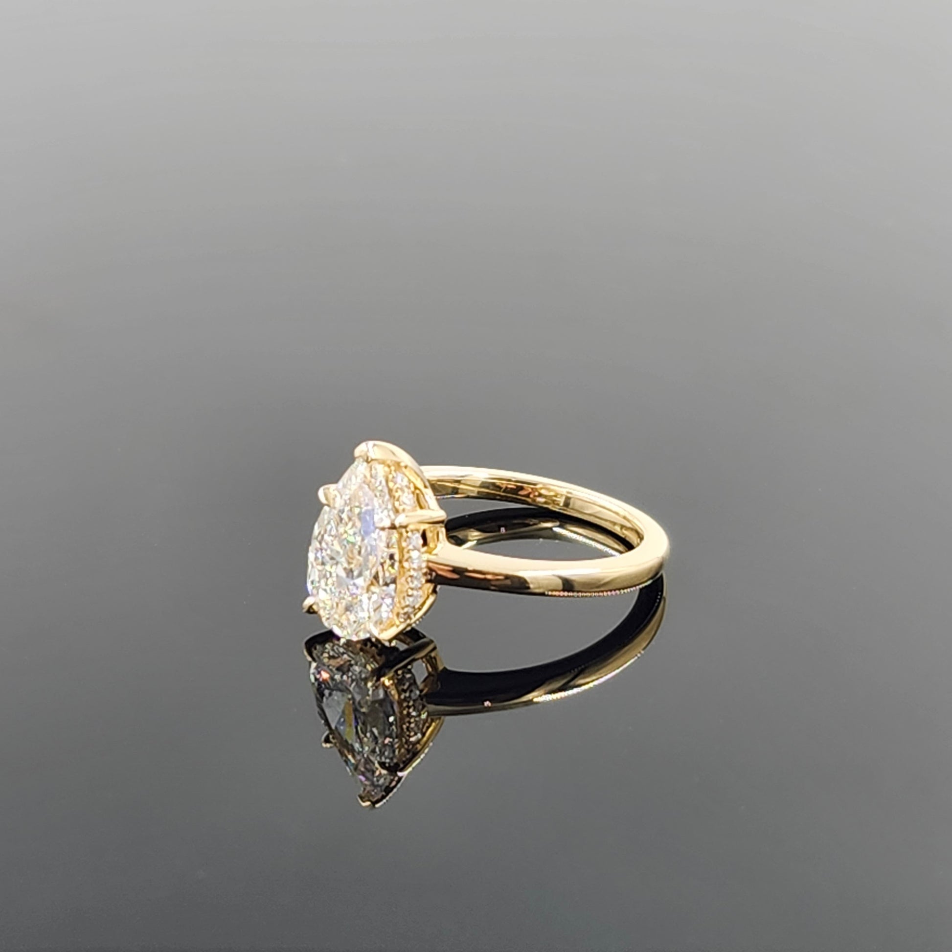 Hidden Halo Band lGl Certified Lab Grown Diamond Amazing Brilliant Solitaire Ring / 14K,18K Pear Diamond Engagement Ring / Anniversary gift