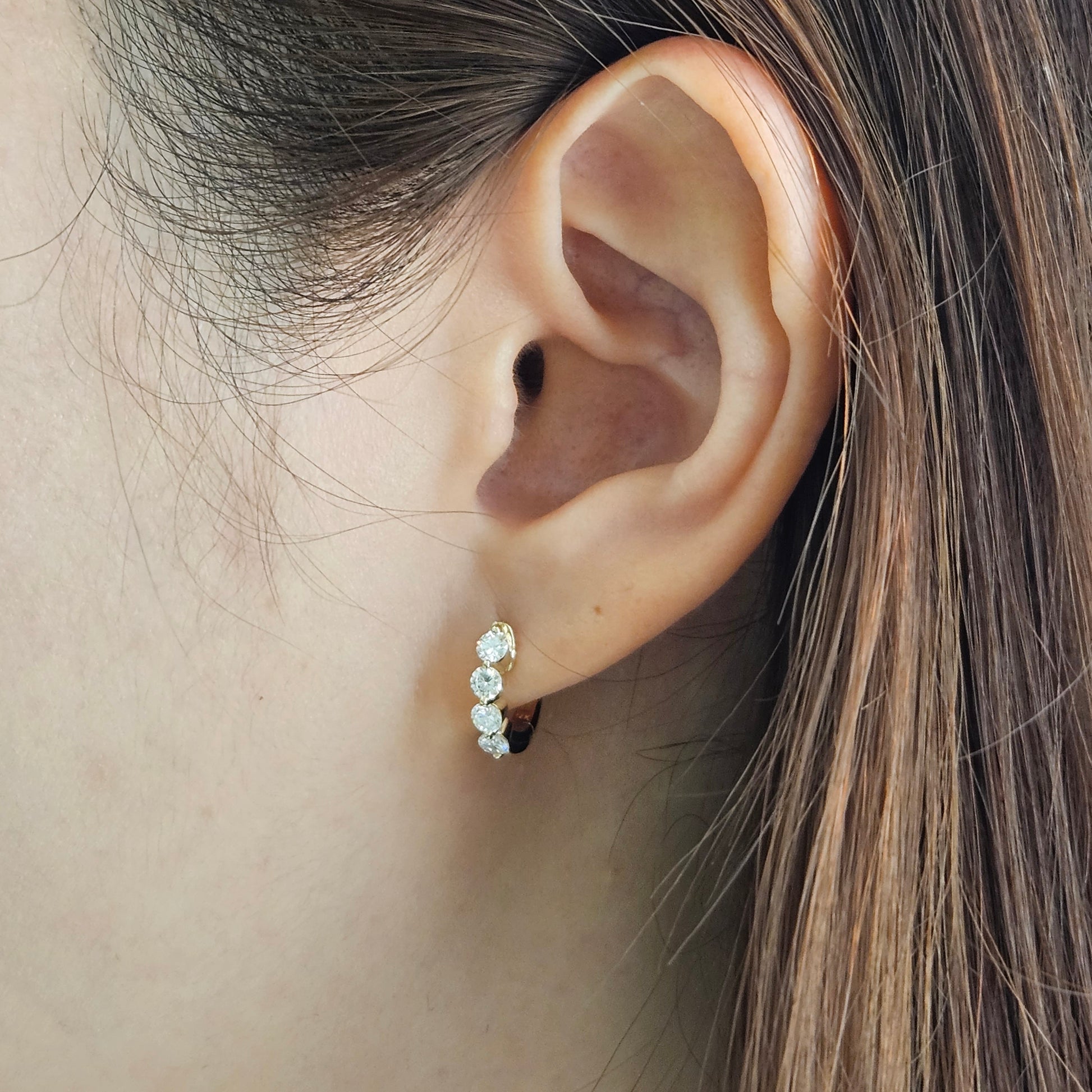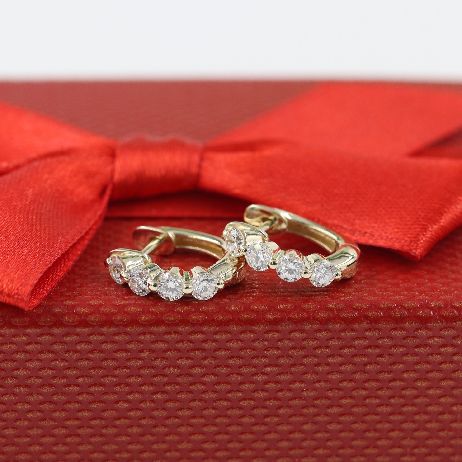 Single Prong Lab Diamond Hoop Earrings/14K,18K gold Four Diamond Single Prong Hoop Earrings/ Single ,Pair Hoop Earring/Anniversary gift