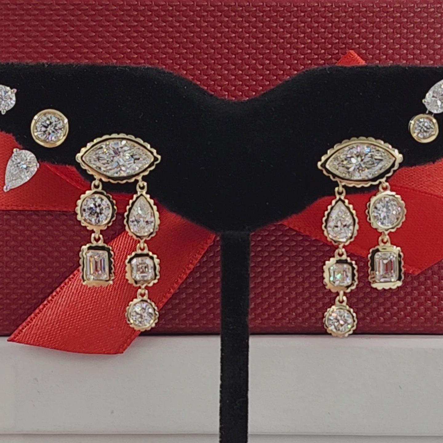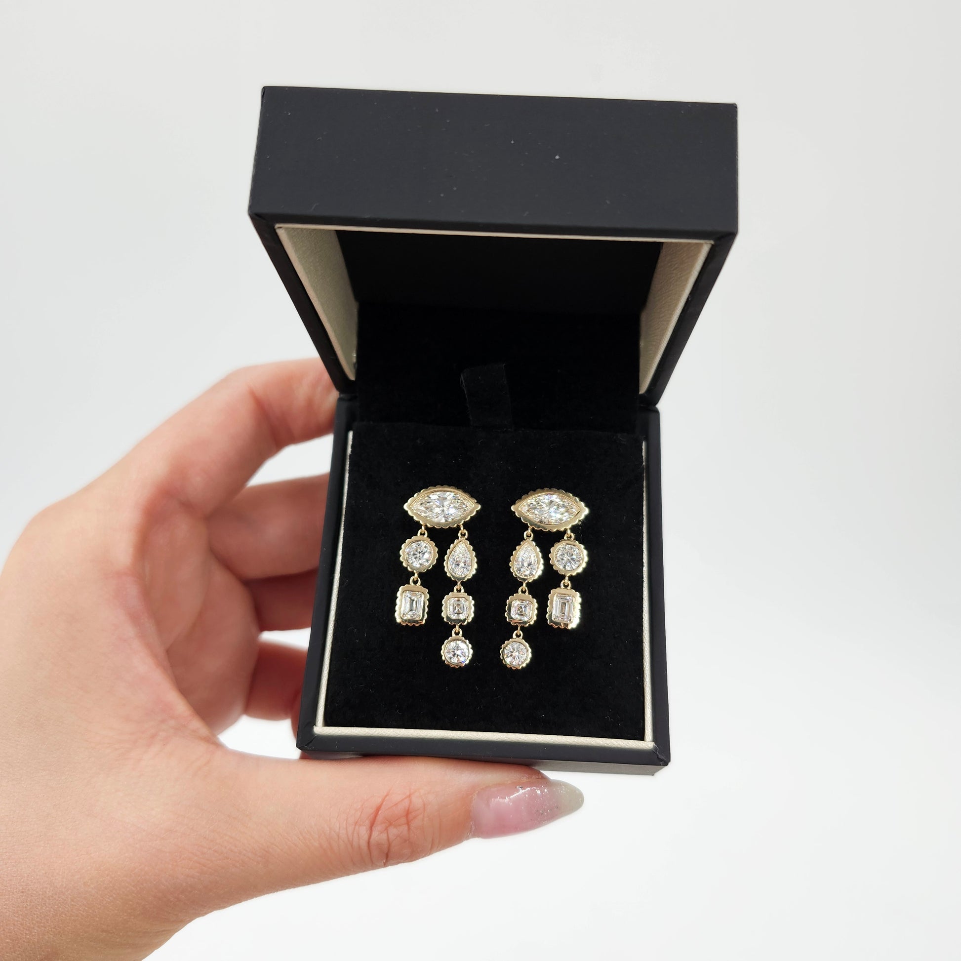 Multi Lab Diamonds Drop earrings (Pair) / Gifts for her /14K gold Lab-Diamonds Luxury Earrings / Anniversary Gift