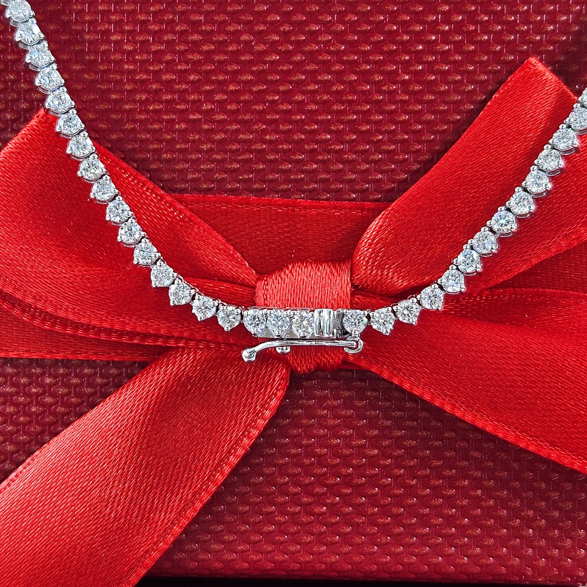 Natural Diamond 3 Prong Tennis Necklace / 14k Gold Round Diamond Tennis Necklace/Anniversary Gift