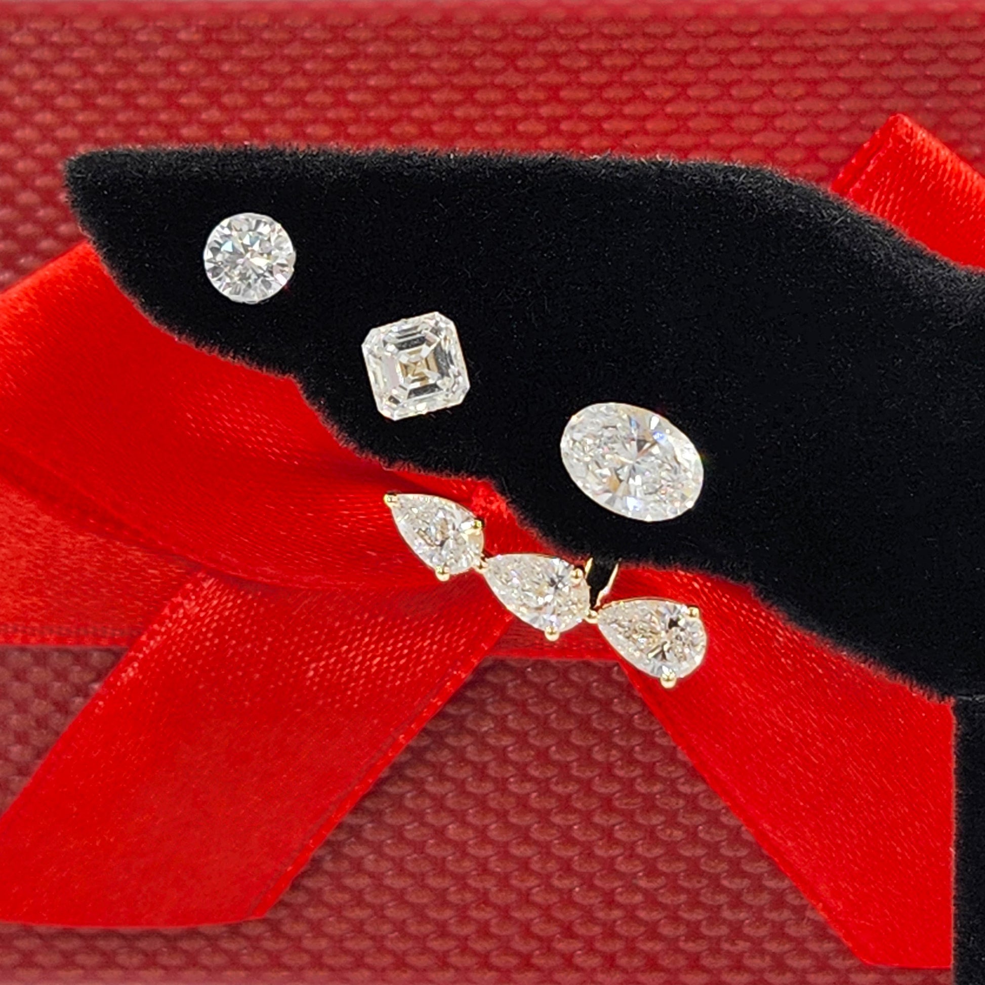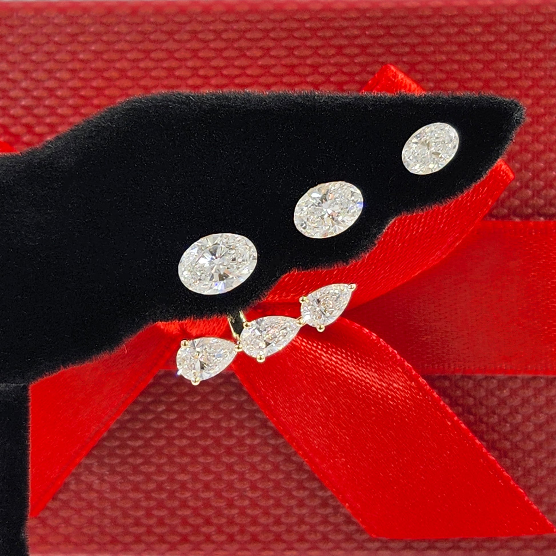 14K Gold Pear Lab Diamond Earring Jacket: Handmade Three Stone Design Jacket earring - Anniversary gift