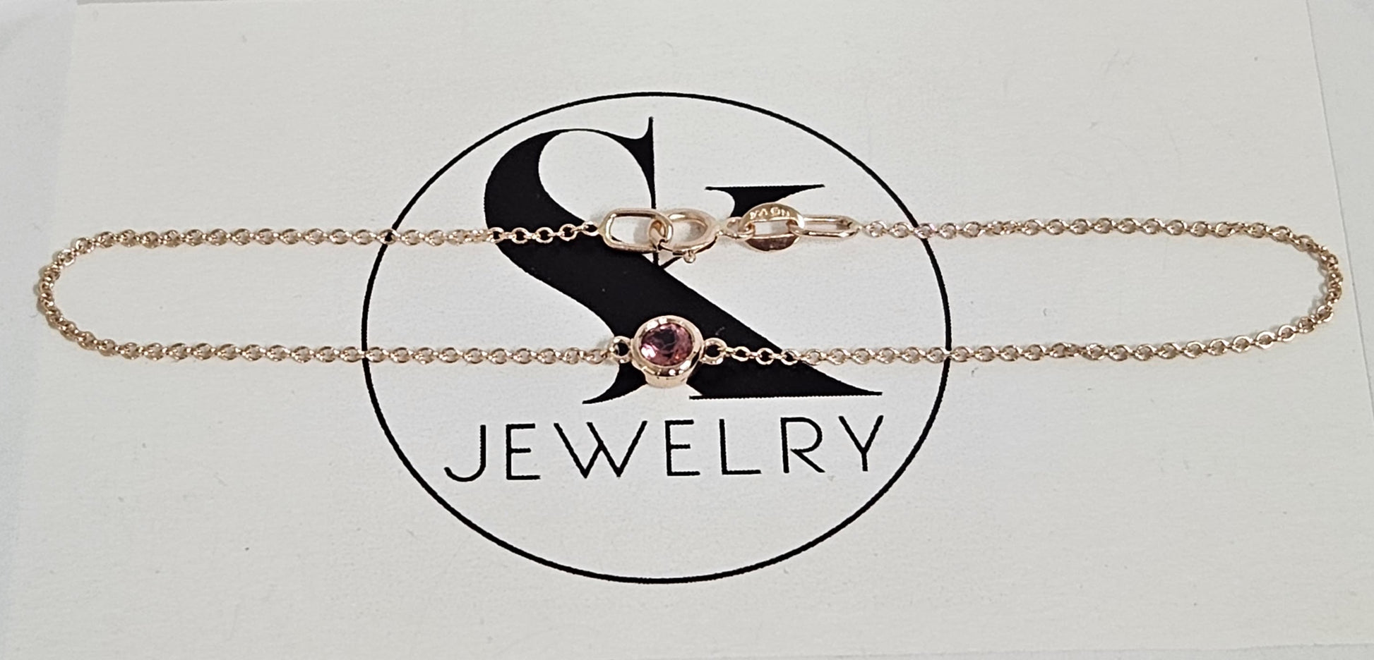 Pink Tourmaline Bezel Set Solitaire Bracelet/14K Gold Pink Tourmaline Bezel Set Bracelet/Dainty Gold Gemstone Bracelet/Anniversary gift