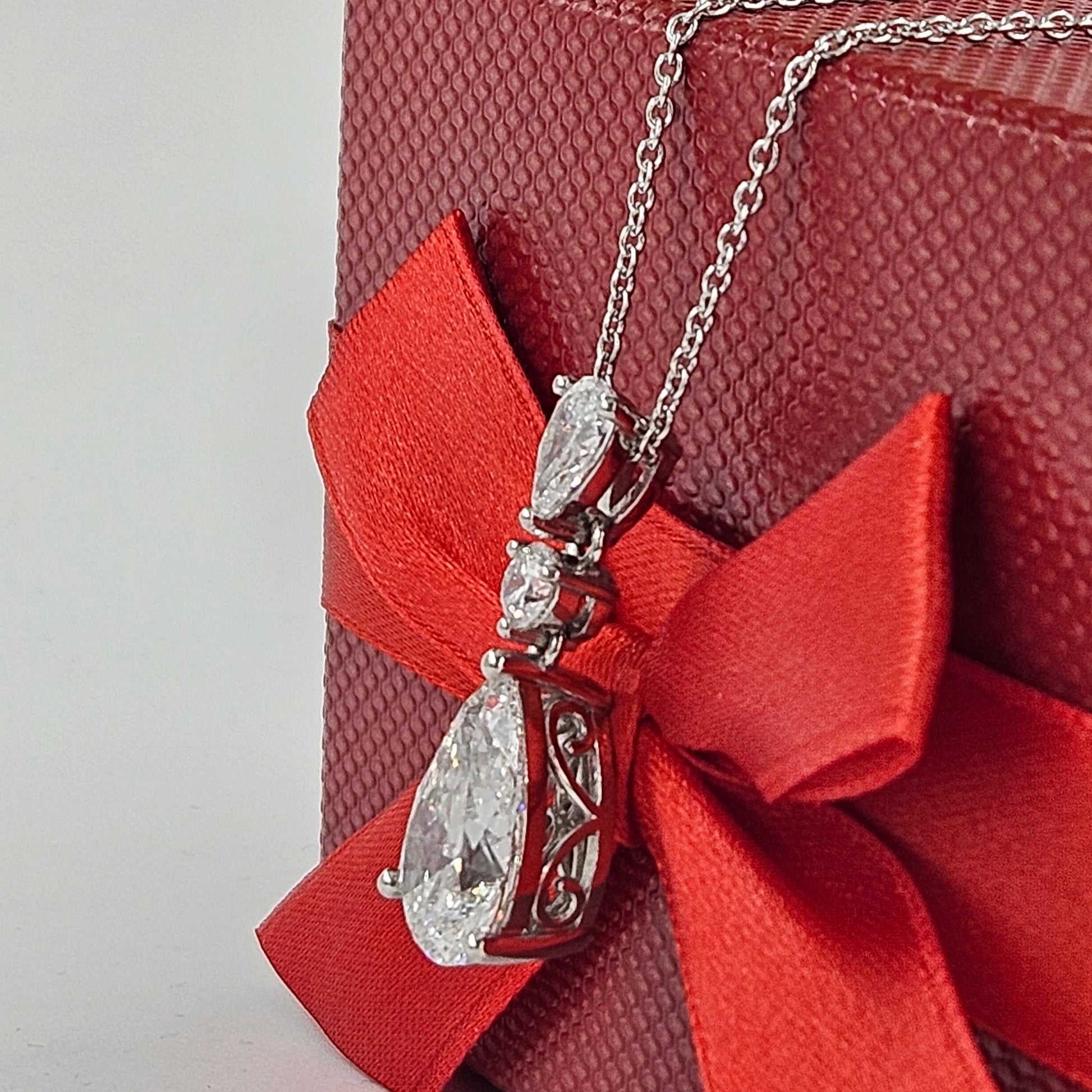 Pear Lab Grown Diamond Pendant/Lab Grown Diamond Total 5.6ct Necklace/14K 18K Gold Platinum Pear Shaped Diamond Pendant/Anniversary Gift