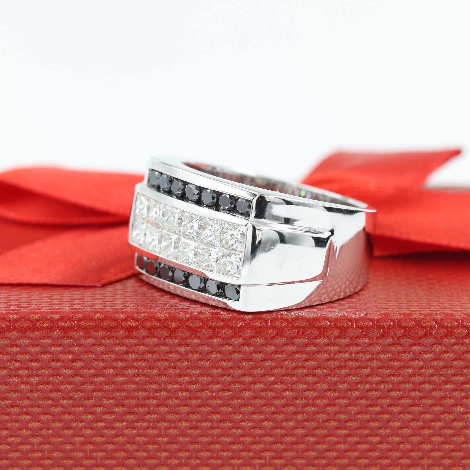 Princess Cut Diamond Invisible Set Men's Ring/Diamond Invisible Set Wedding Band/14K 18K gold Men's Diamond Ring/Anniversary gift