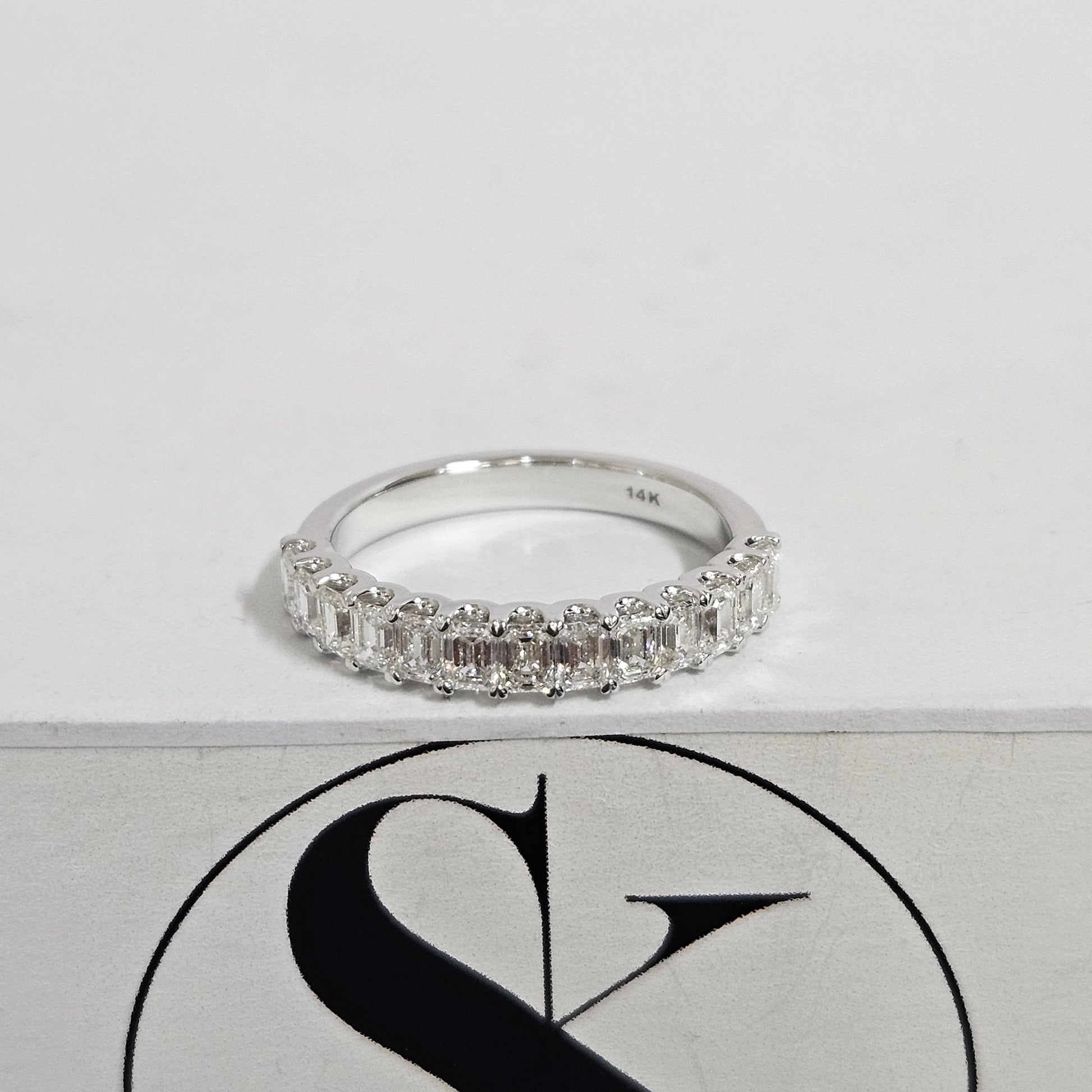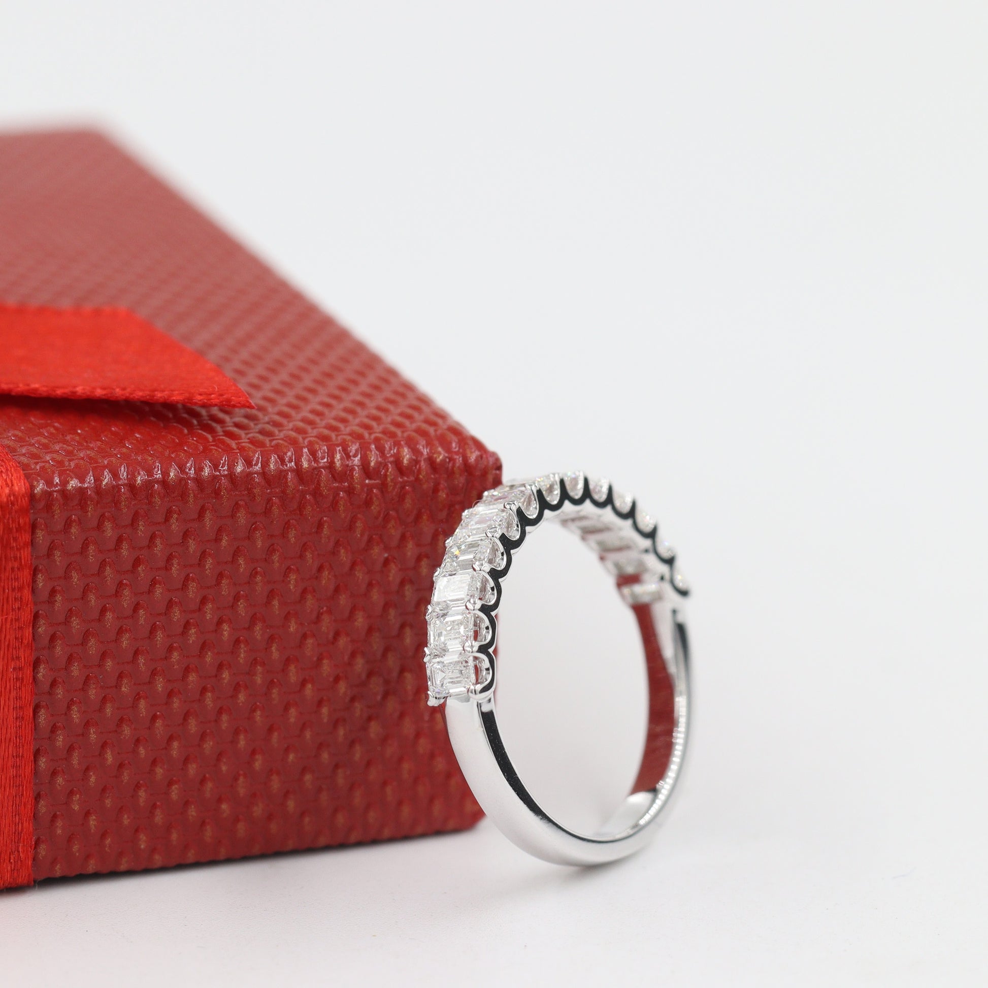 1.1ct Emerald Cut Diamonds Ring/Natural Emerald Cut Diamond Wedding Band/Half Eternity Wedding Ring/Anniversary gift/Stackable Diamond Band