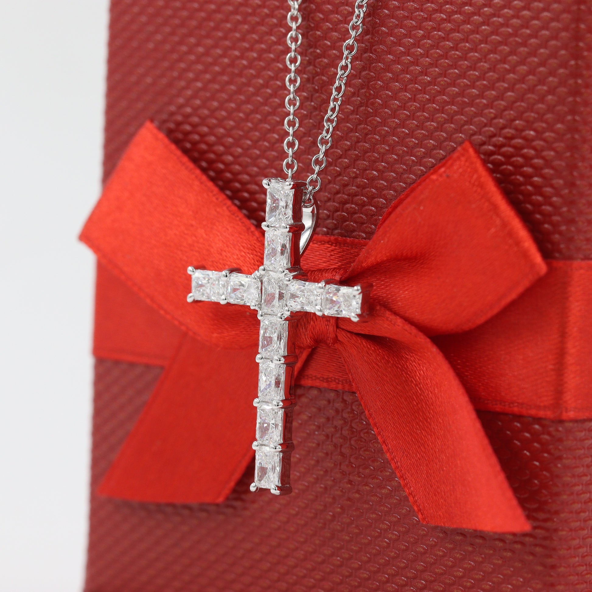Lab Diamond Radiant Cut Diamond Men Cross Pendant/14K gold Radiant Cut Women Cross Necklace/Diamond Cross Pendant/Anniversary Gift