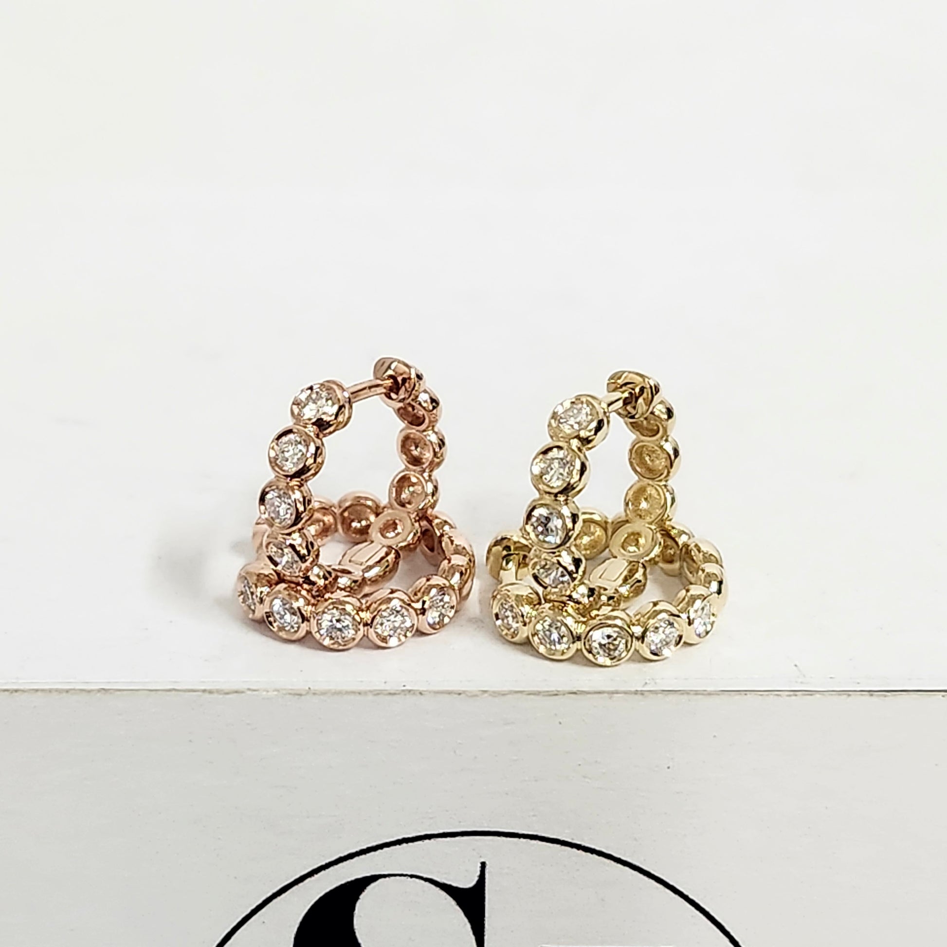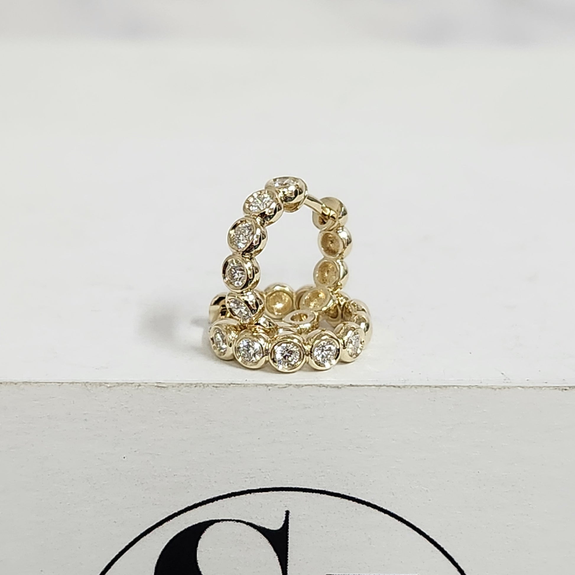 Round Diamond Bezel Hoop Earring/Natural Diamond Huggies Bezel Hoop Earring/14K gold ,18K gold Hoop Diamond Earring/Anniversary gift