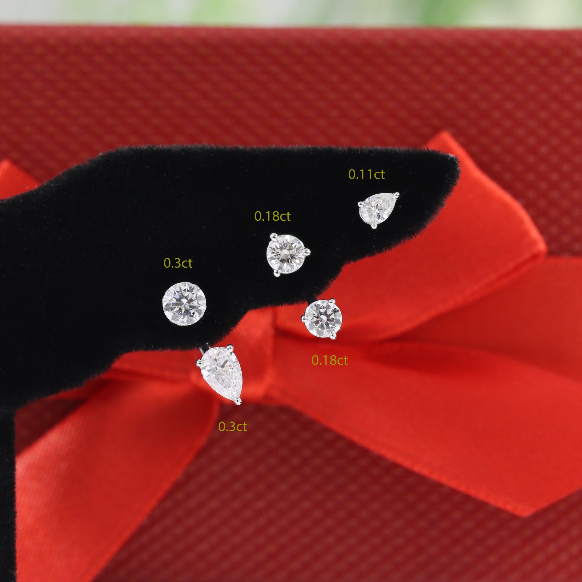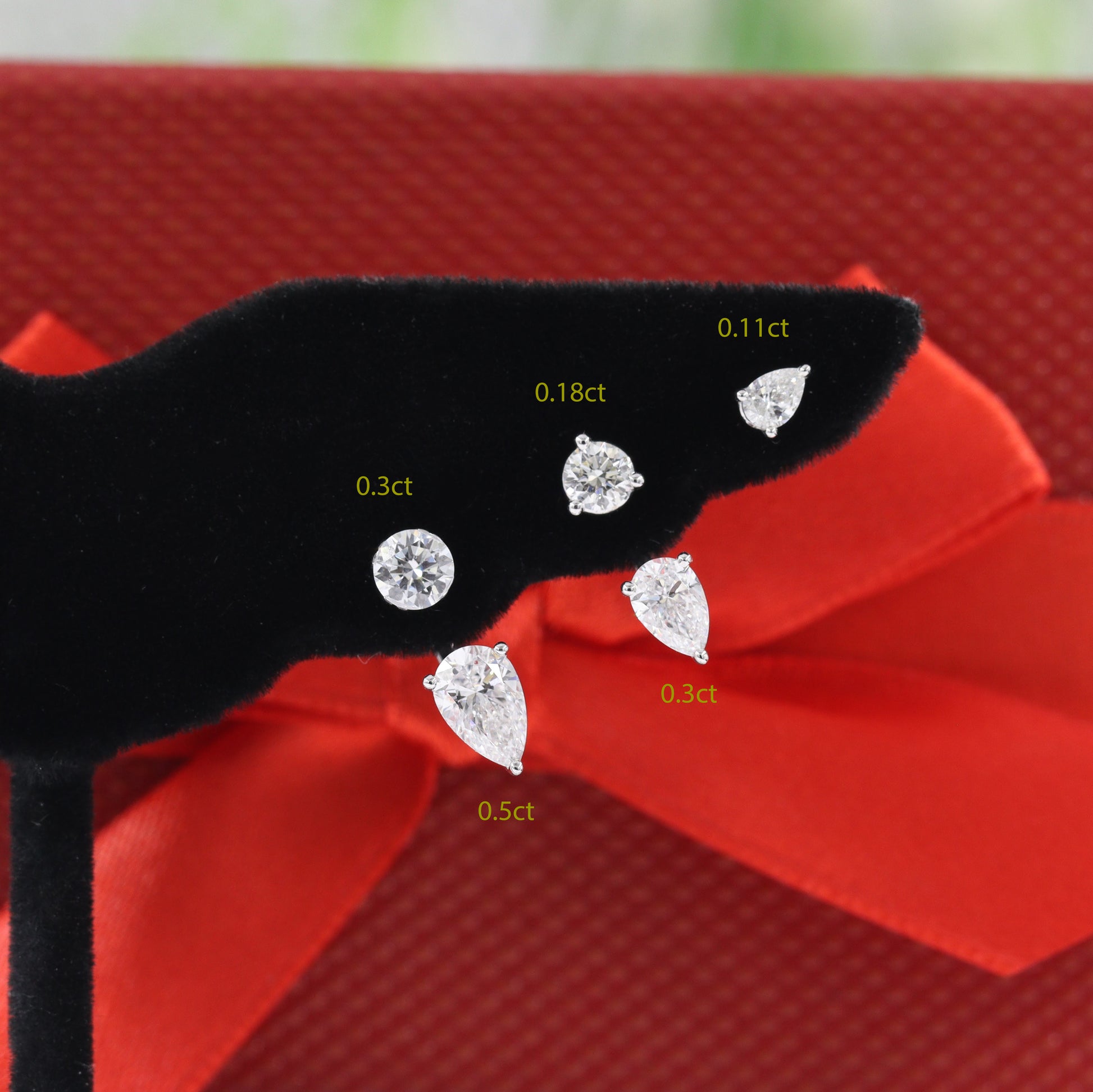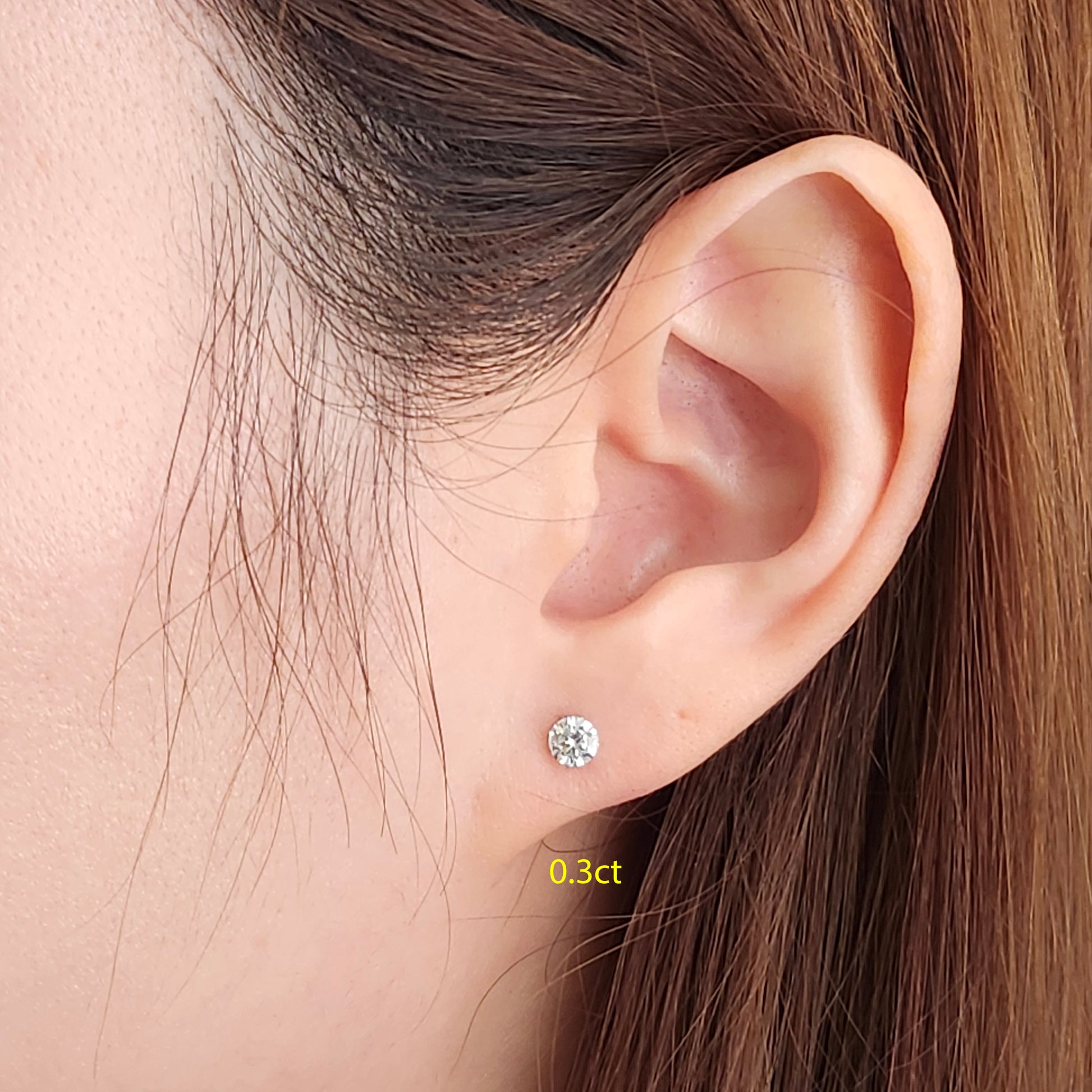 Solitaire Round Diamond Invisible Set Earring/Lab Diamond 0.3ct ~ 1ct Solitaire Single or Pair Earring /Minimalist Earring /Anniversary Gift
