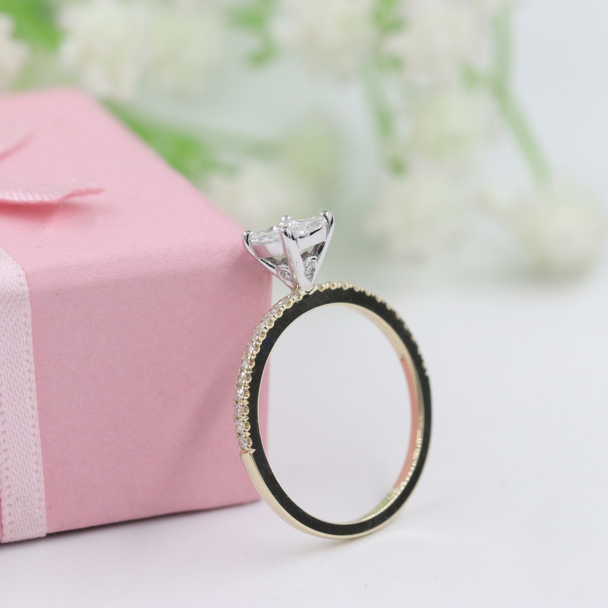0.5ct Natural Diamond Princess Cut & Marquise Diamonds Ring/Unique Mixed Diamond Engagement Ring/Anniversary Ring/Gift for her